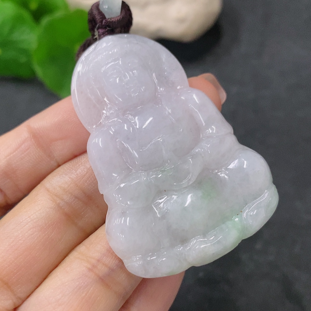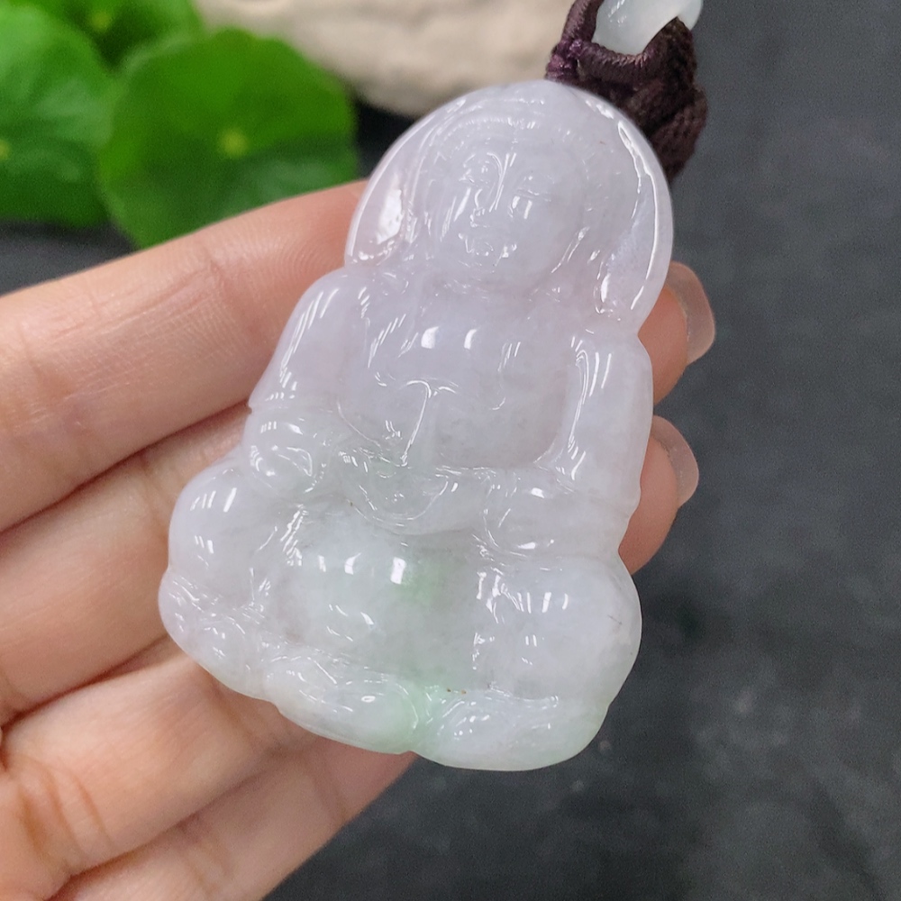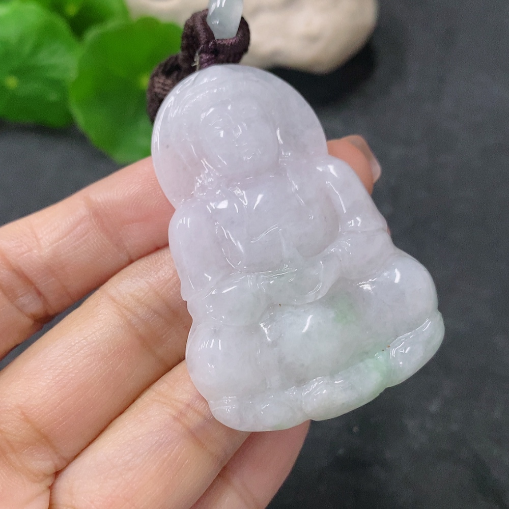 Jadeite Guanyin Pendant Total Weight Approx. 21.9g with Non-A Grade Beads