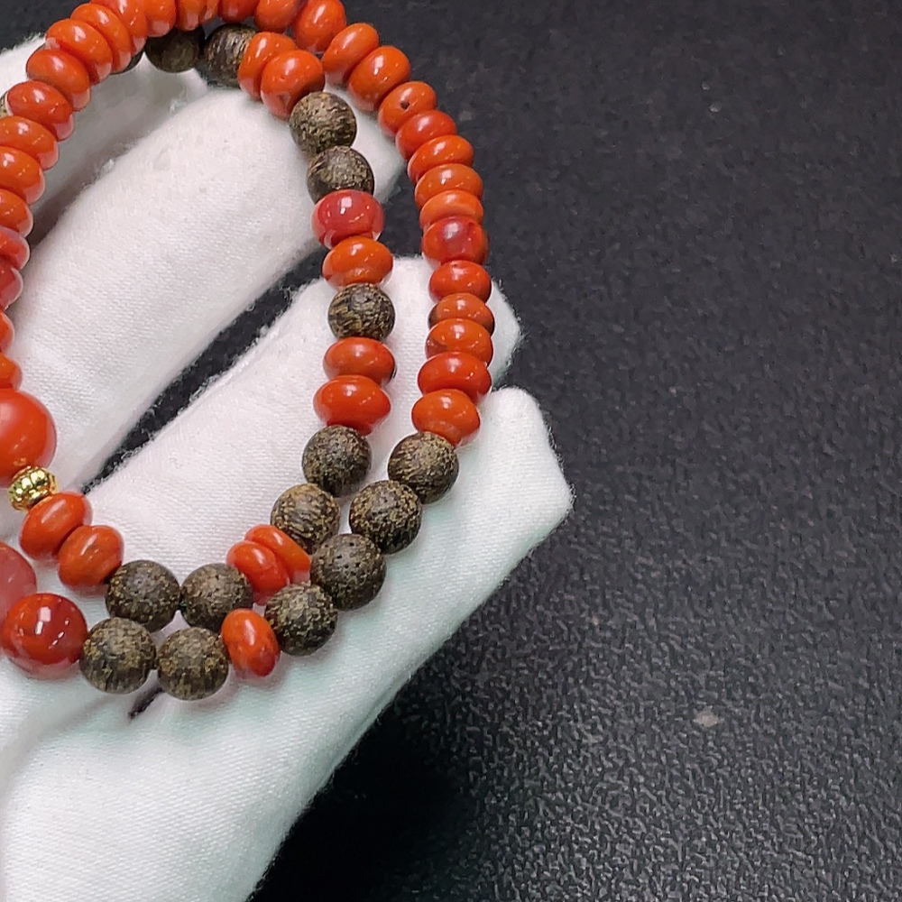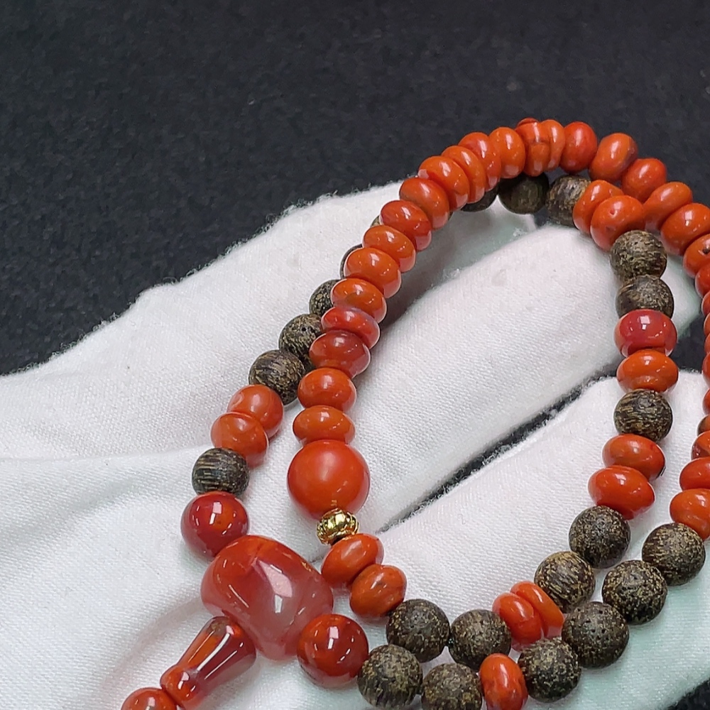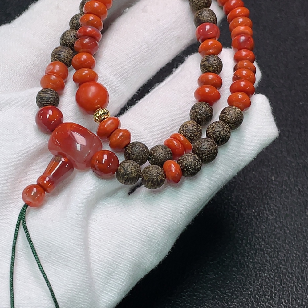Red Agate Bead Strand with Visible Organic Matter, Non-Gold, Total Weight Approximately 22.3g, Size 3.7-9mm