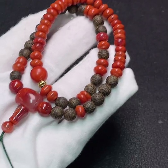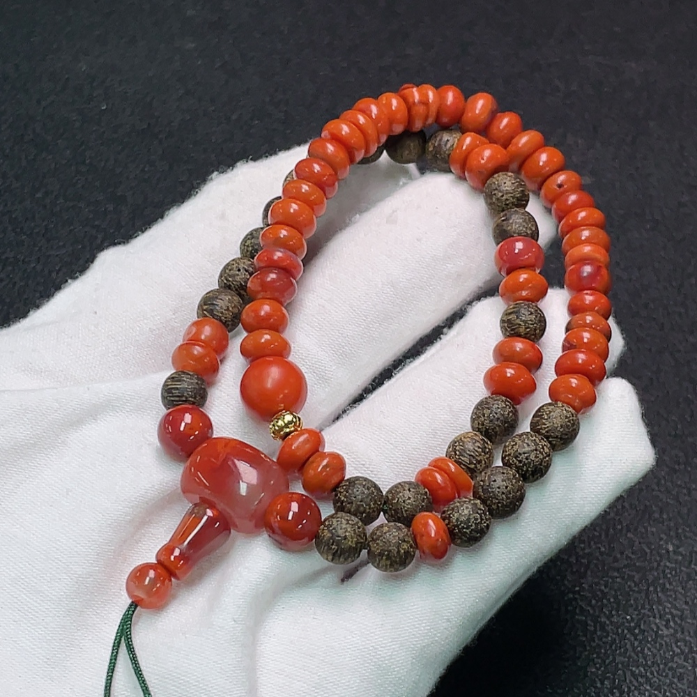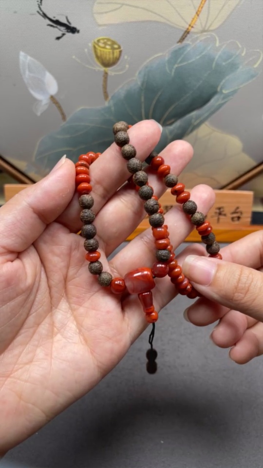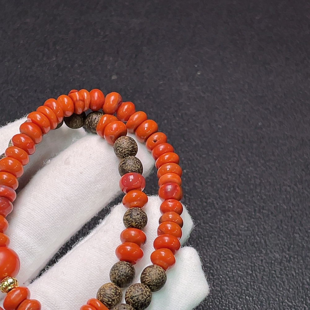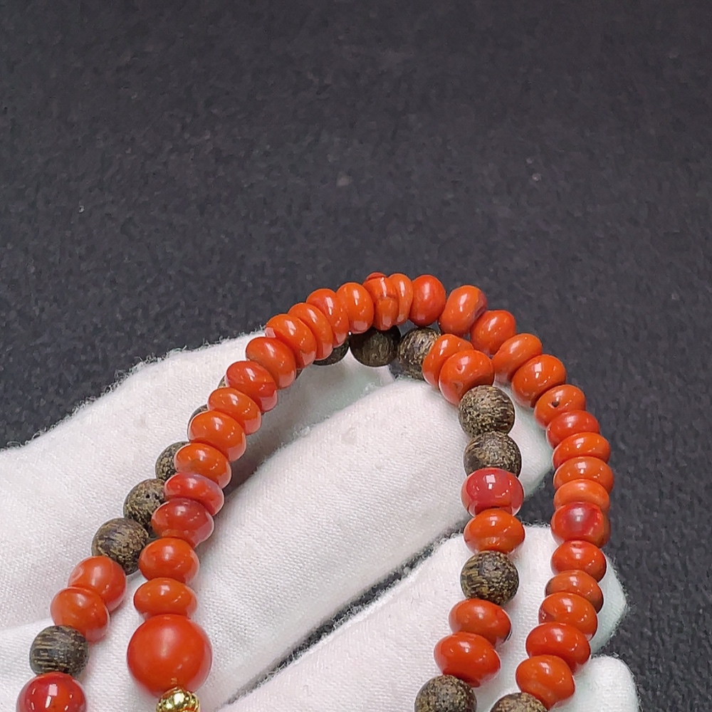 Red Agate Bead Strand with Visible Organic Matter, Non-Gold, Total Weight Approximately 22.3g, Size 3.7-9mm