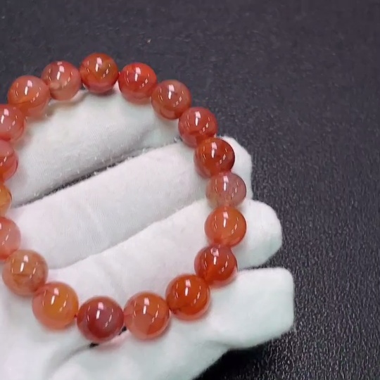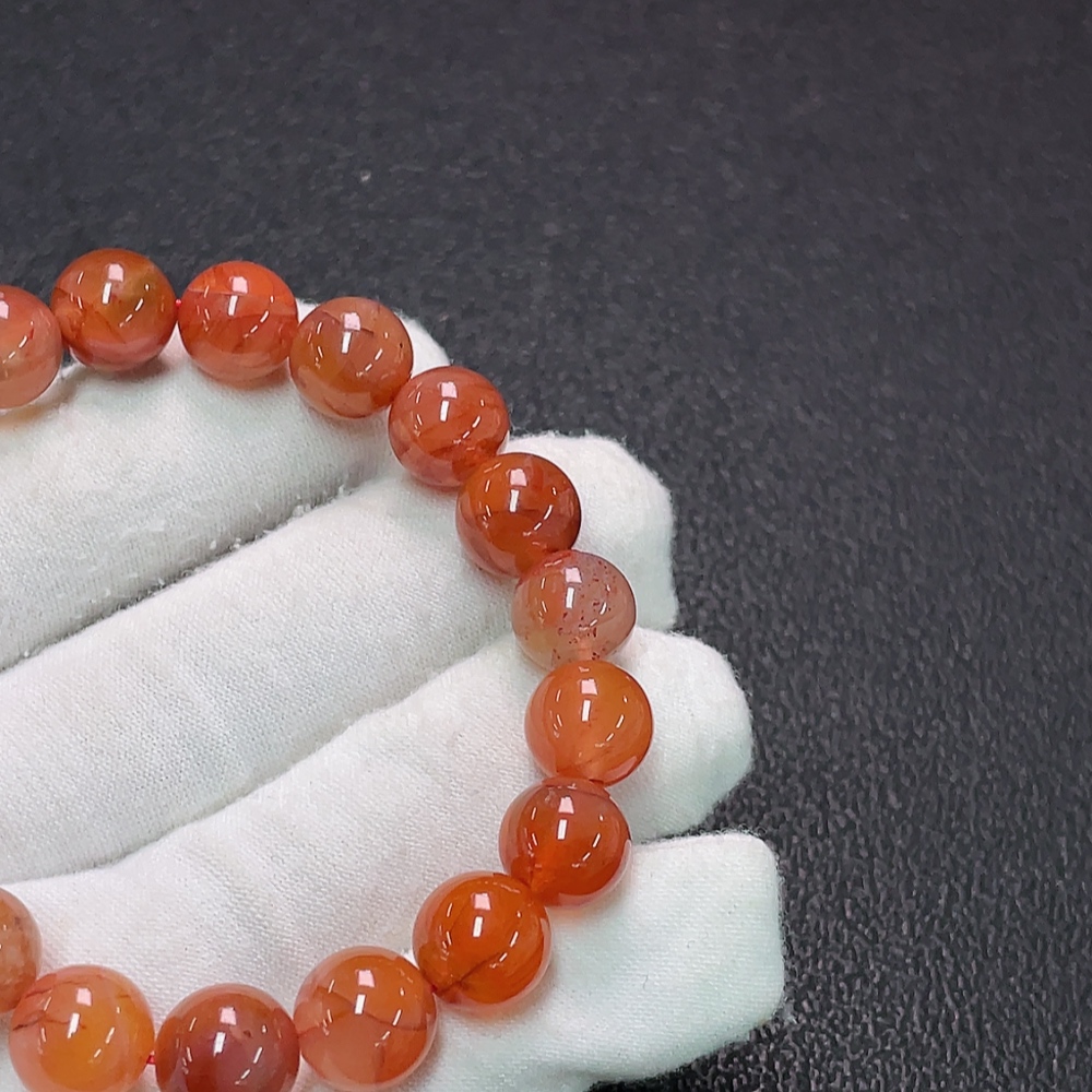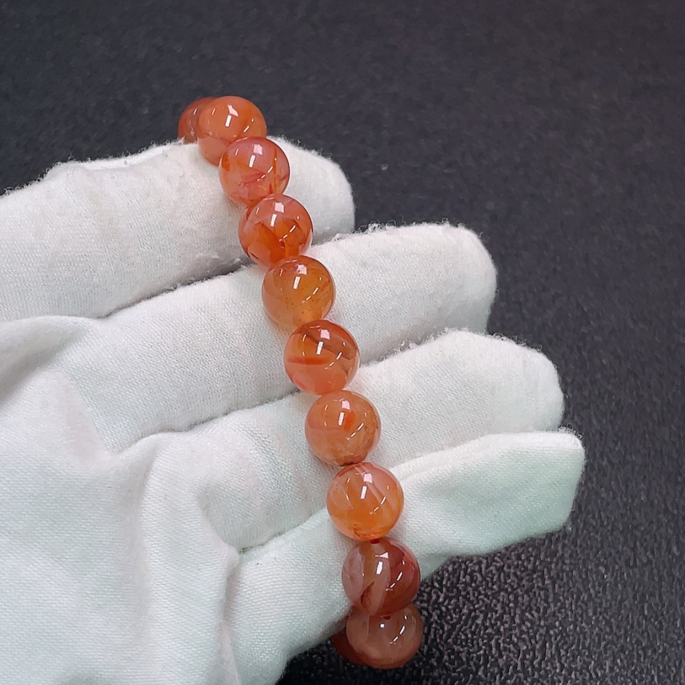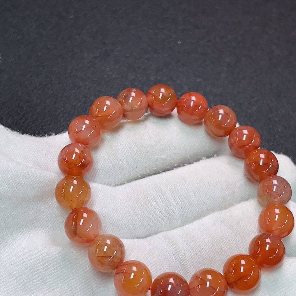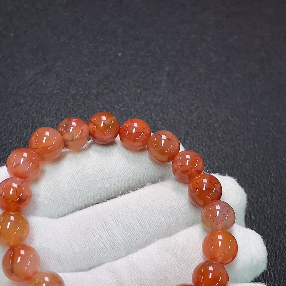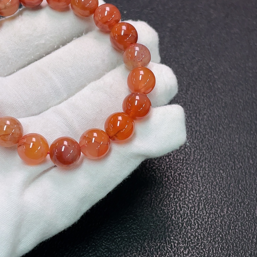 South Red Agate Bracelet with Visible Organic Matter, Total Weight Approximately 27.02g, Bead Size About 10.1mm