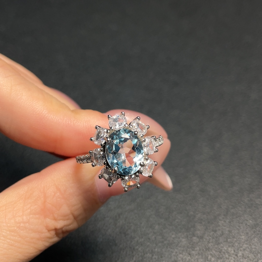 Topaz ring, color origin undetermined, non-gold, adjustable, total weight approximately 4.03g, size about 9.6*7.9mm