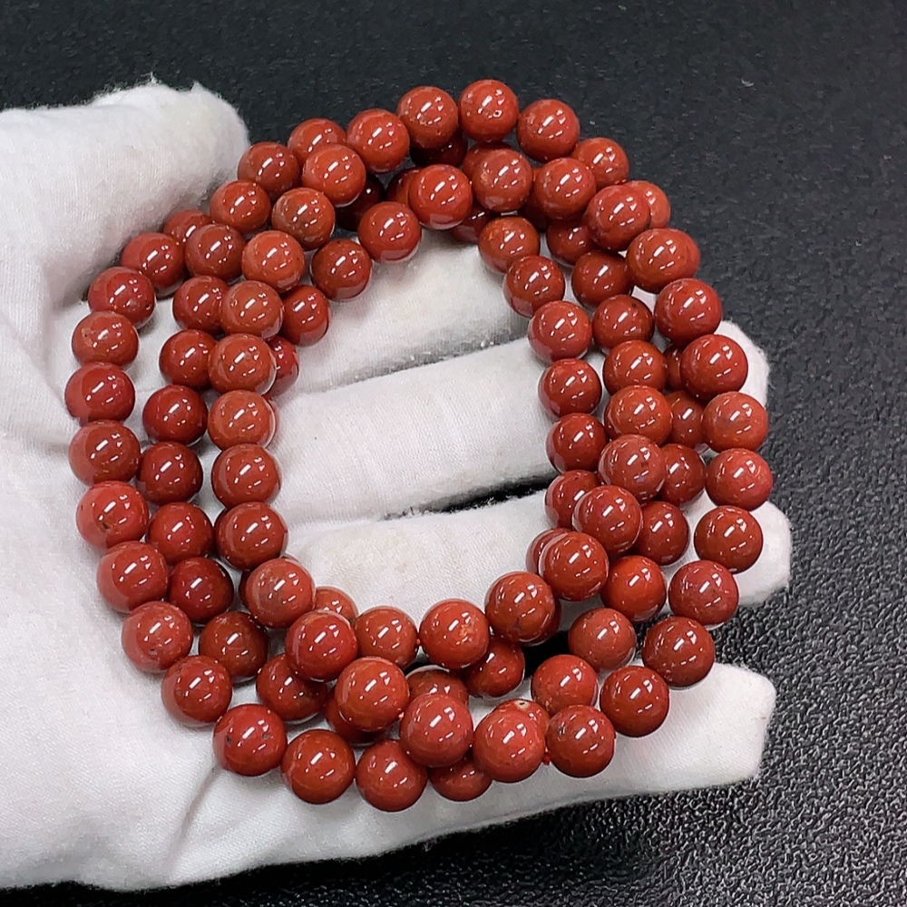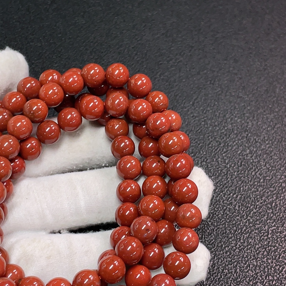 Red Agate Bead Strand with Visible Organic Matter, Total Weight Approx. 94.78g, Size ~8.4mm