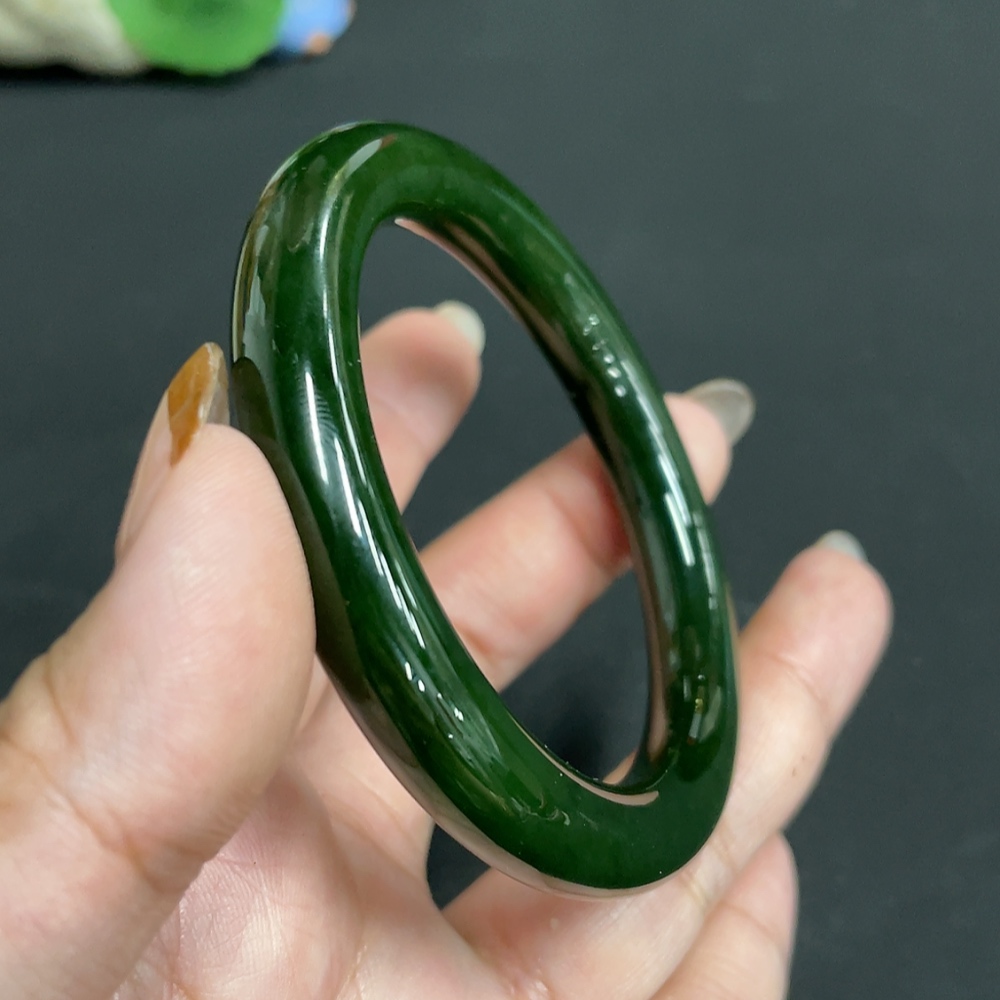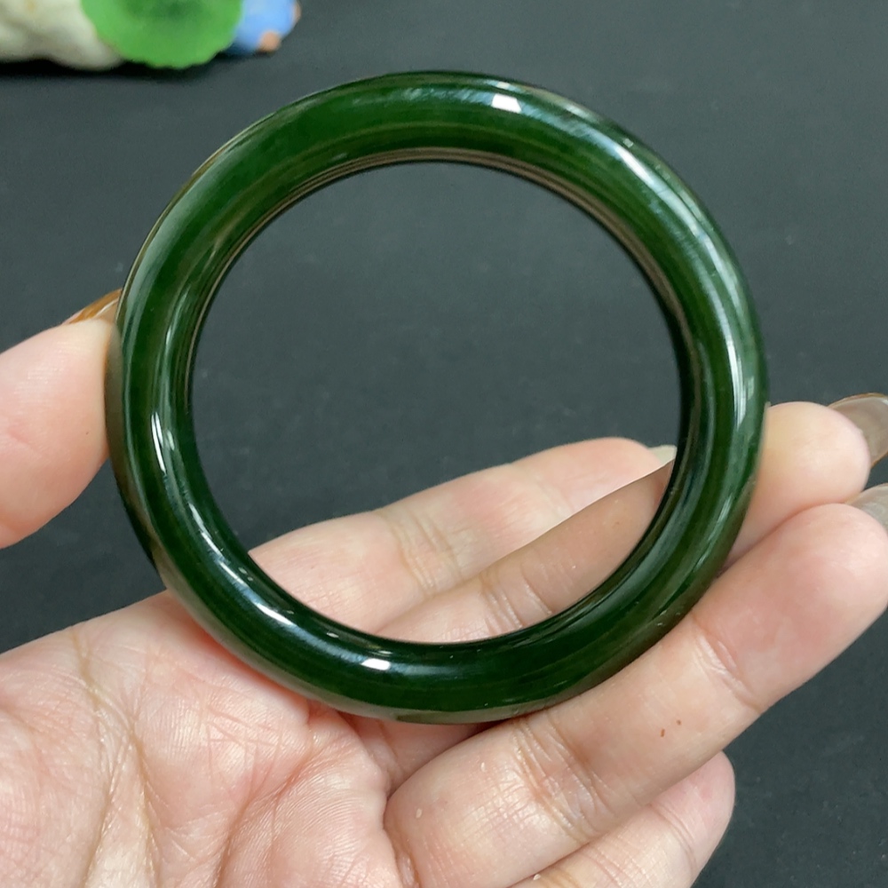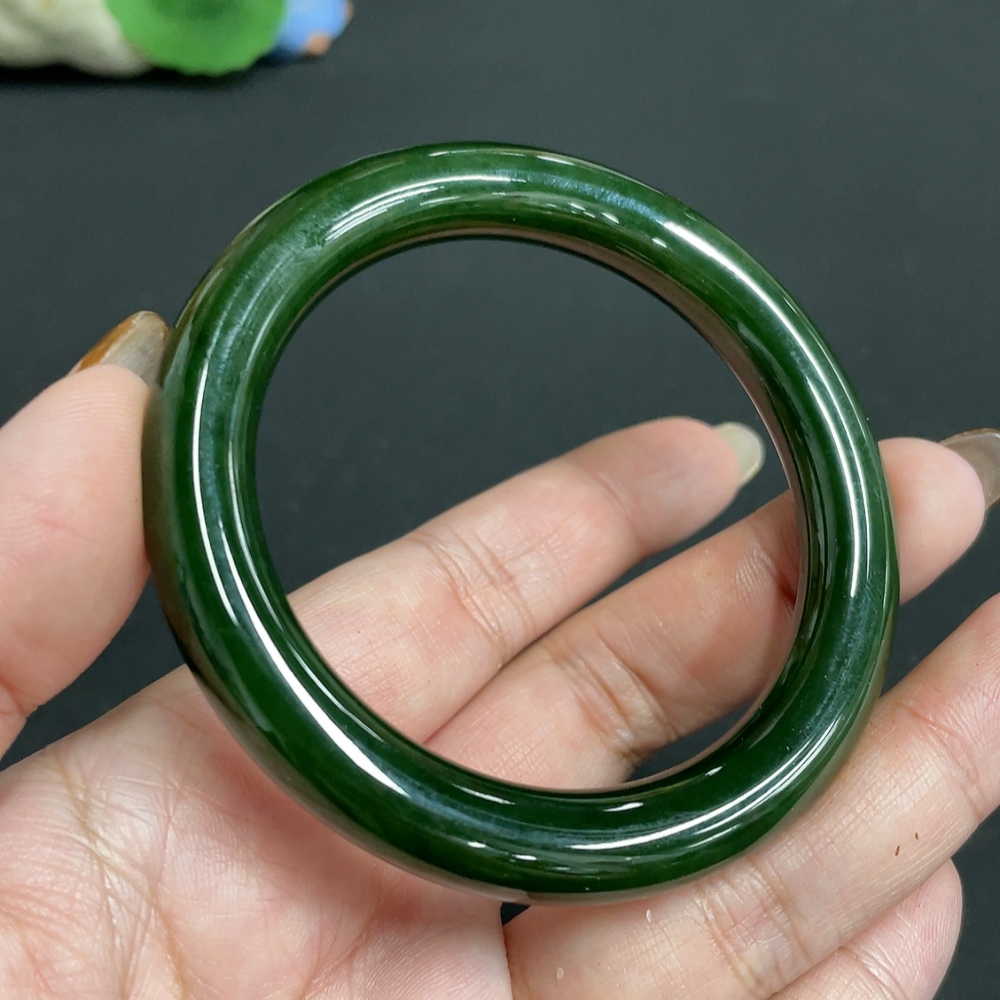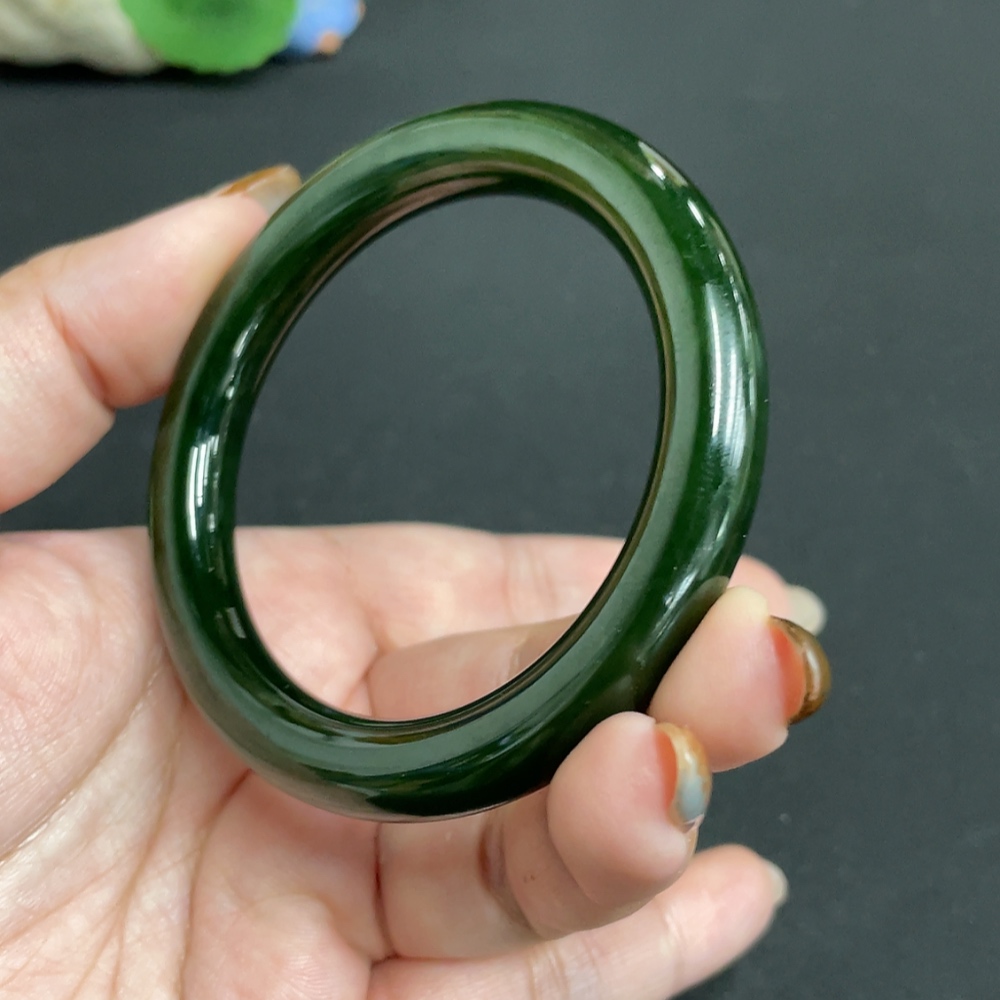 Hetian Jade Jasper Round Bangle Size 55.7 Total Weight Approx. 46.1g