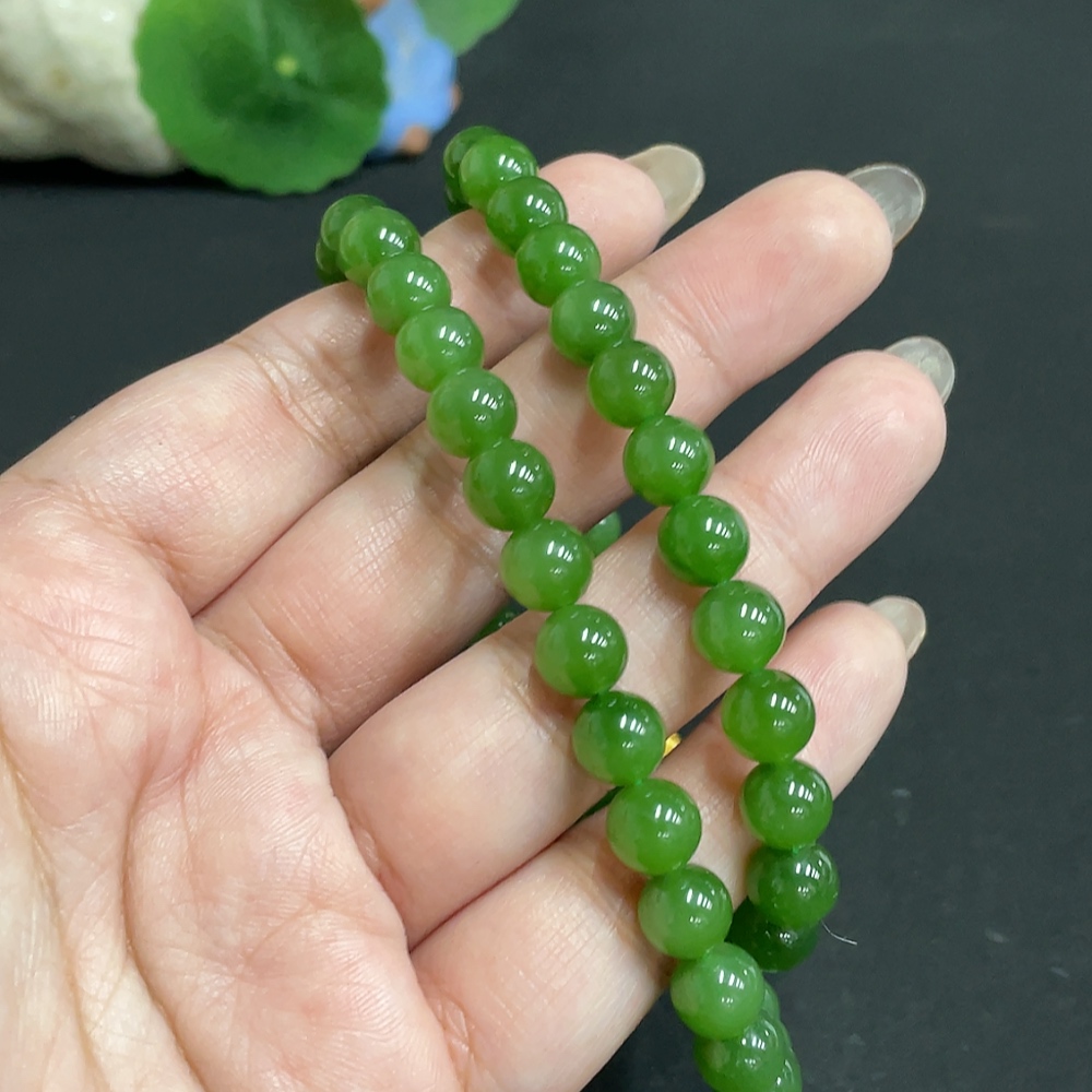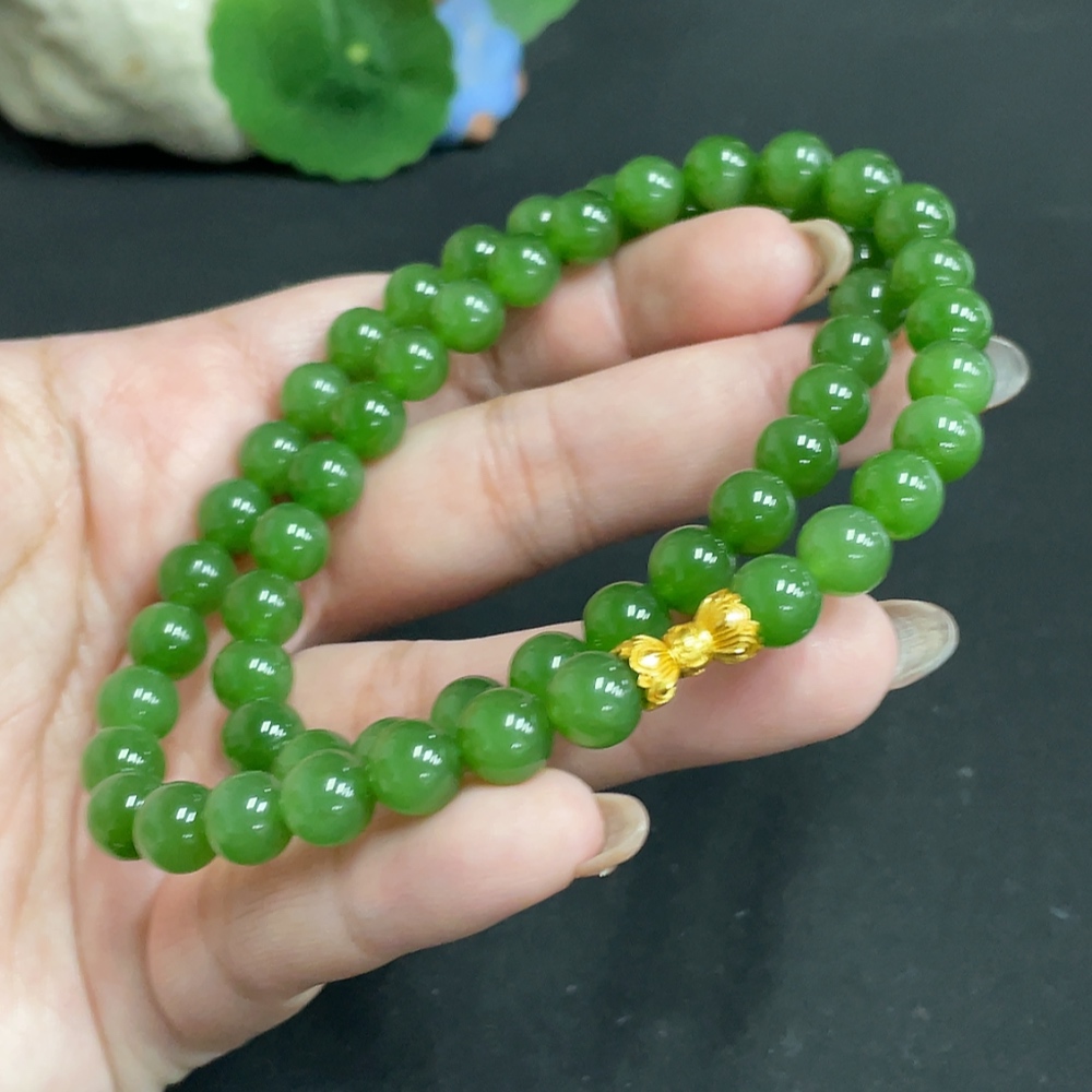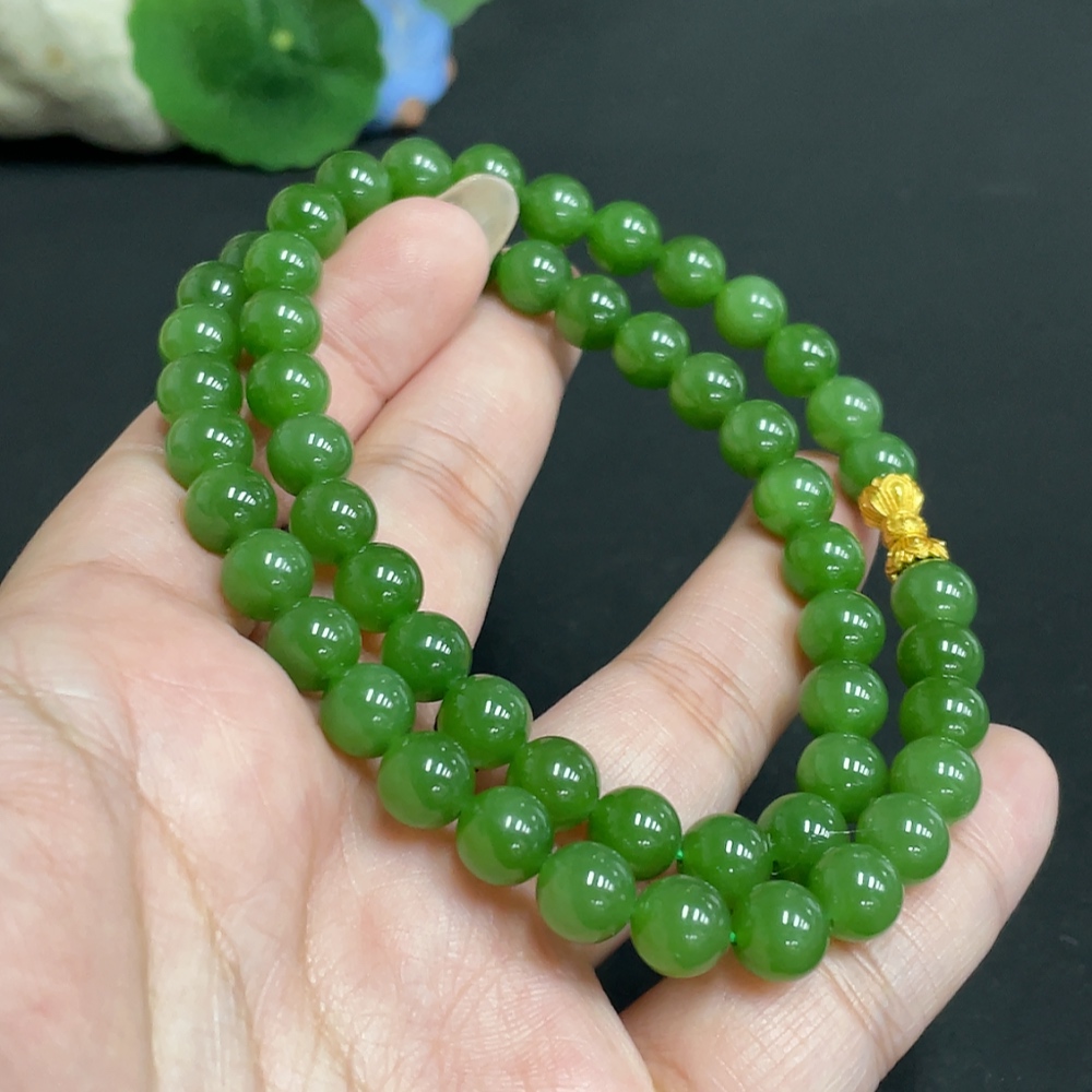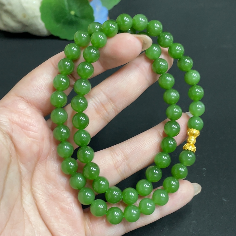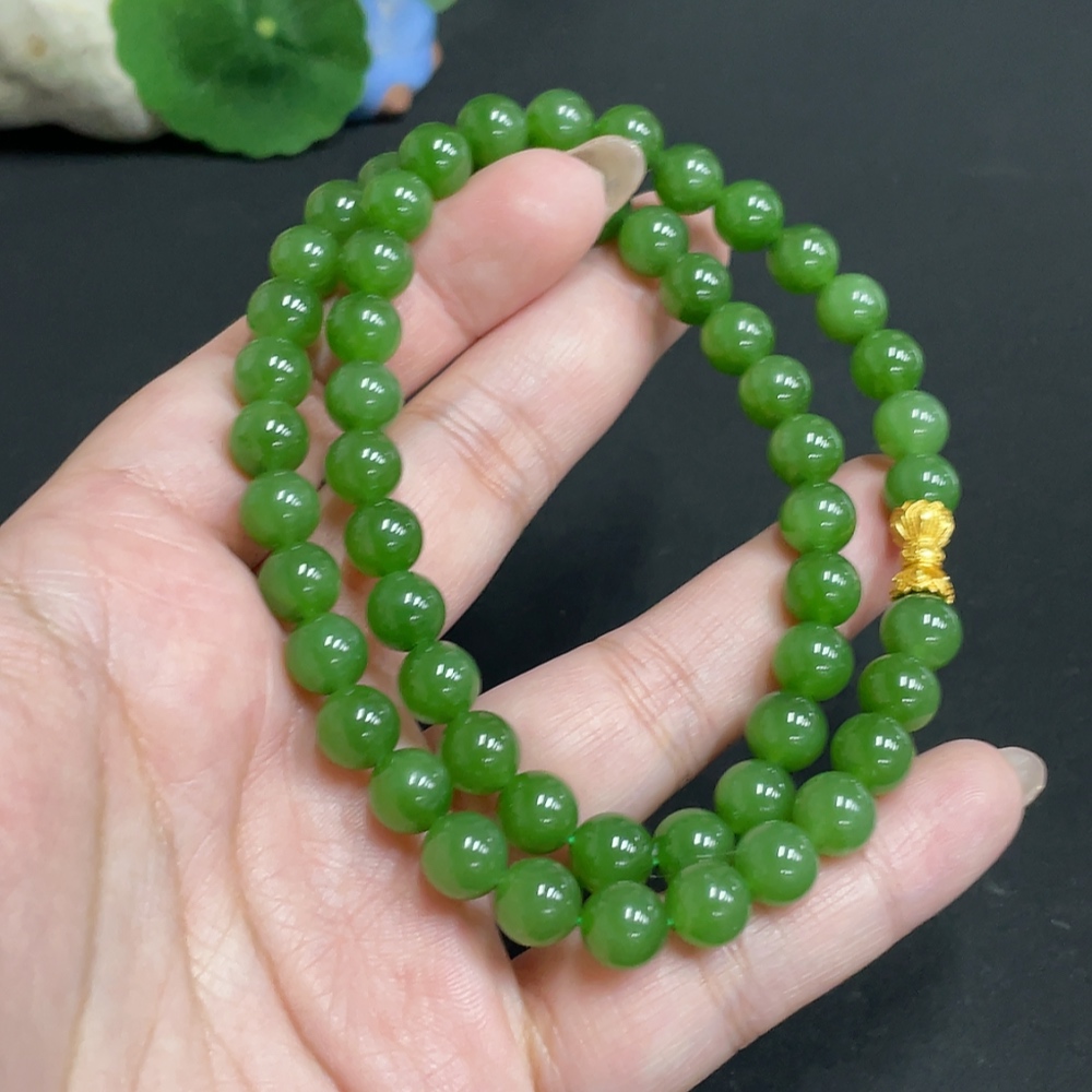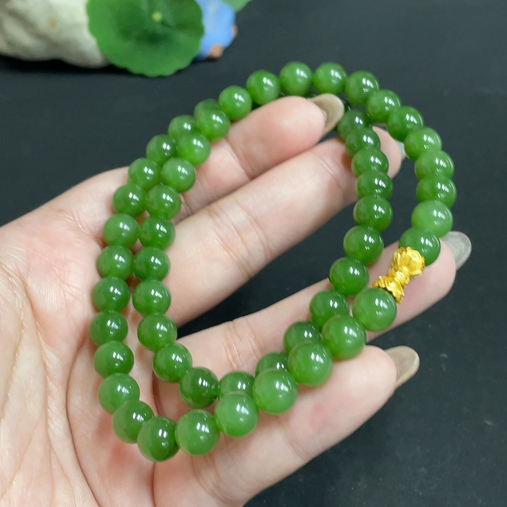 Hetian Jade Jasper Bead Necklace Approx. 7.7mm Total Weight Approx. 45.8g Non-Gold