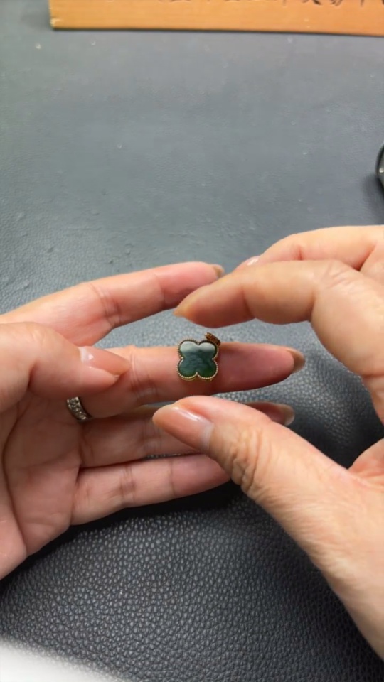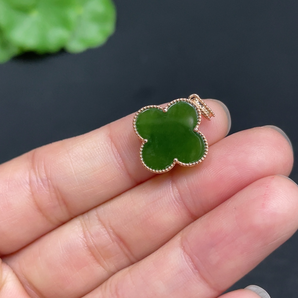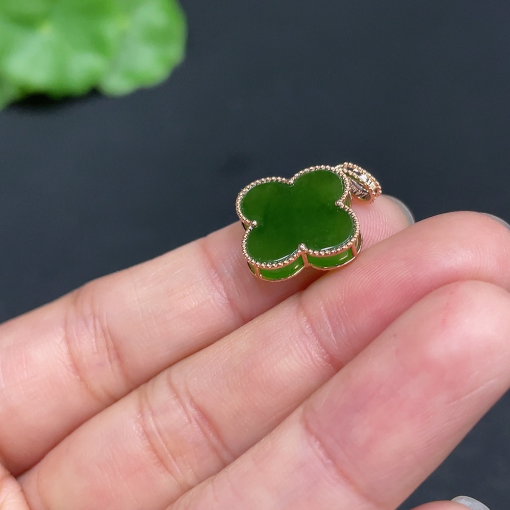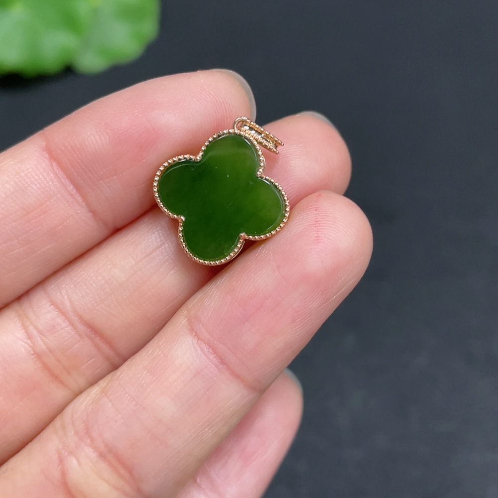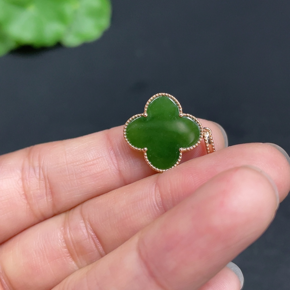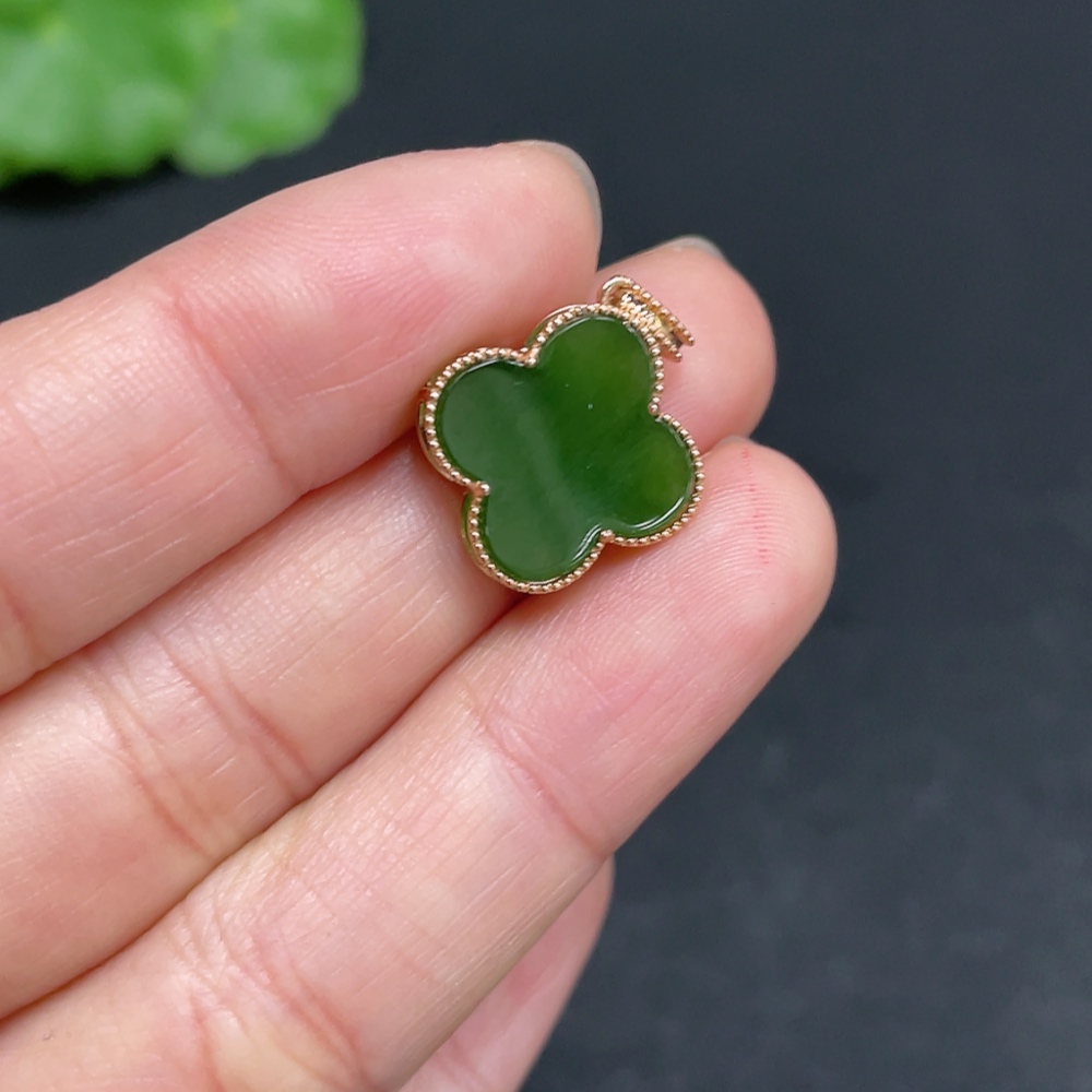 Hetian Jade Jasper Inlaid Four-Leaf Clover 18K Gold Total Weight Approx. 1.5g
