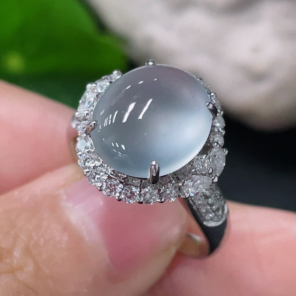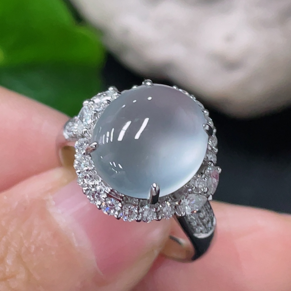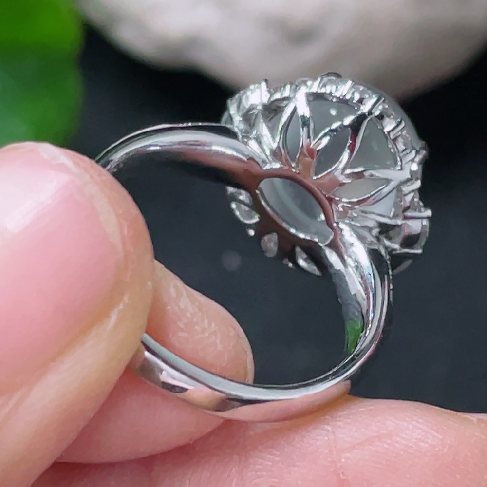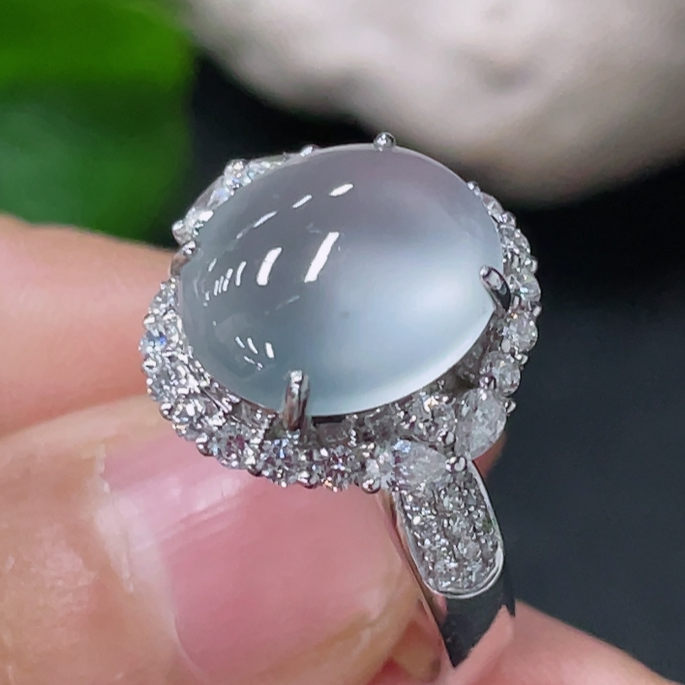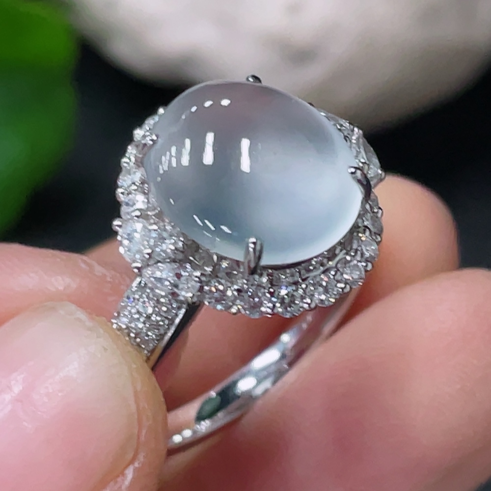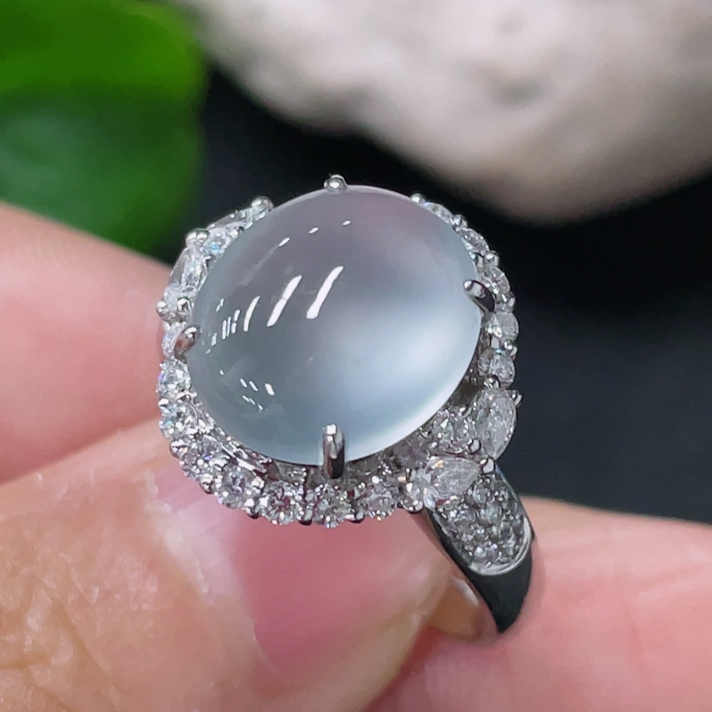 Jadeite Cabochon Inlaid Ring 18k Gold with Diamond Accents Size 12.5 Total Weight Approx. 5.26g