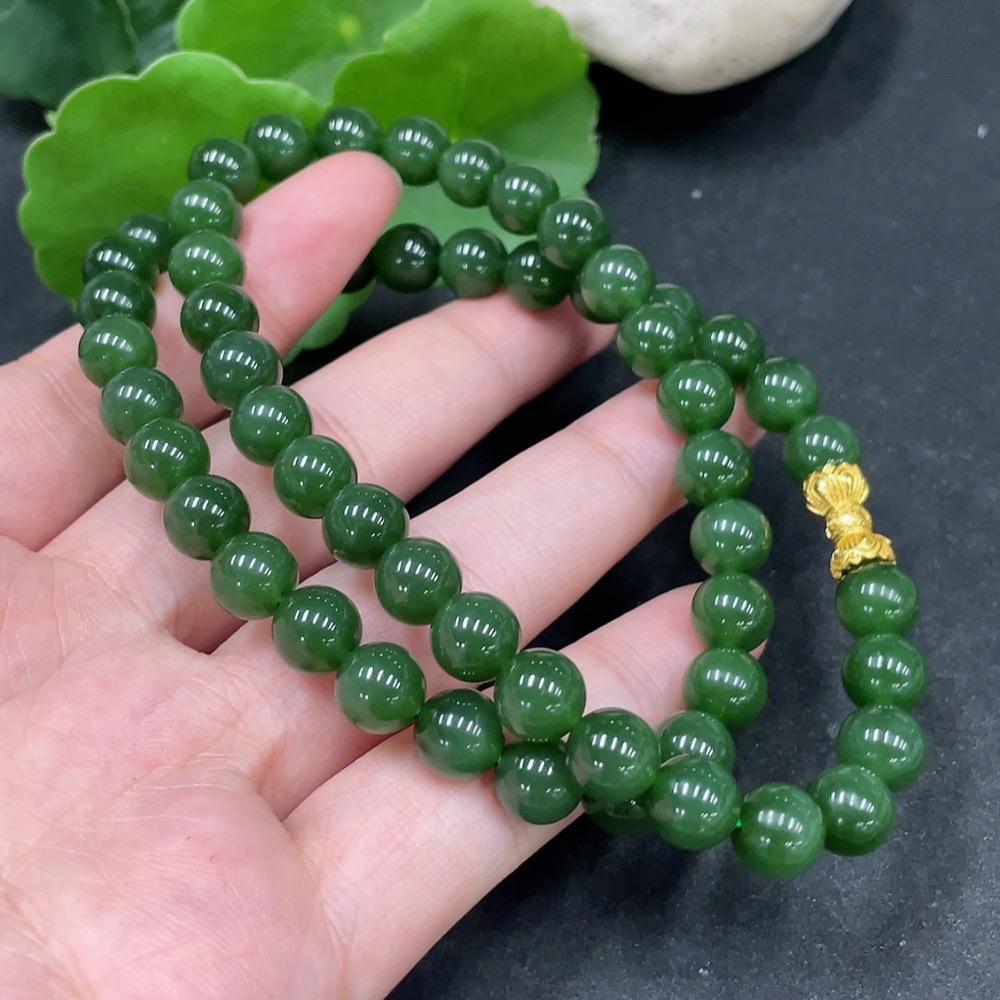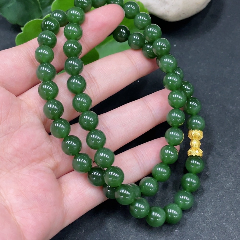 Hetian Jade Jasper Bead Necklace Approx. 7.7mm Total Weight About 45.3g Non-Gold