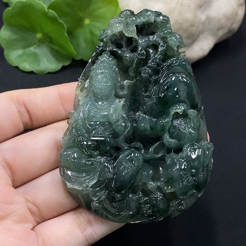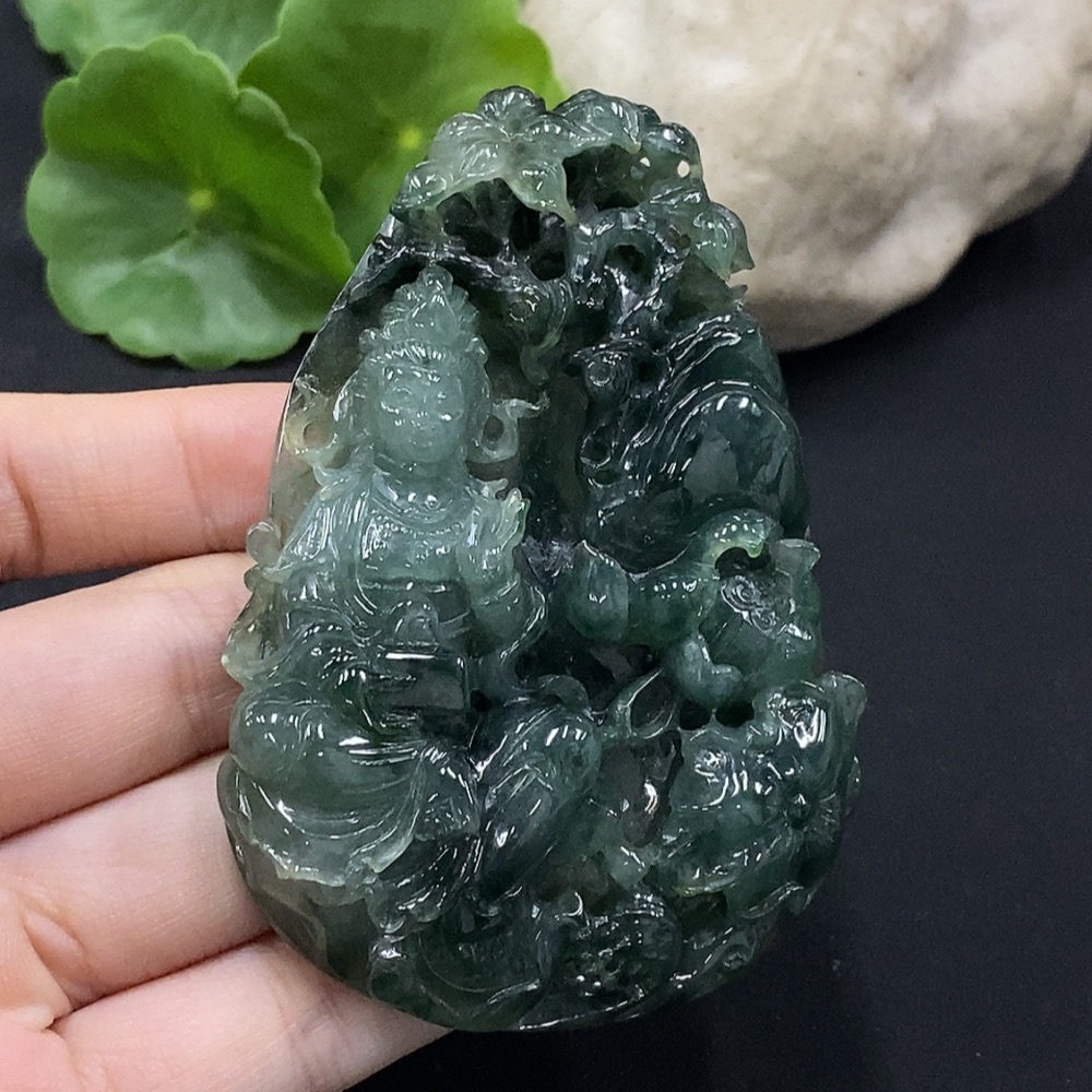 Jadeite Guanyin Pendant with Damage, Total Weight Approximately 79.16g