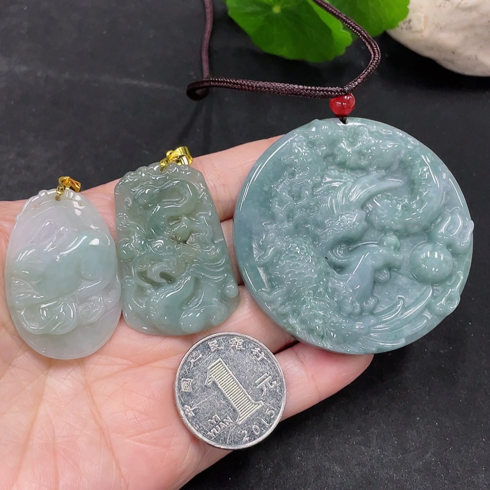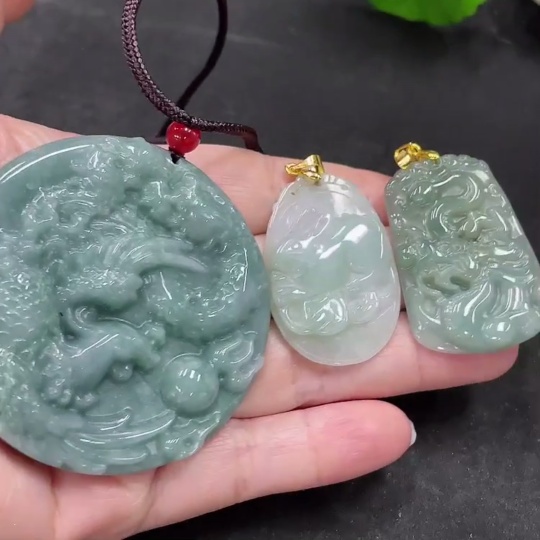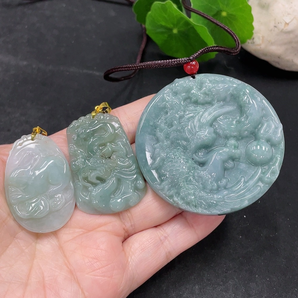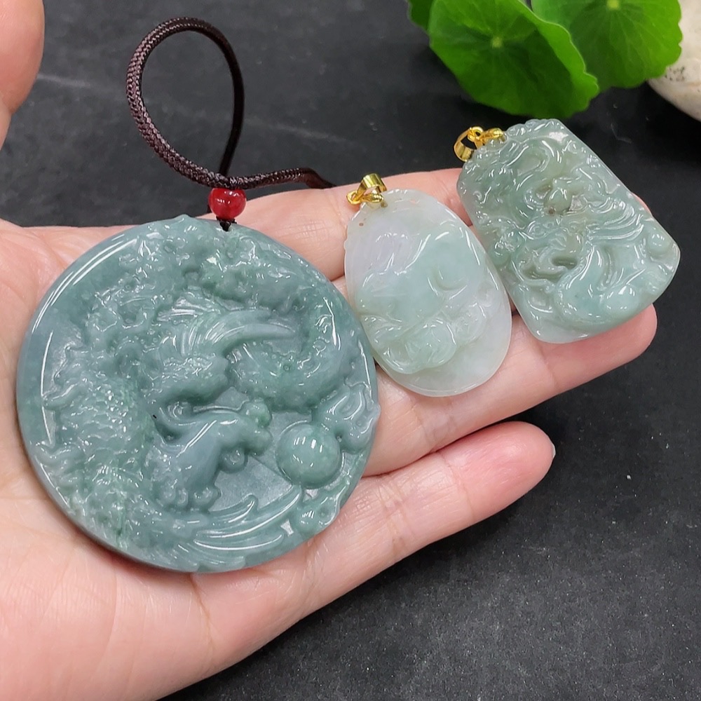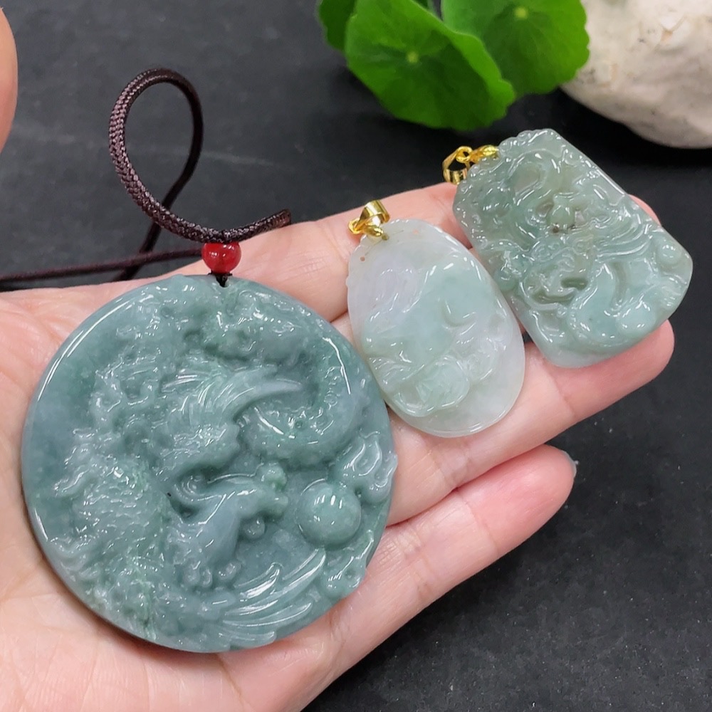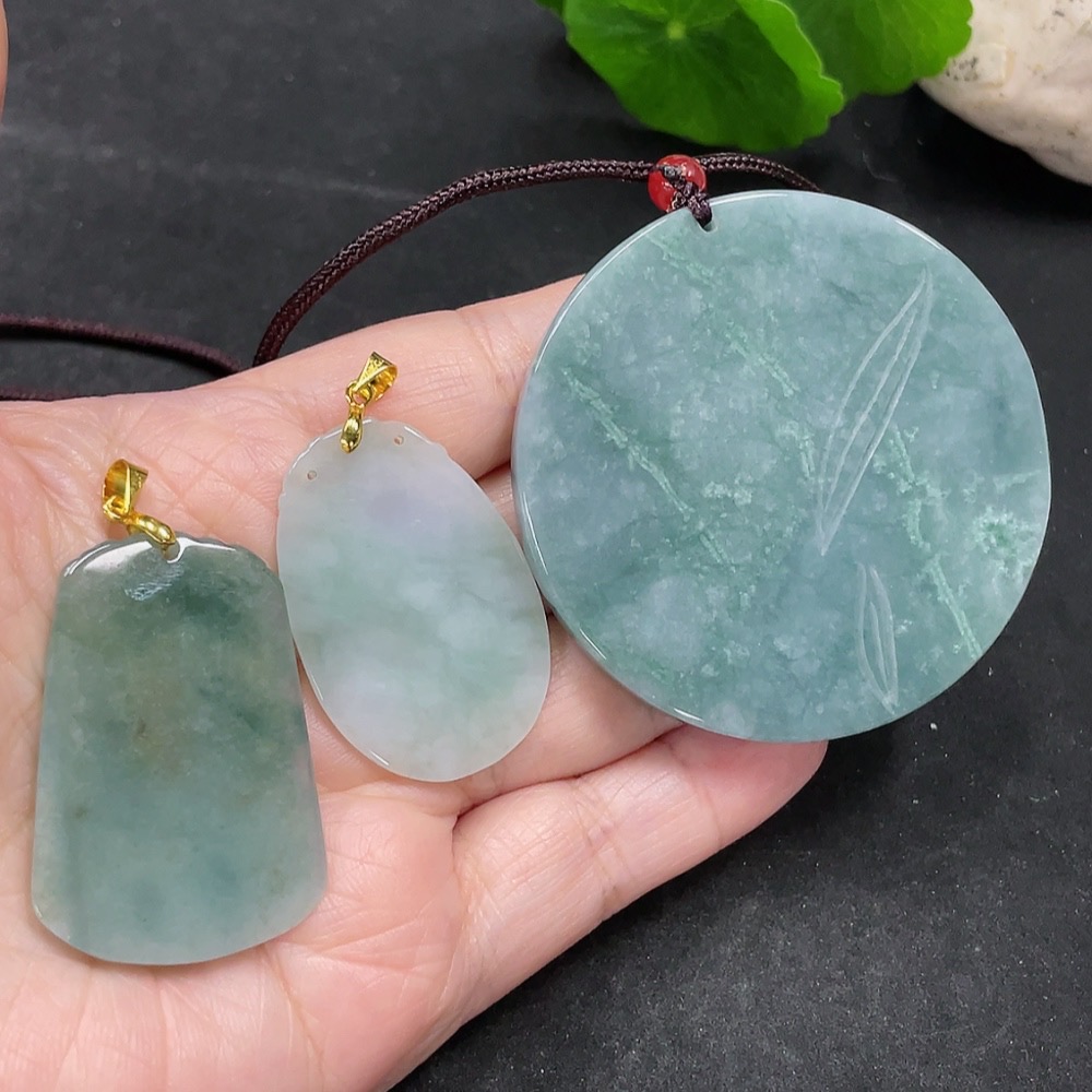 Jadeite Pendants Sell as a Lot (Non-Gold Inlaid)