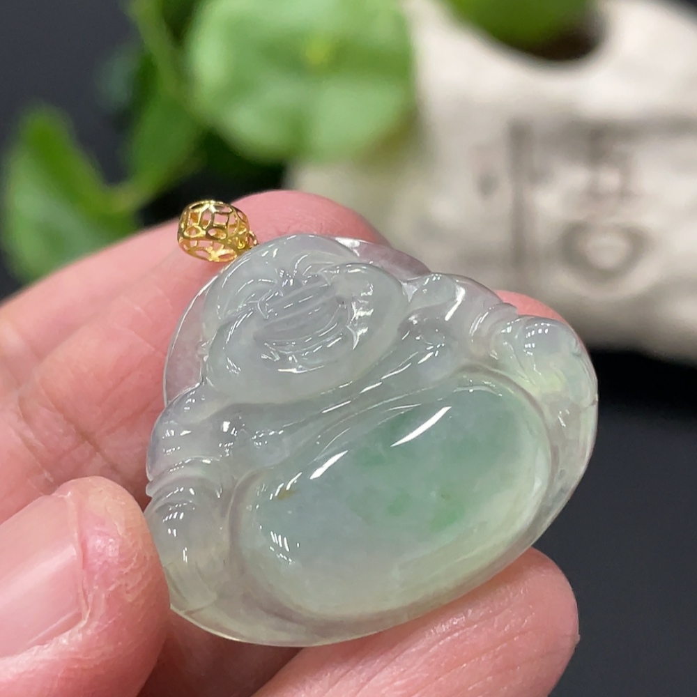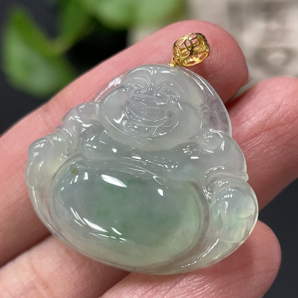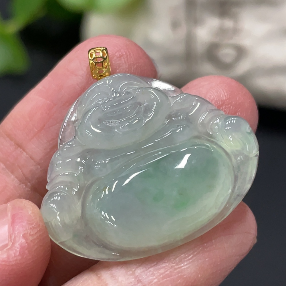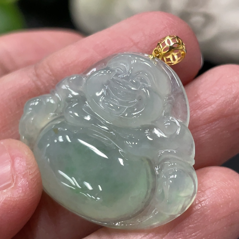 Jadeite Buddha Pendant with 18k Gold Clasp, Total Weight Approx. 6.27g