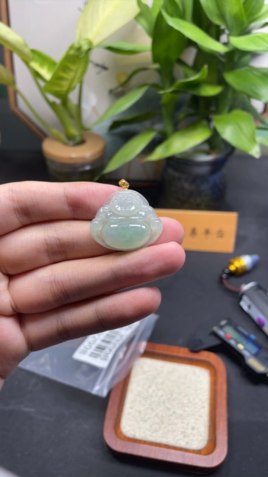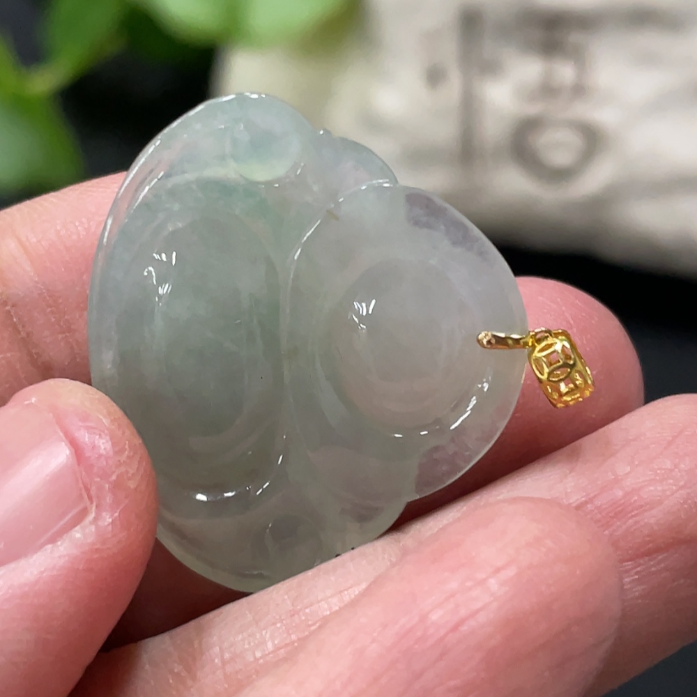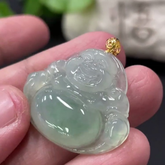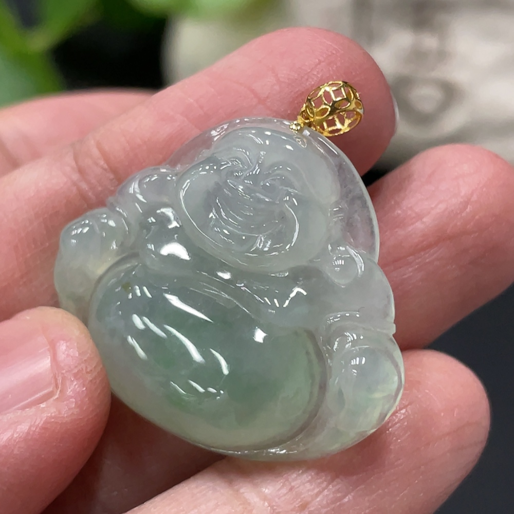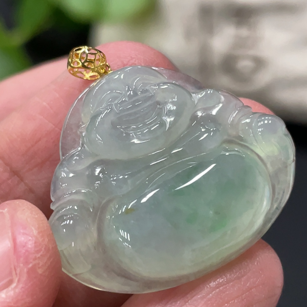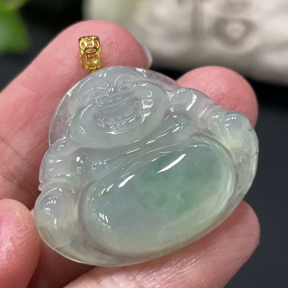 Jadeite Buddha Pendant with 18k Gold Clasp, Total Weight Approx. 6.27g