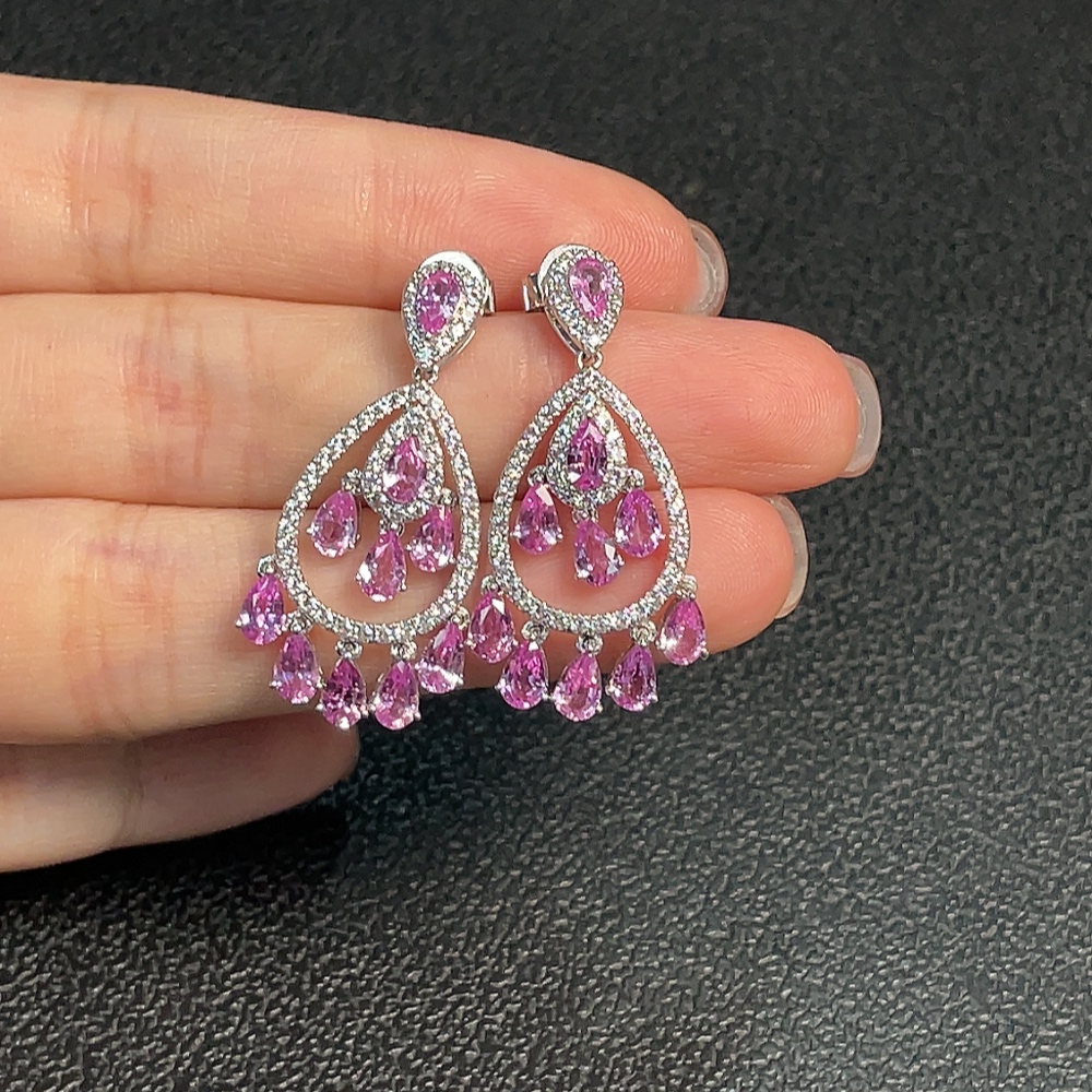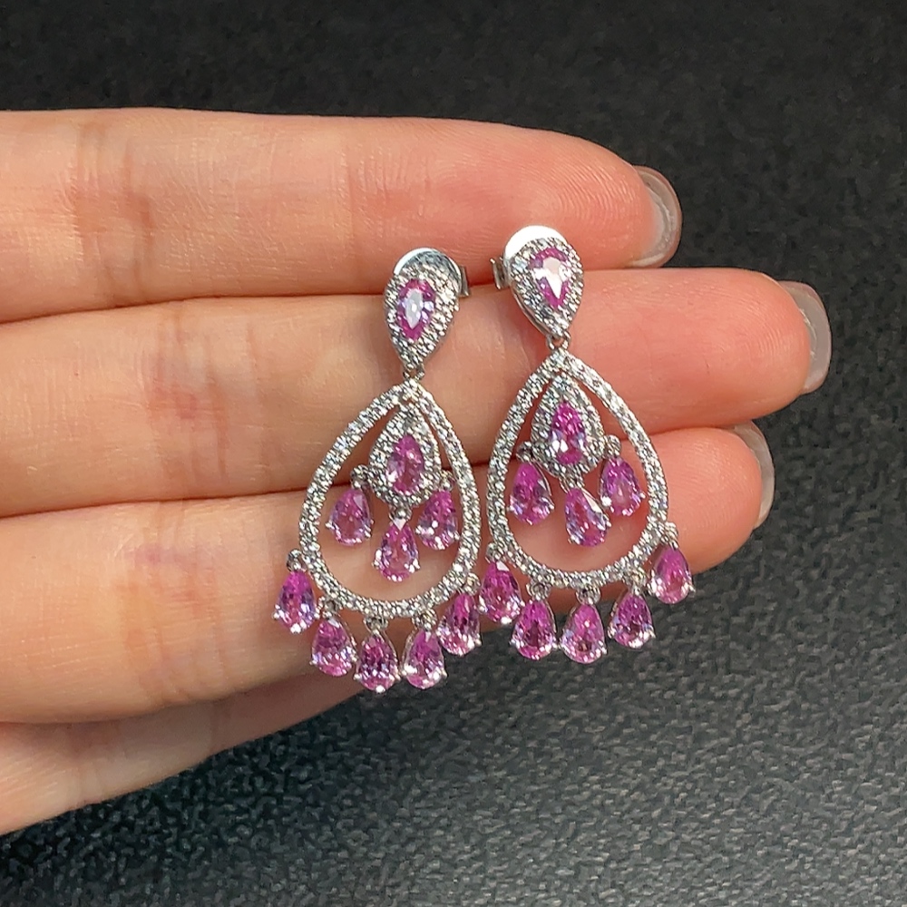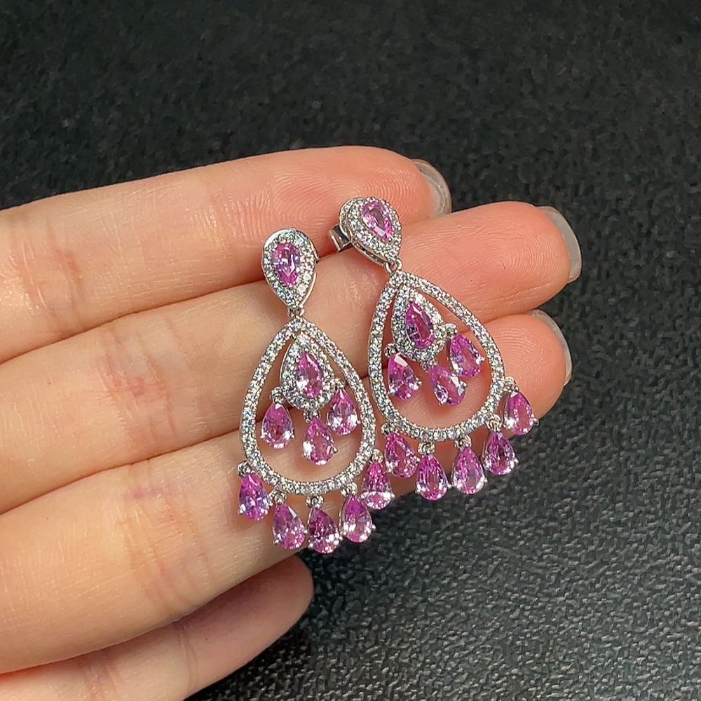 18K Blue Sapphire Earrings Non-Diamond Total Weight Approx. 7.5g