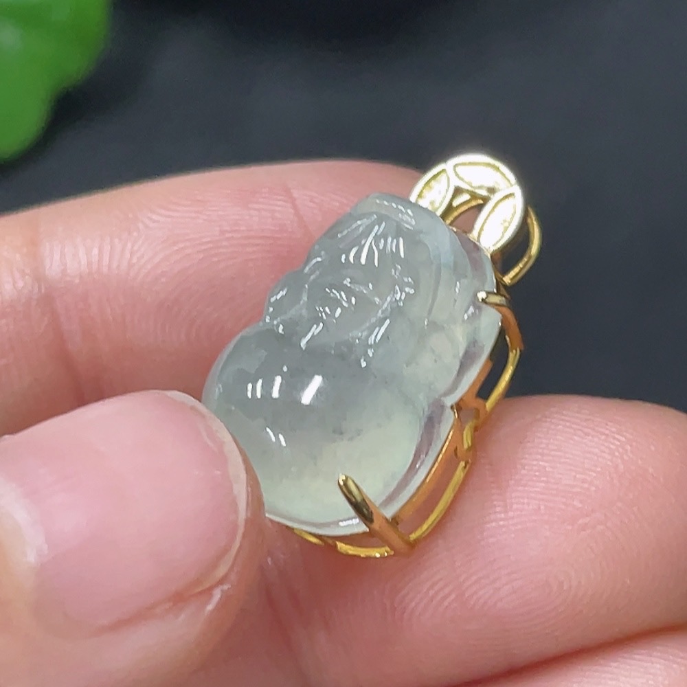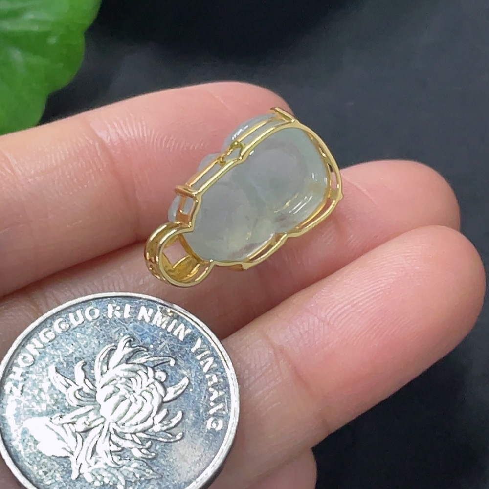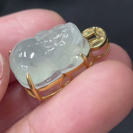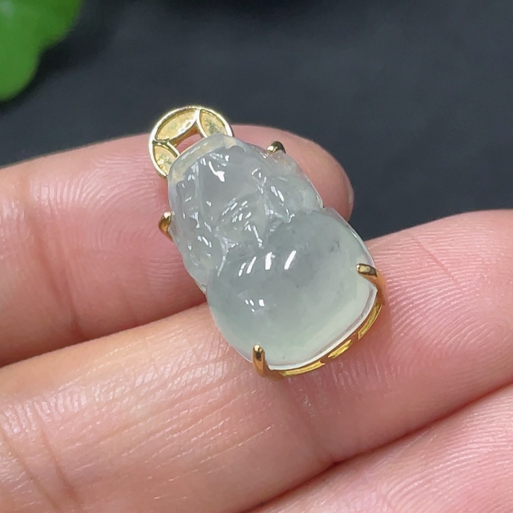 Jadeite Pi Xiu Pendant with 18K Gold, Total Weight Approx. 2.9g