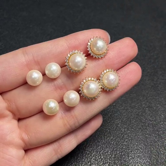 Seawater Pearl Earrings Non-Gold Total Weight Approx. 9.3g Sell as a Lot
