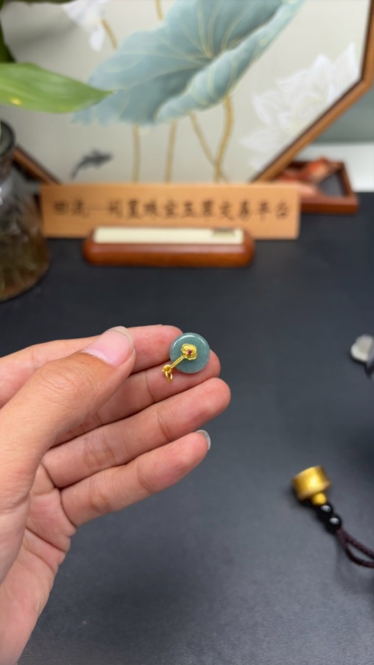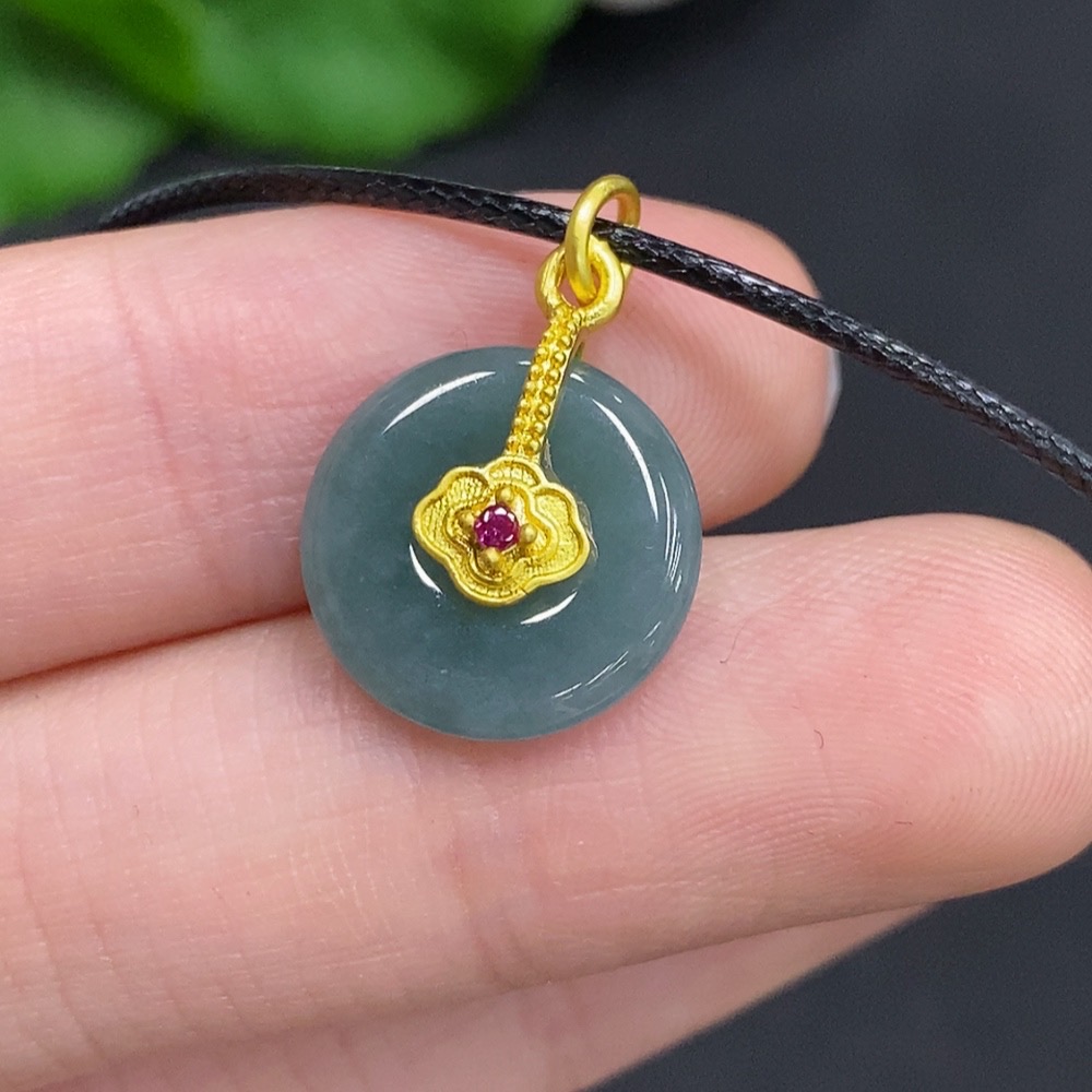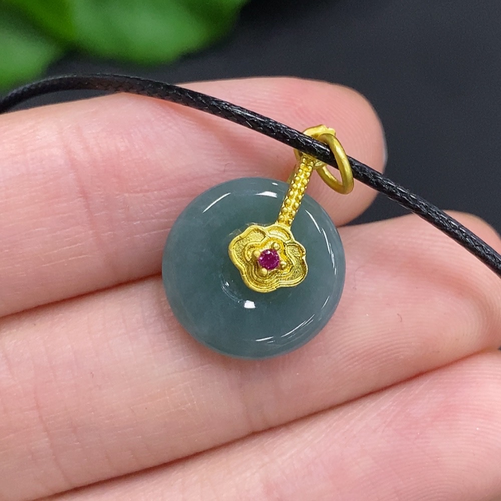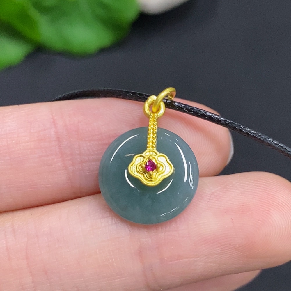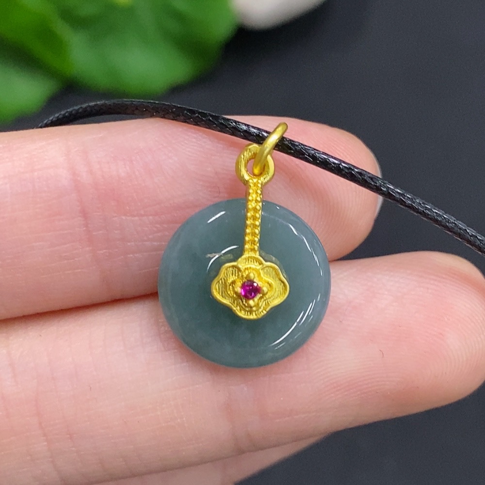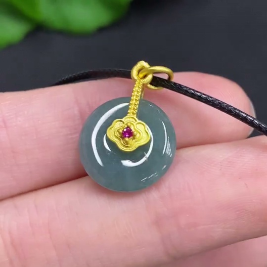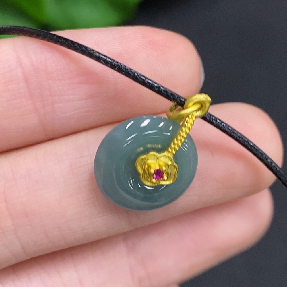 Jadeite Safety Buckle Non-Gold Inlaid Total Weight Approx. 1.6g (Excluding Rope Weight)