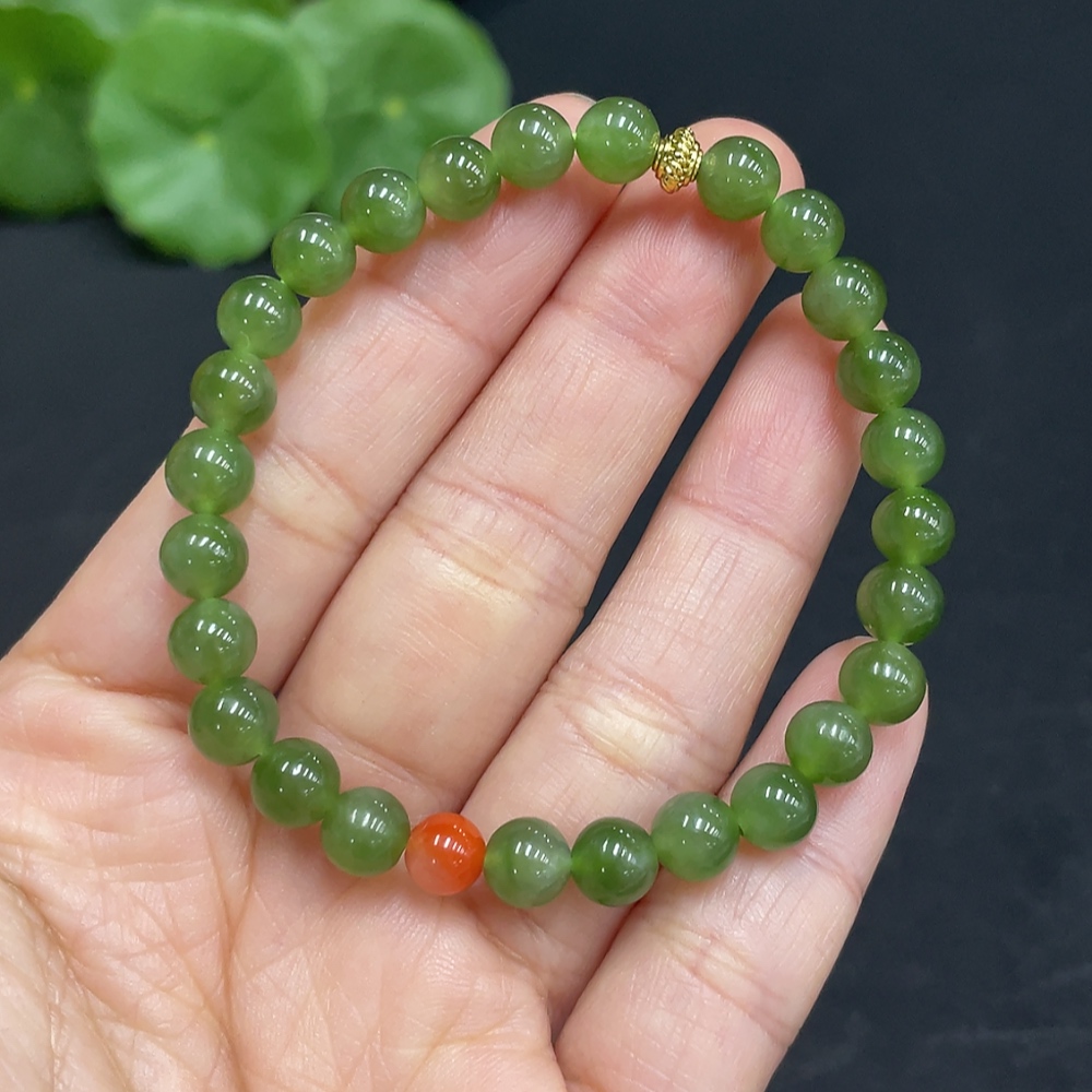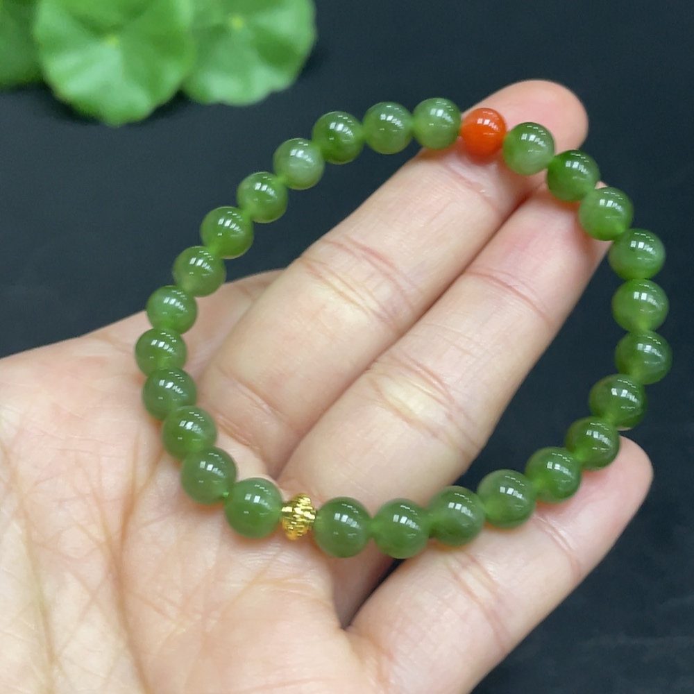 Hetian Jade Jasper Bracelet, Approx. 6mm, Non-Gold, Total Weight Approx. 9.5g, Beads Not Hetian Jade