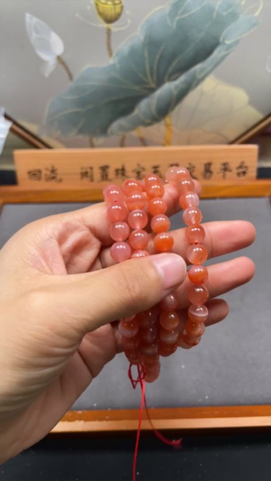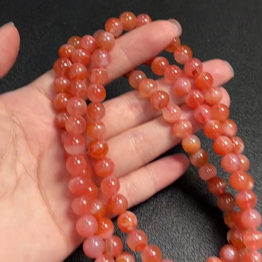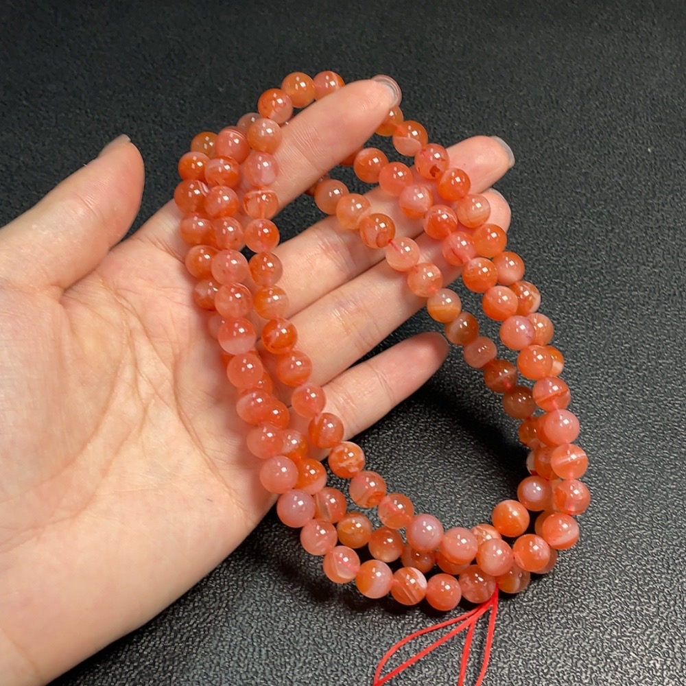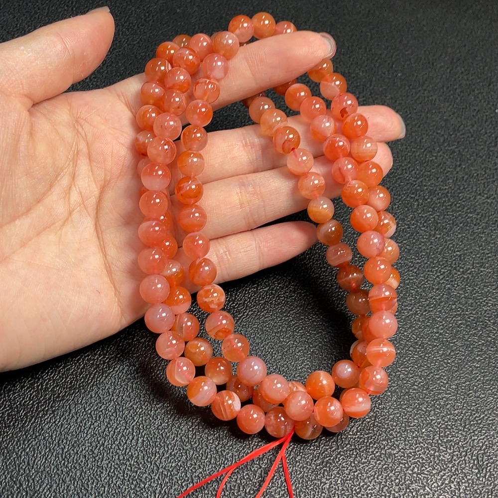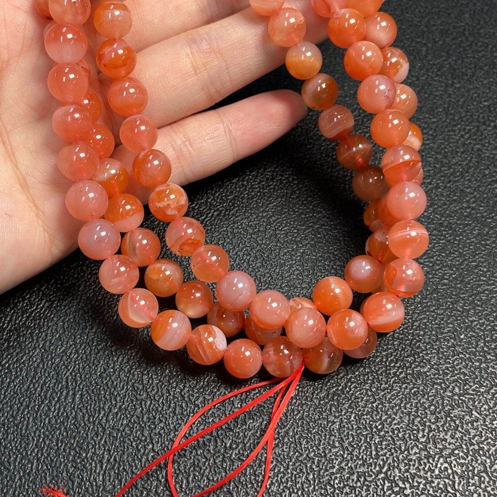 Red Agate Bead Necklace with Visible Organic Matter, Total Weight Approx. 80.6g, Size About 8.2mm