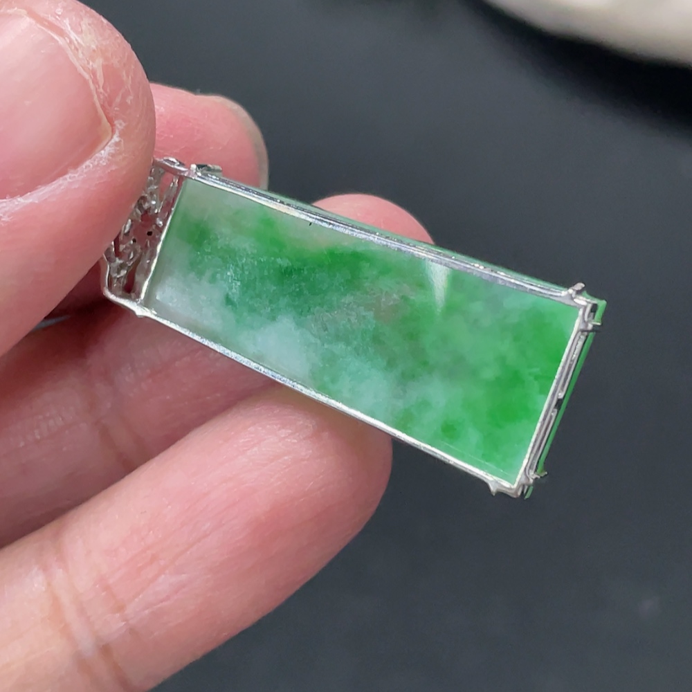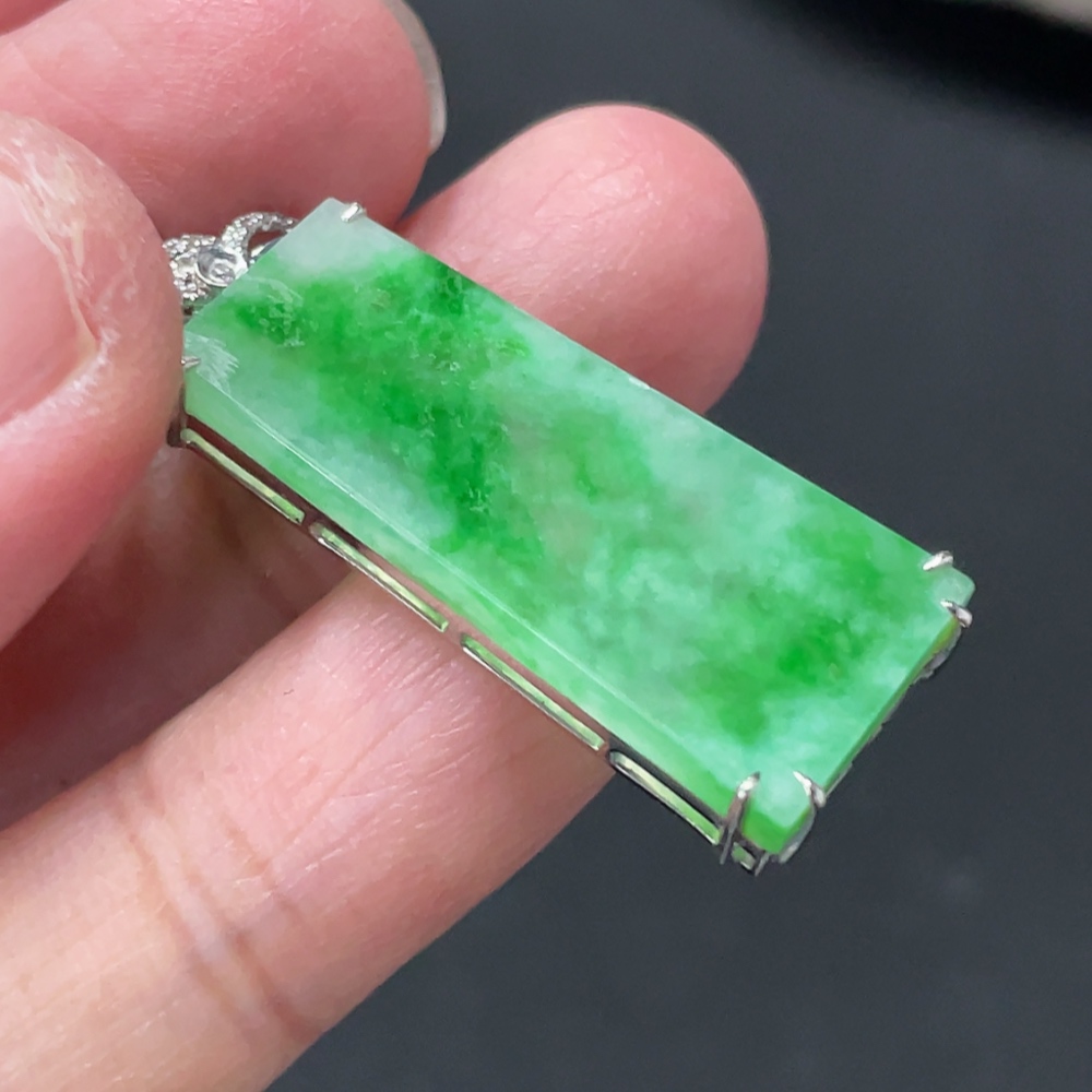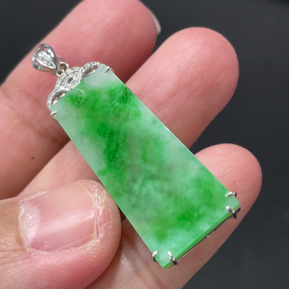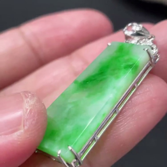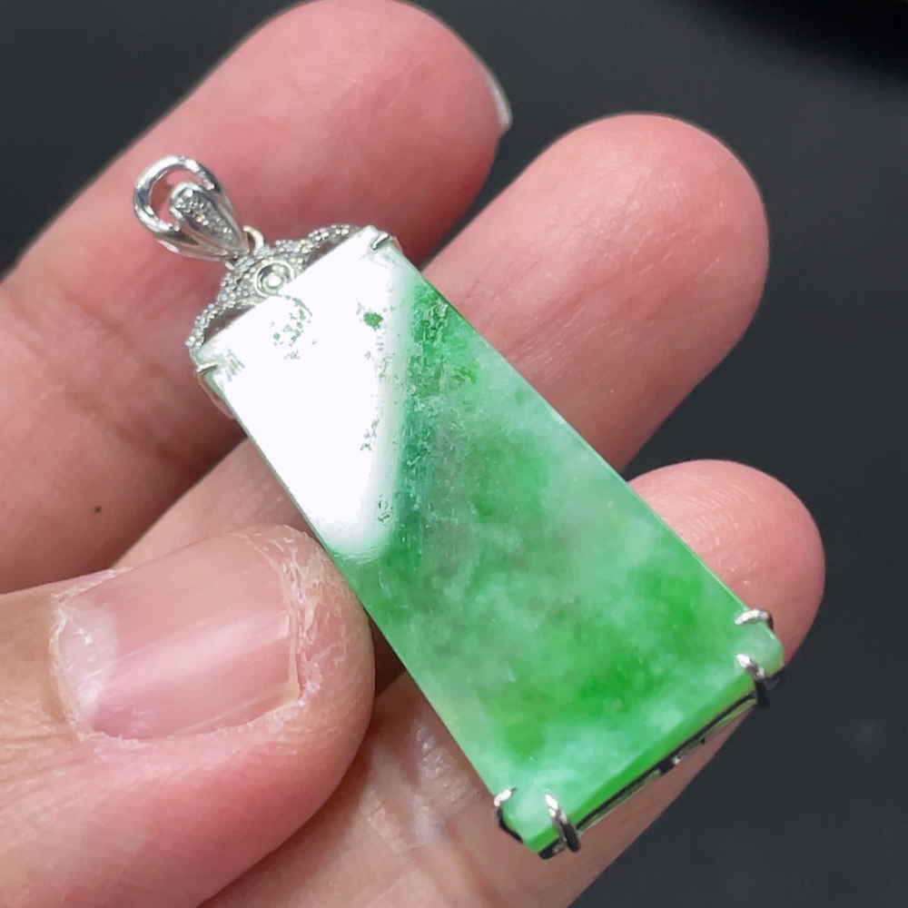 Jadeite Plain Pendant Necklace 18k Gold Set with Diamonds Total Weight Approx.4g