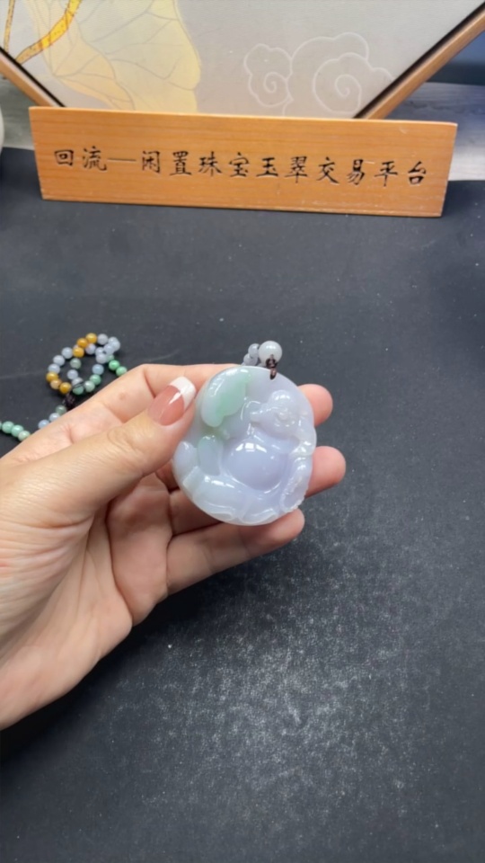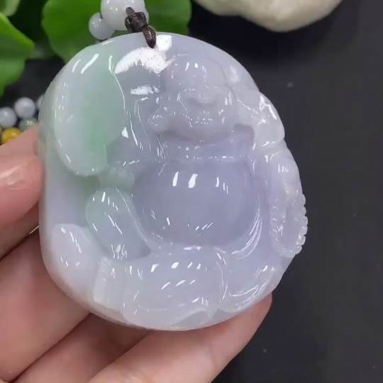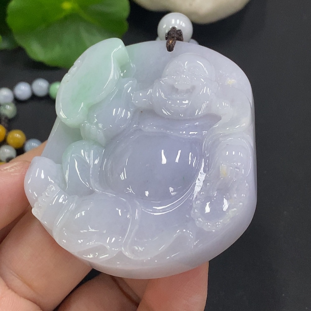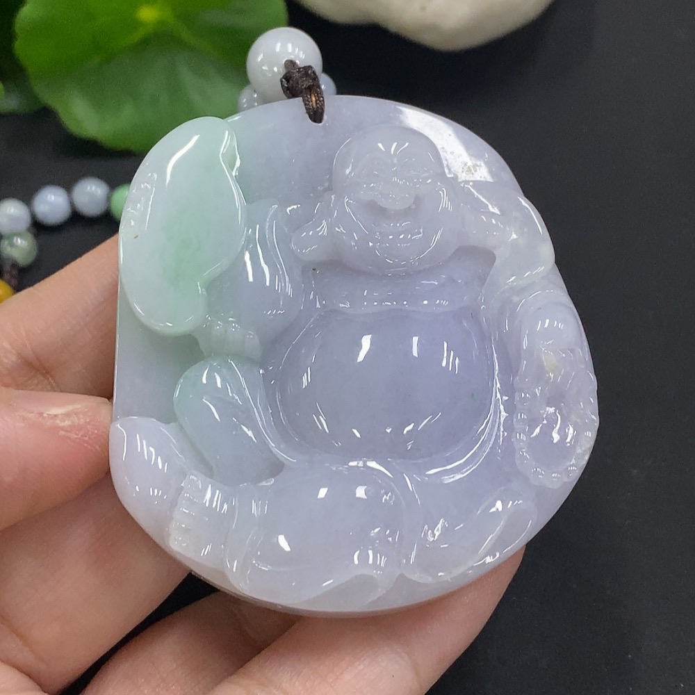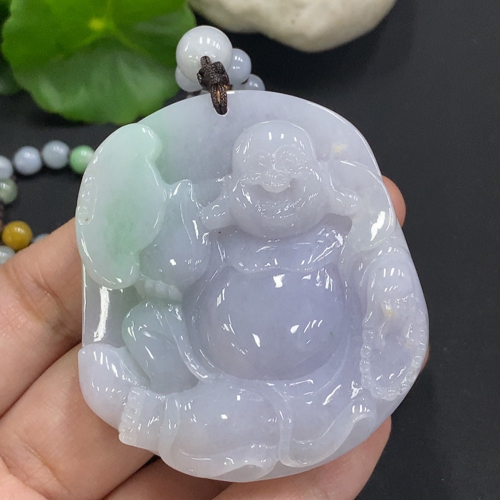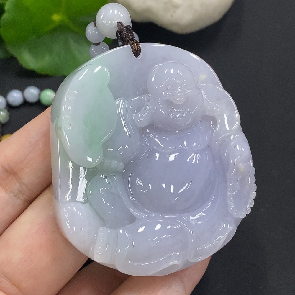 Jadeite Buddha Pendant, Total Weight Approximately 104.4g (Including Rope Weight)