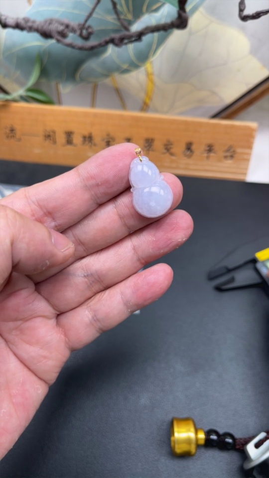 Jadeite Gourd Pendant 18K Gold Total Weight Approx. 3.4g