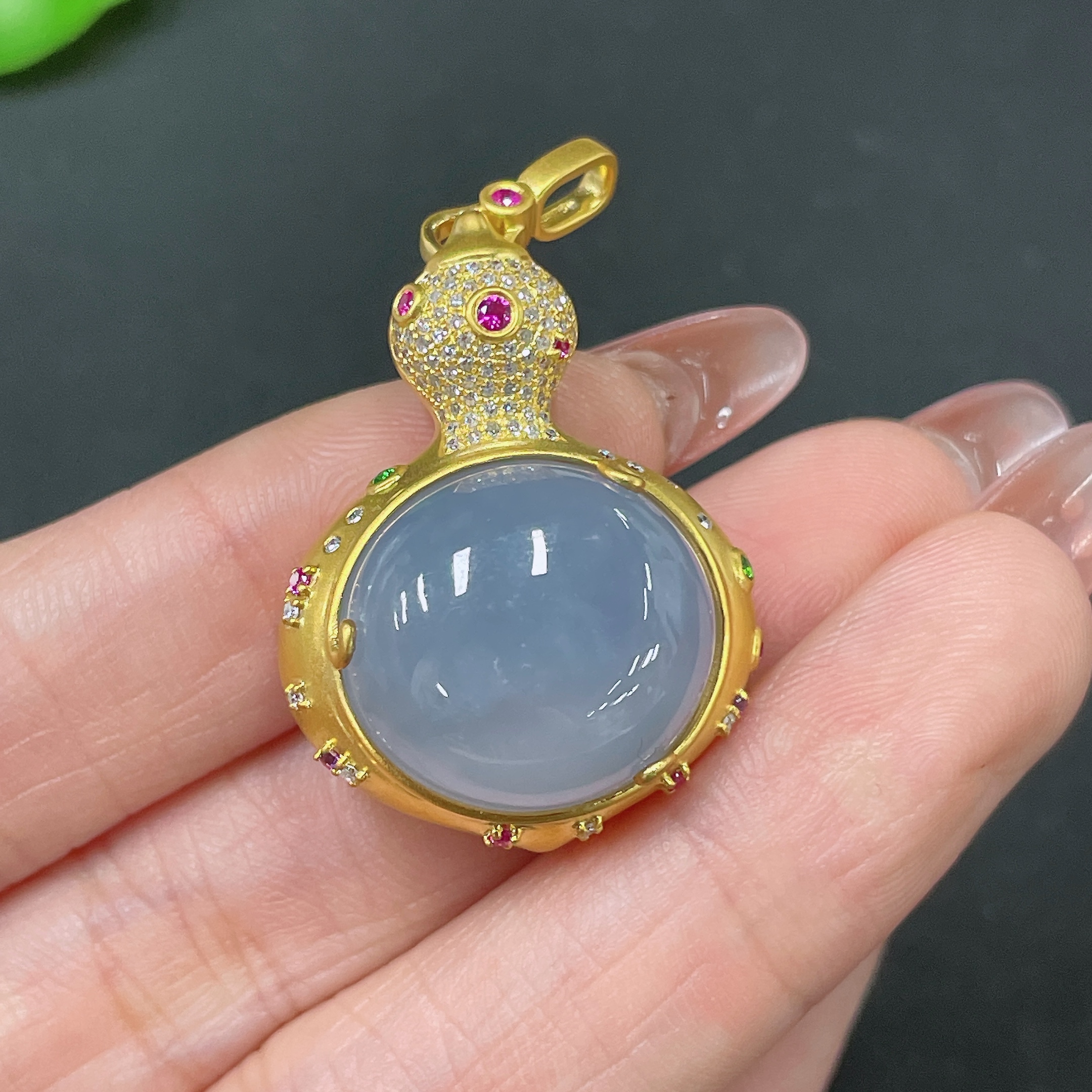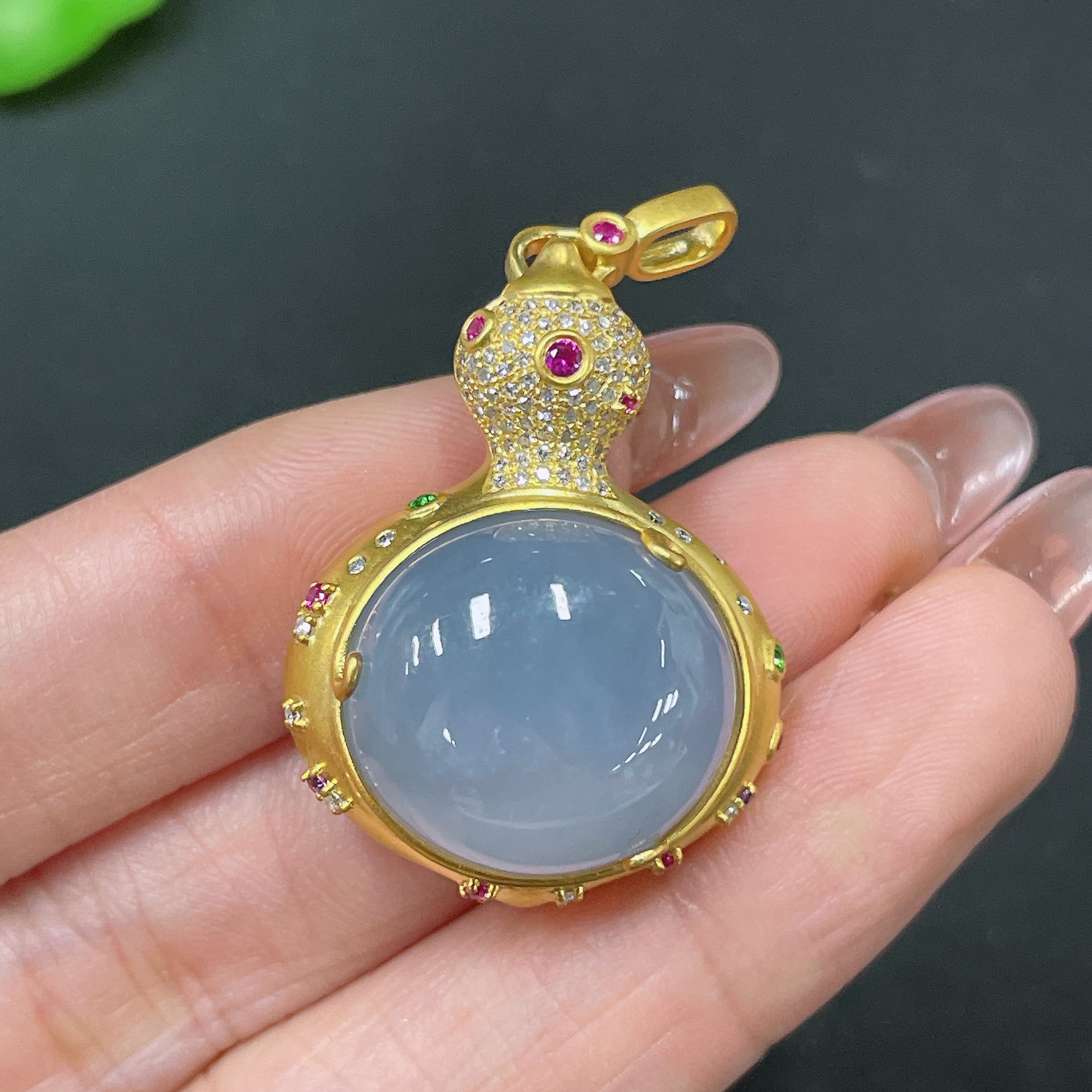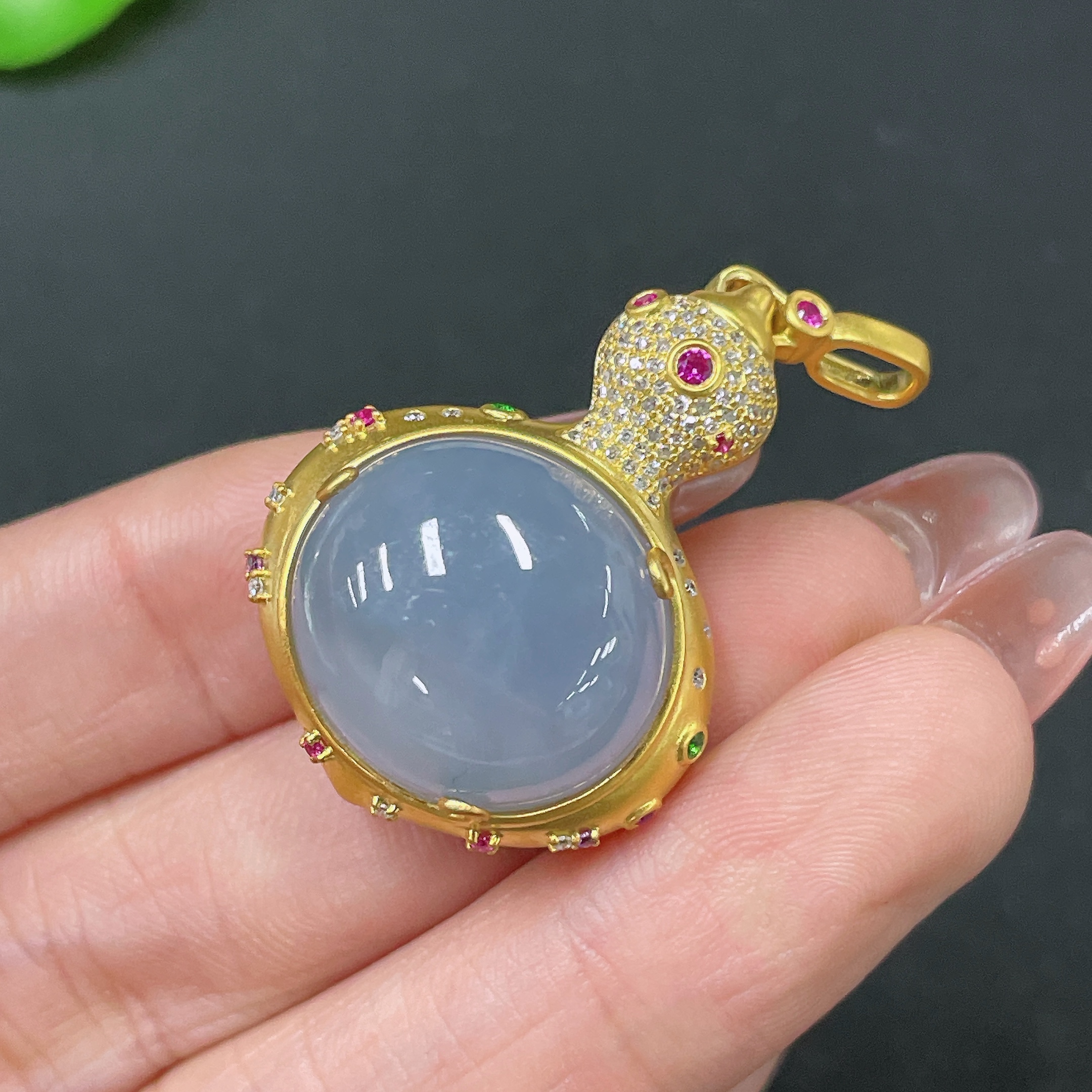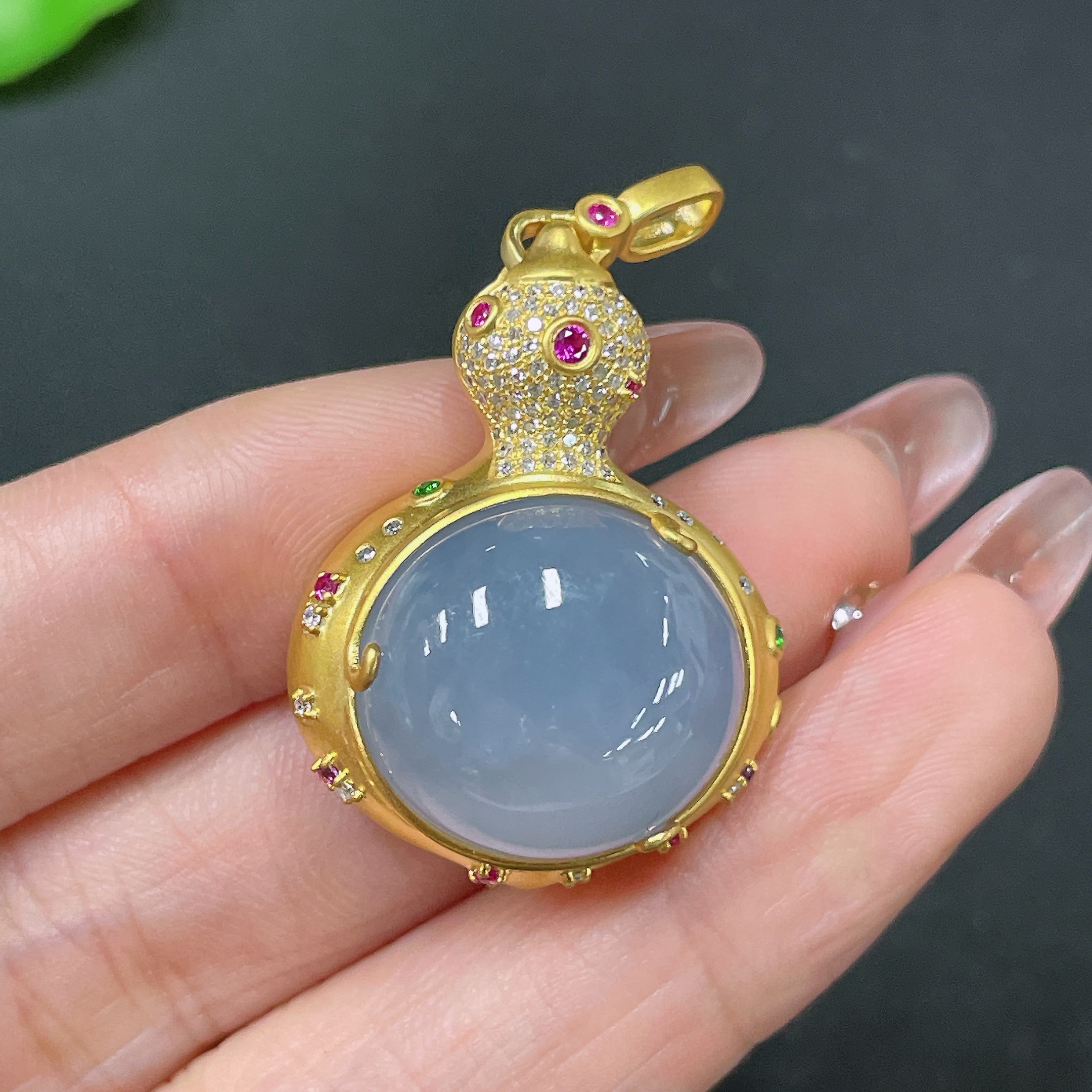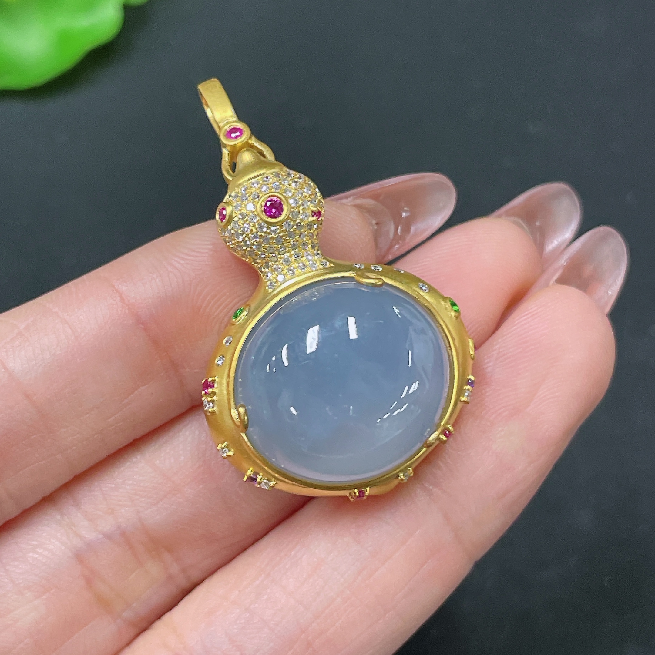 Jadeite Pendant 18k Gold Setting with Colorless Diamond Accents Total Weight Approx. 11.61g
