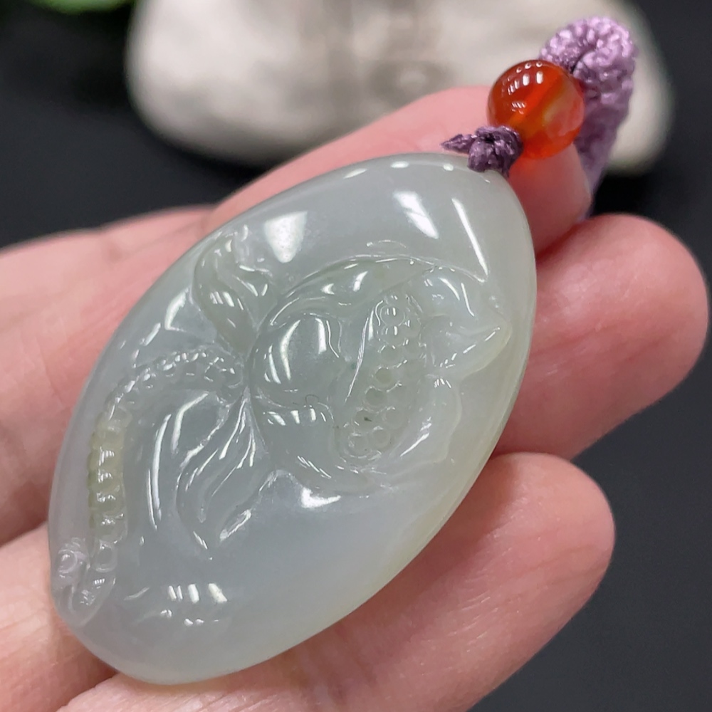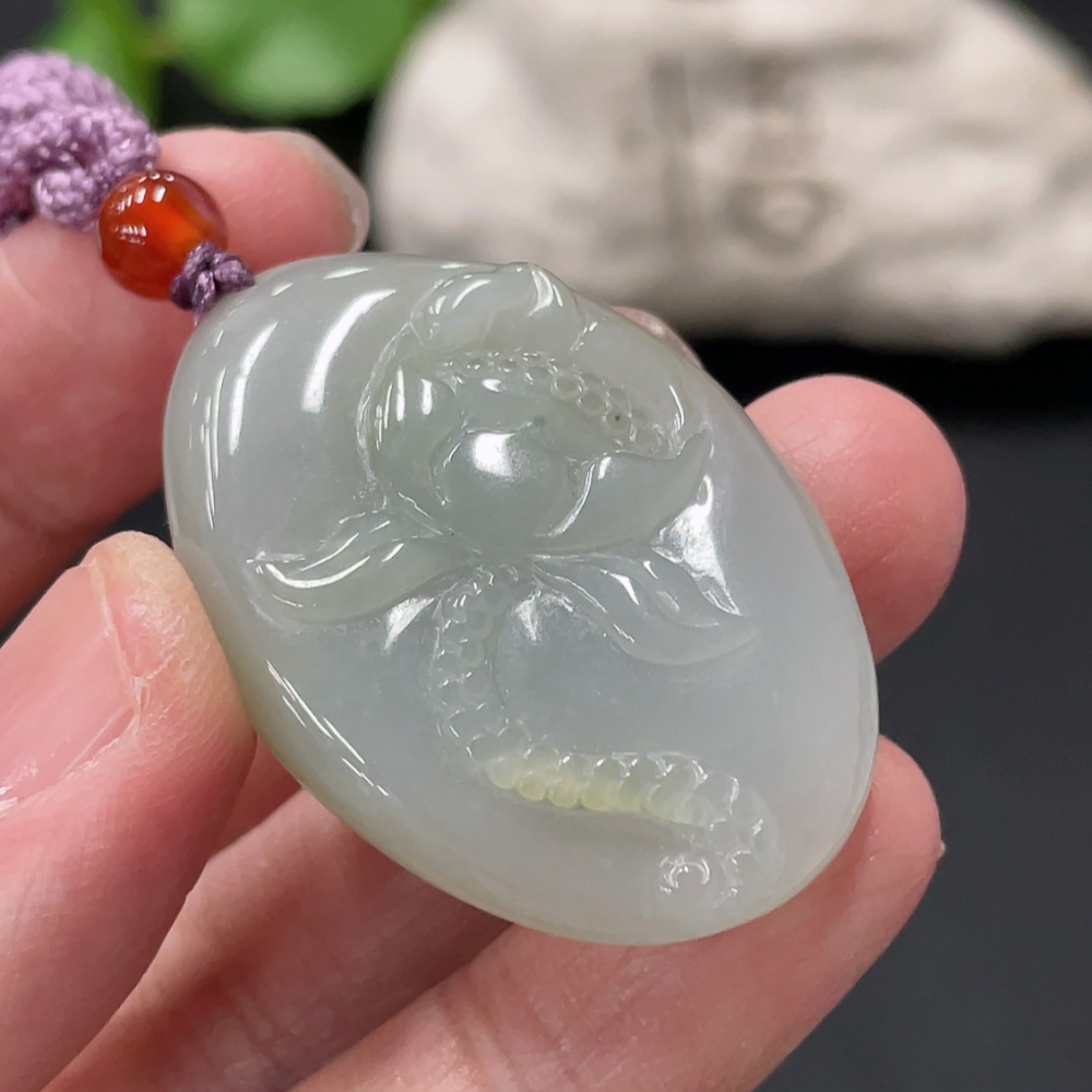 Jadeite Lotus Pendant Total Weight Approx. 16.3g