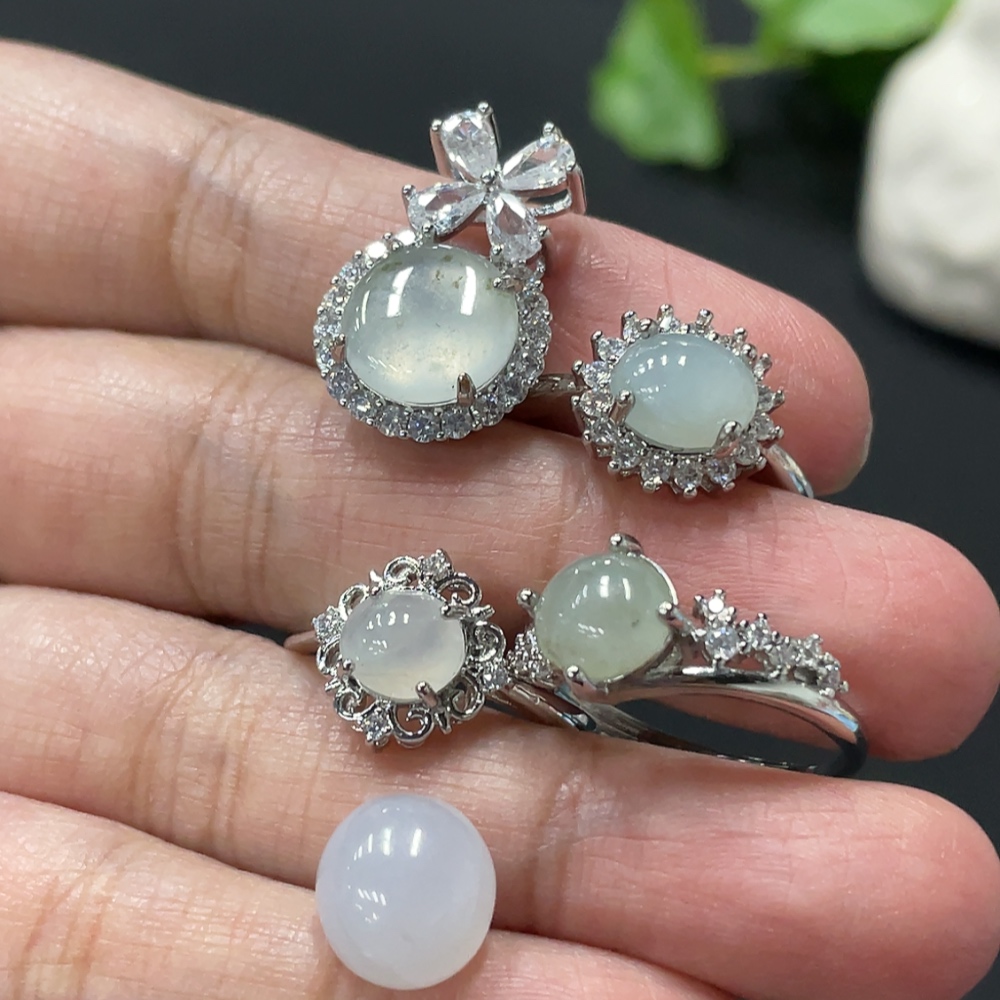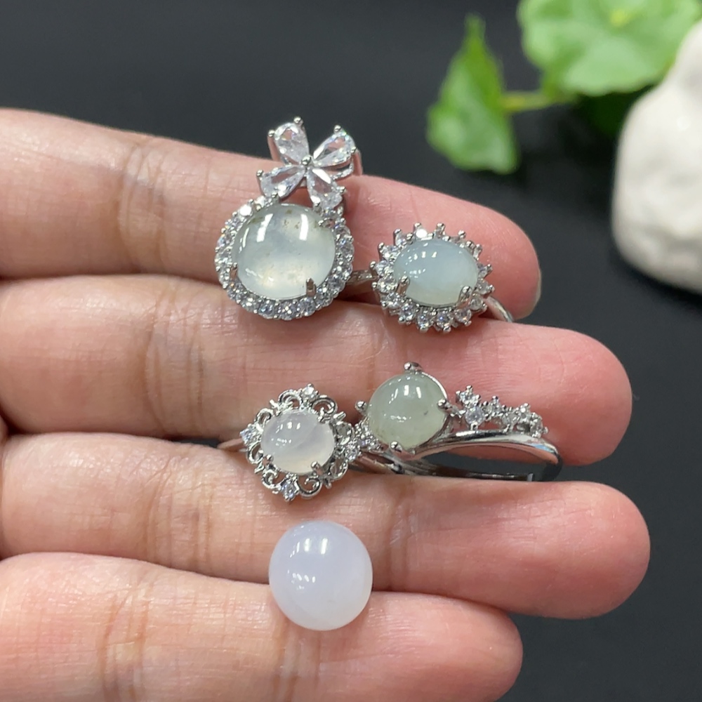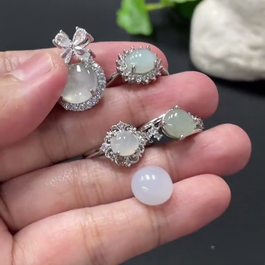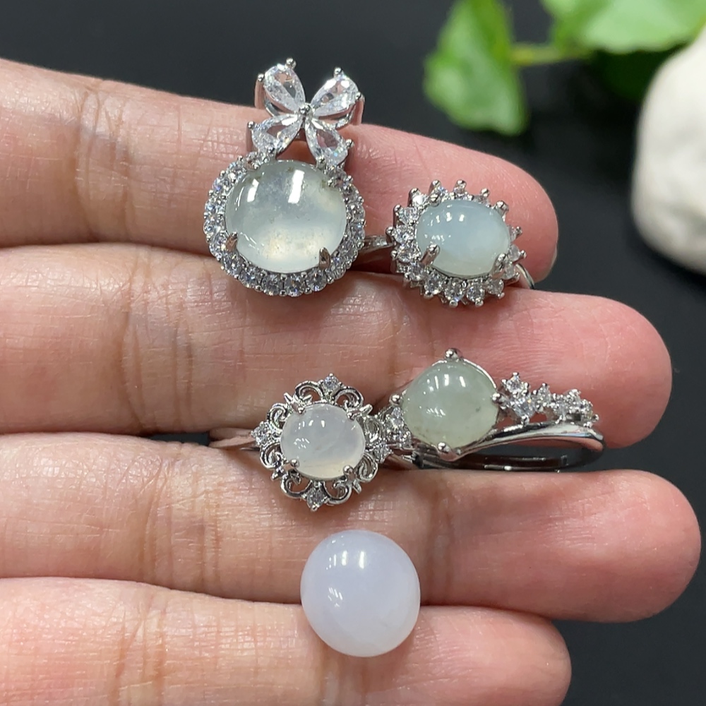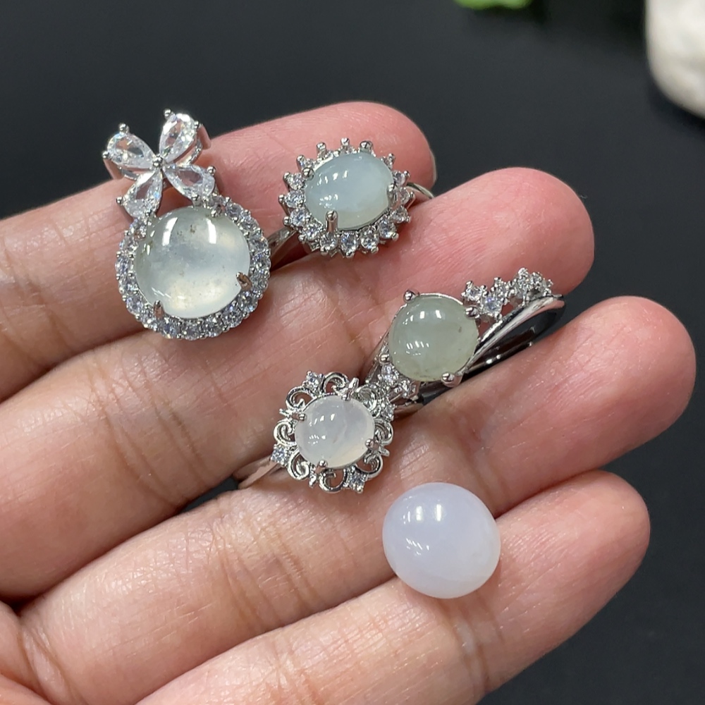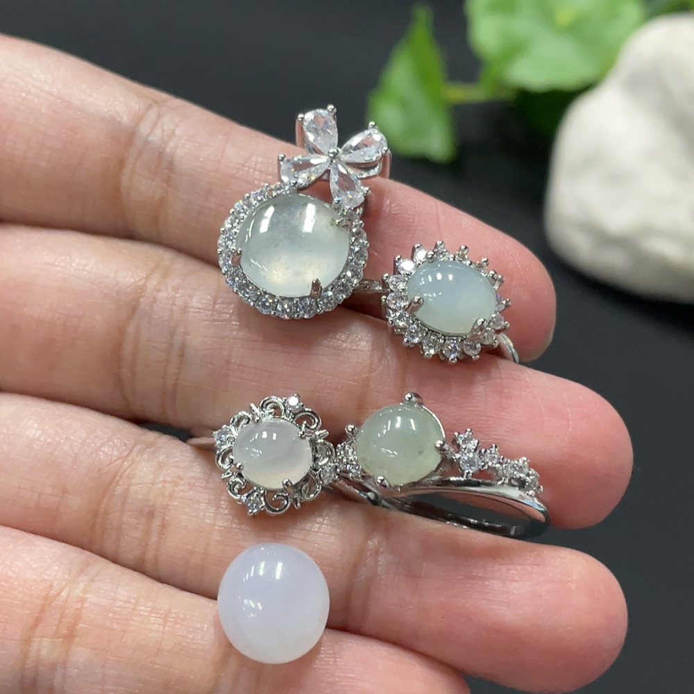 Jadeite Cabochon Ring + Pendant, Non-Gold Setting, Adjustable Ring Size