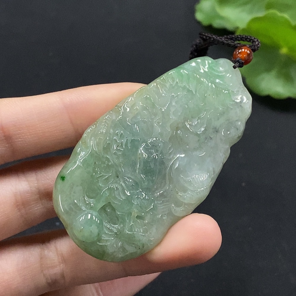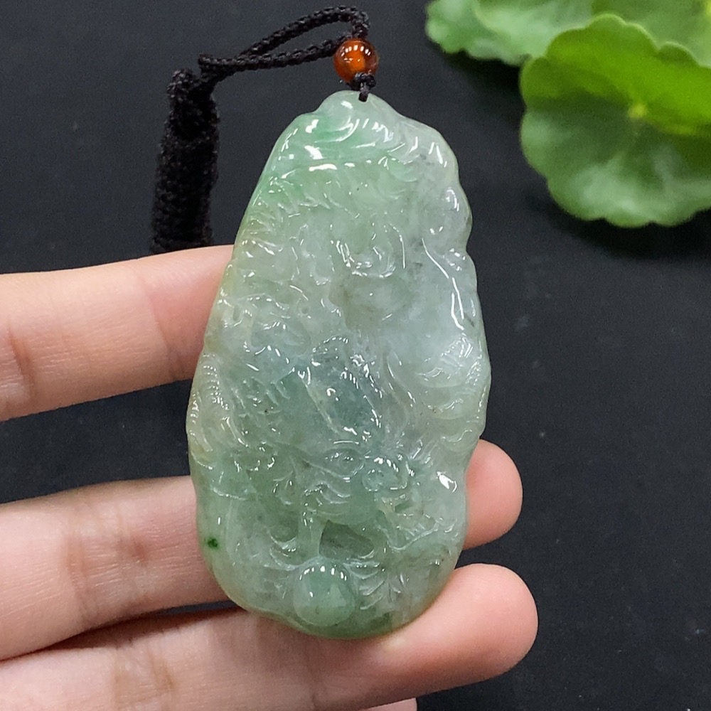 Jadeite Dragon Pendant Total Weight Approx. 30.95g With Non-Grade A Beads
