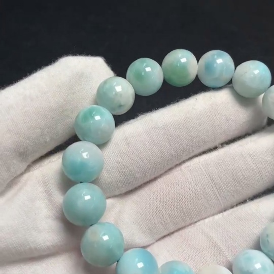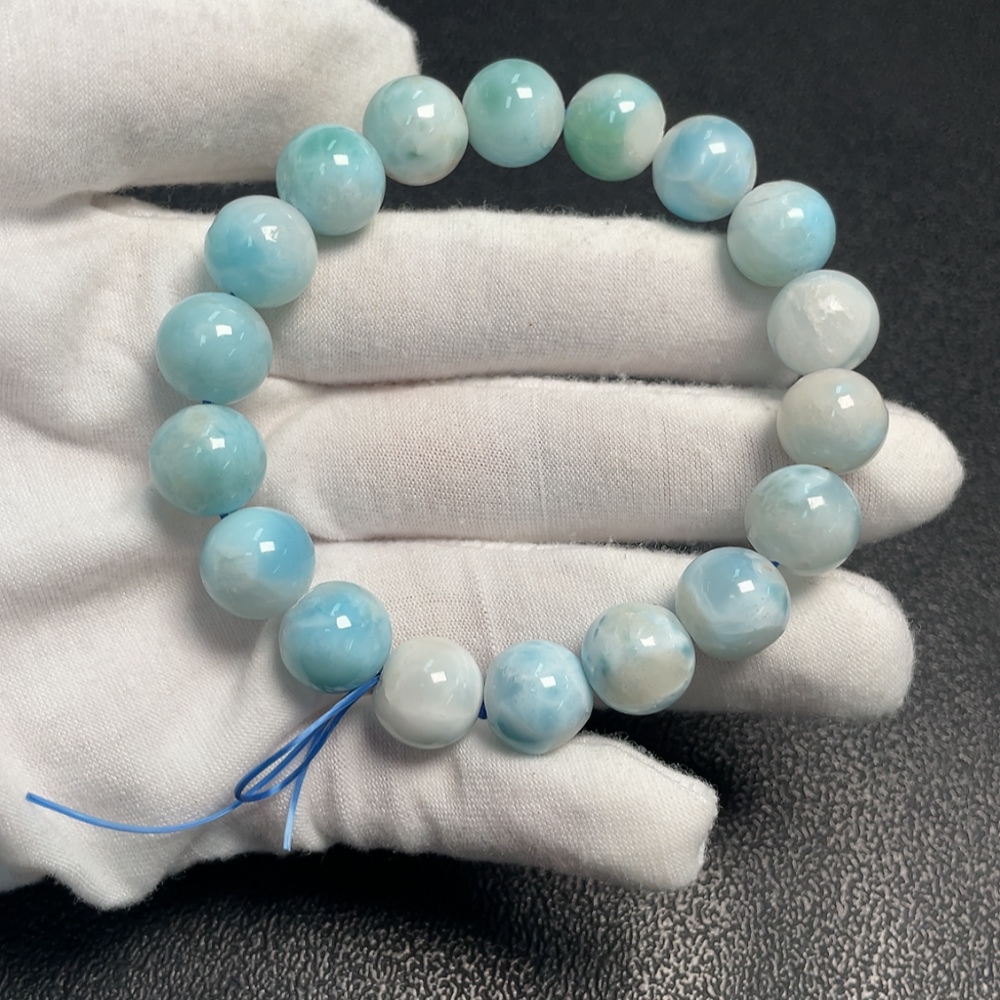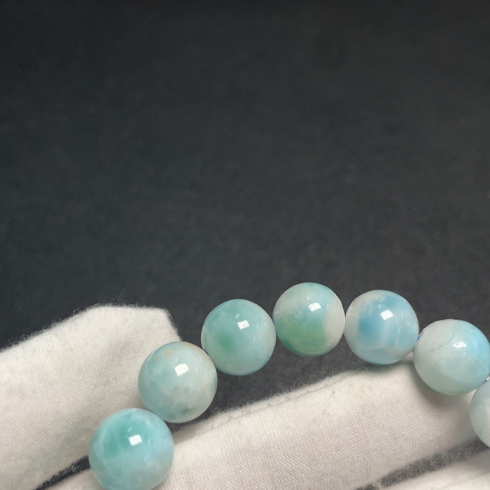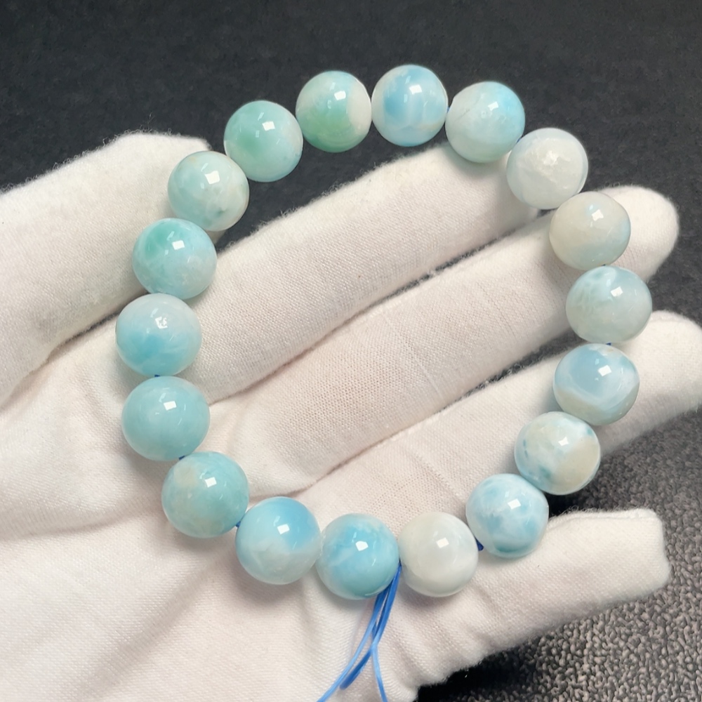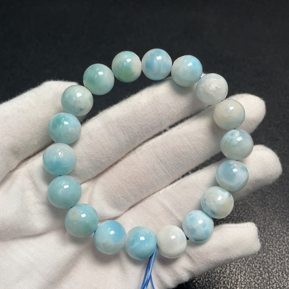 Larimar bead bracelet with visible organic matter, total weight approx. 41.69g, size about 11.6mm