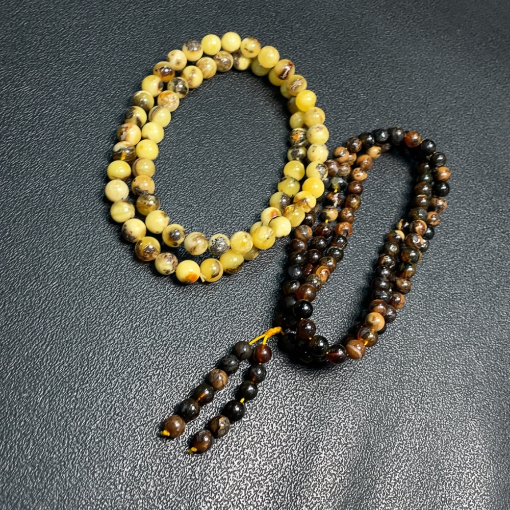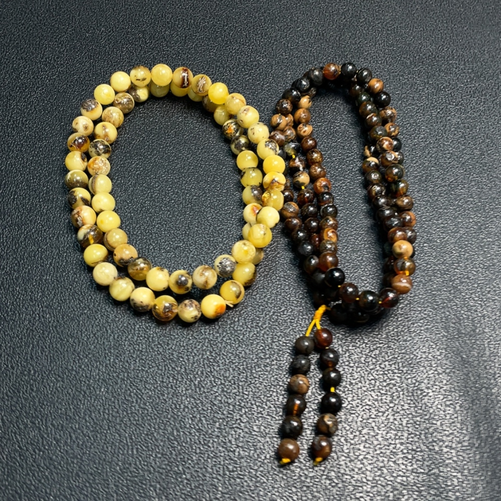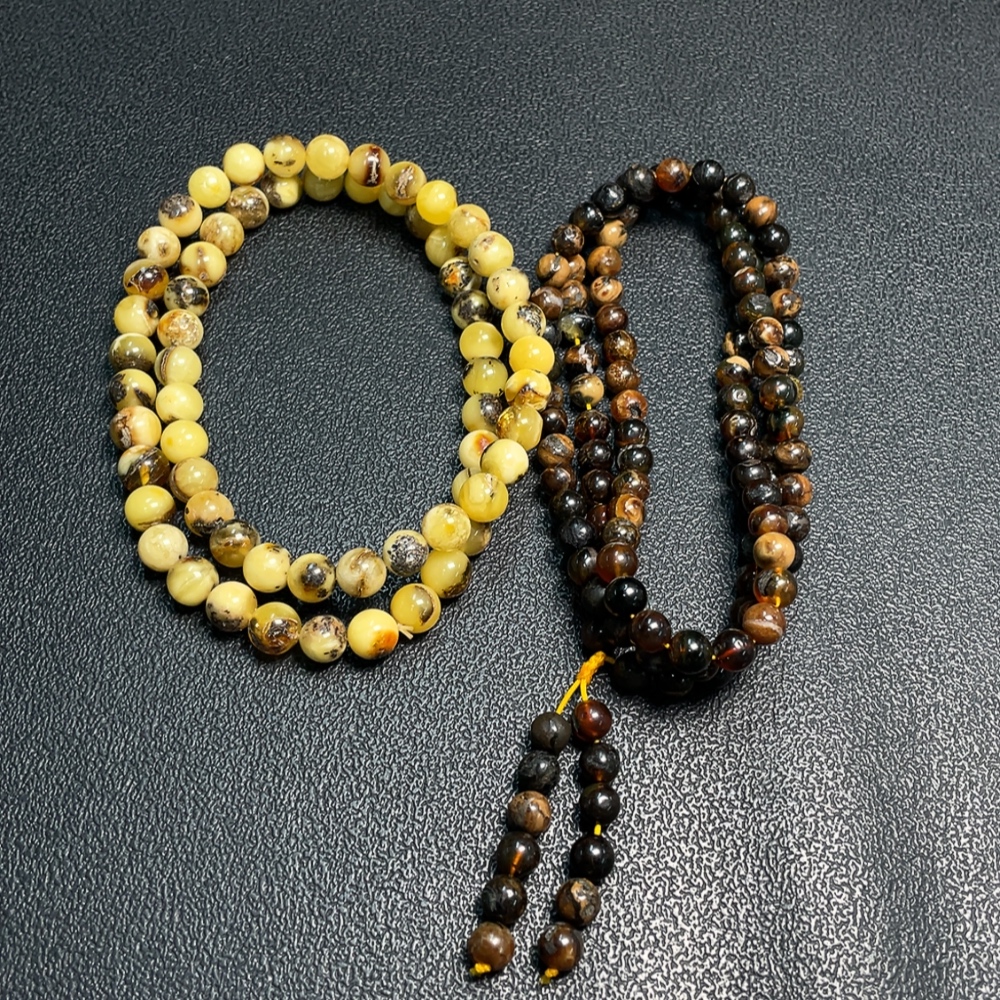 Amber Beeswax Bead Necklace with Other Mineral Components, Total Weight Approximately 53.07g, Sell as a Lot