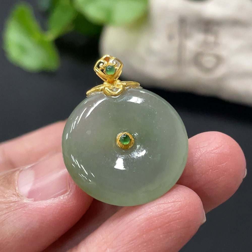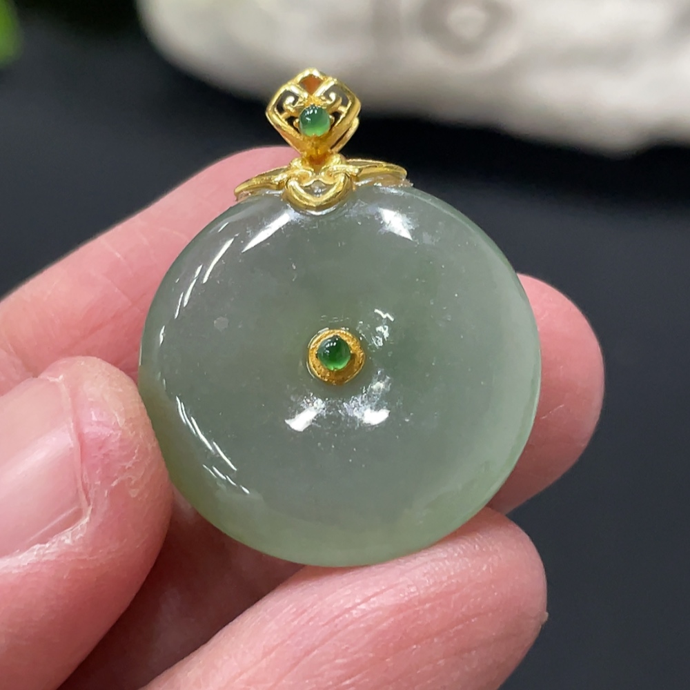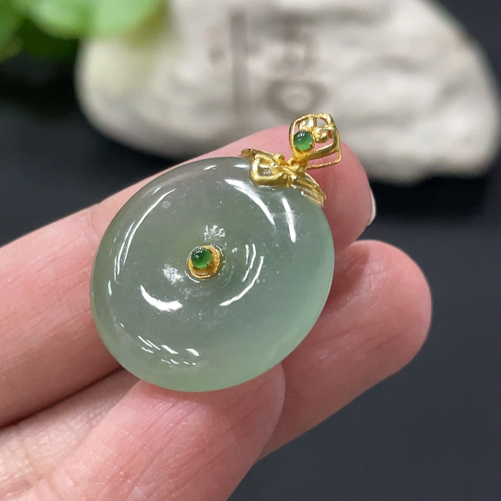 Jadeite Peace Knot Pendant with 18k Gold Clasp, Total Weight Approx. 5.2g