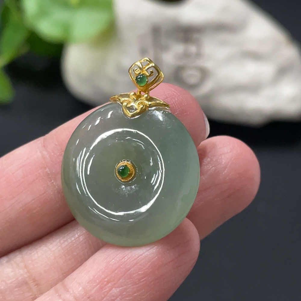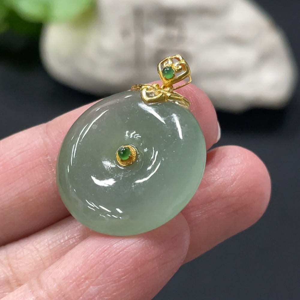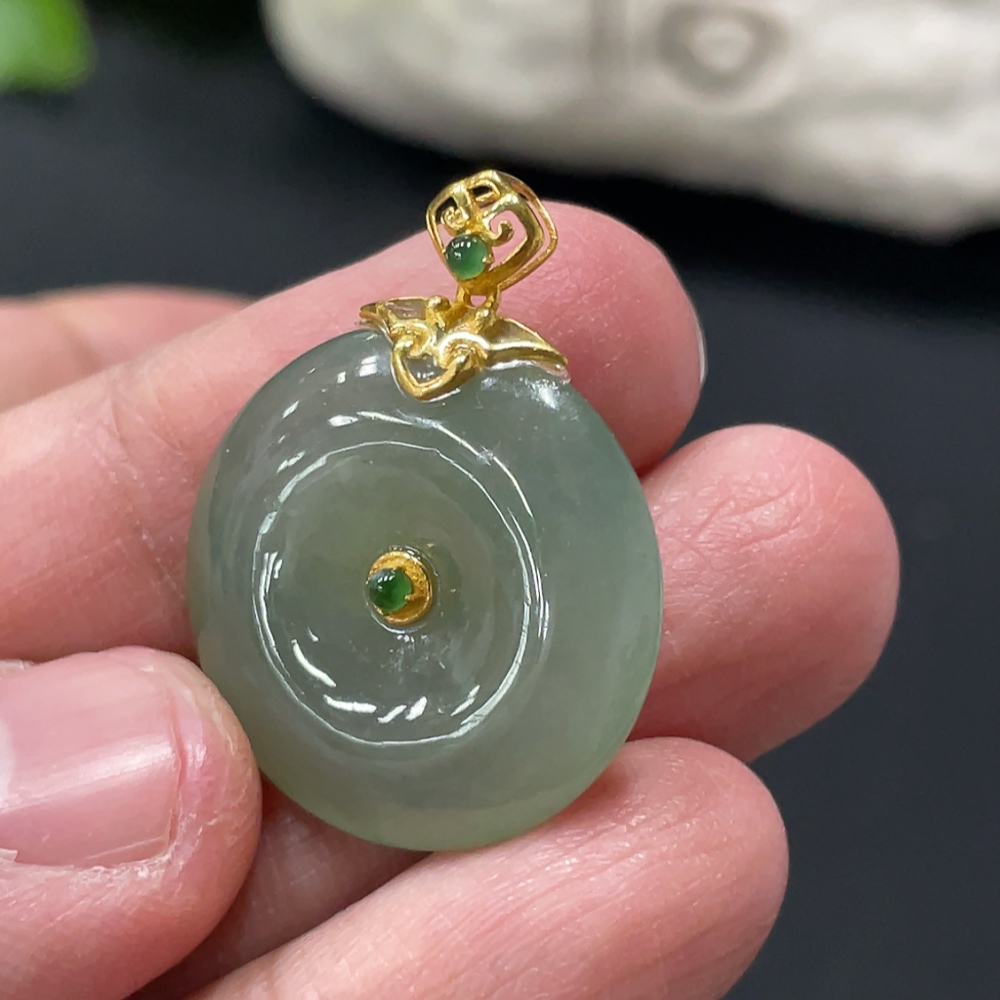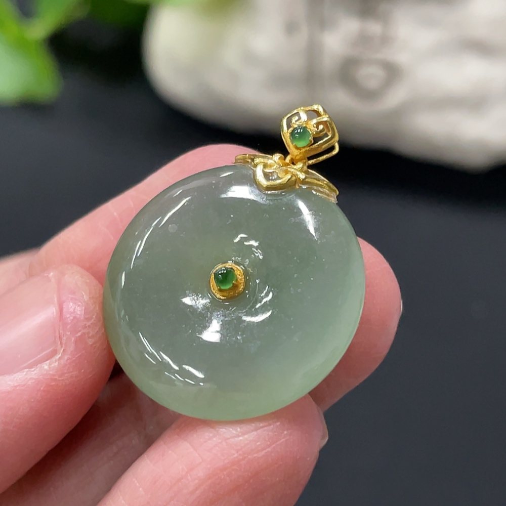 Jadeite Peace Knot Pendant with 18k Gold Clasp, Total Weight Approx. 5.2g