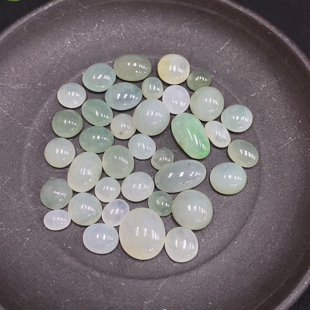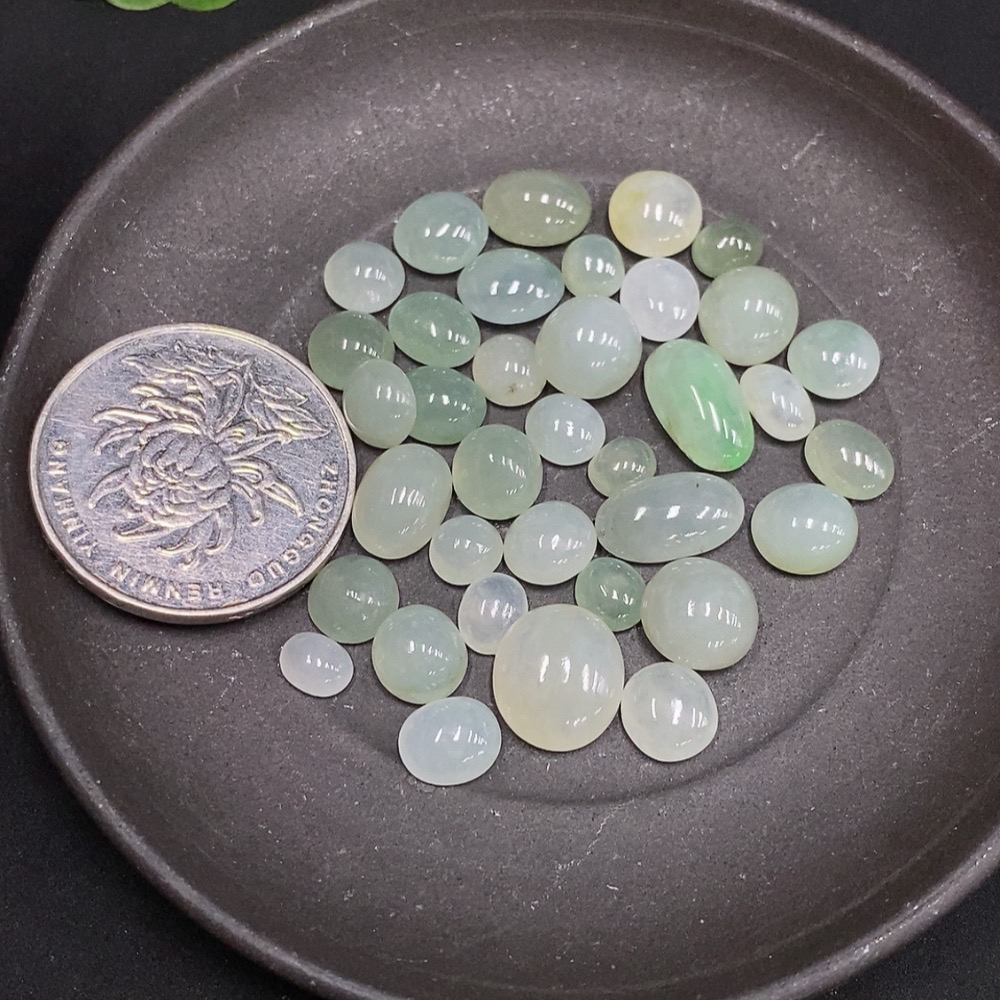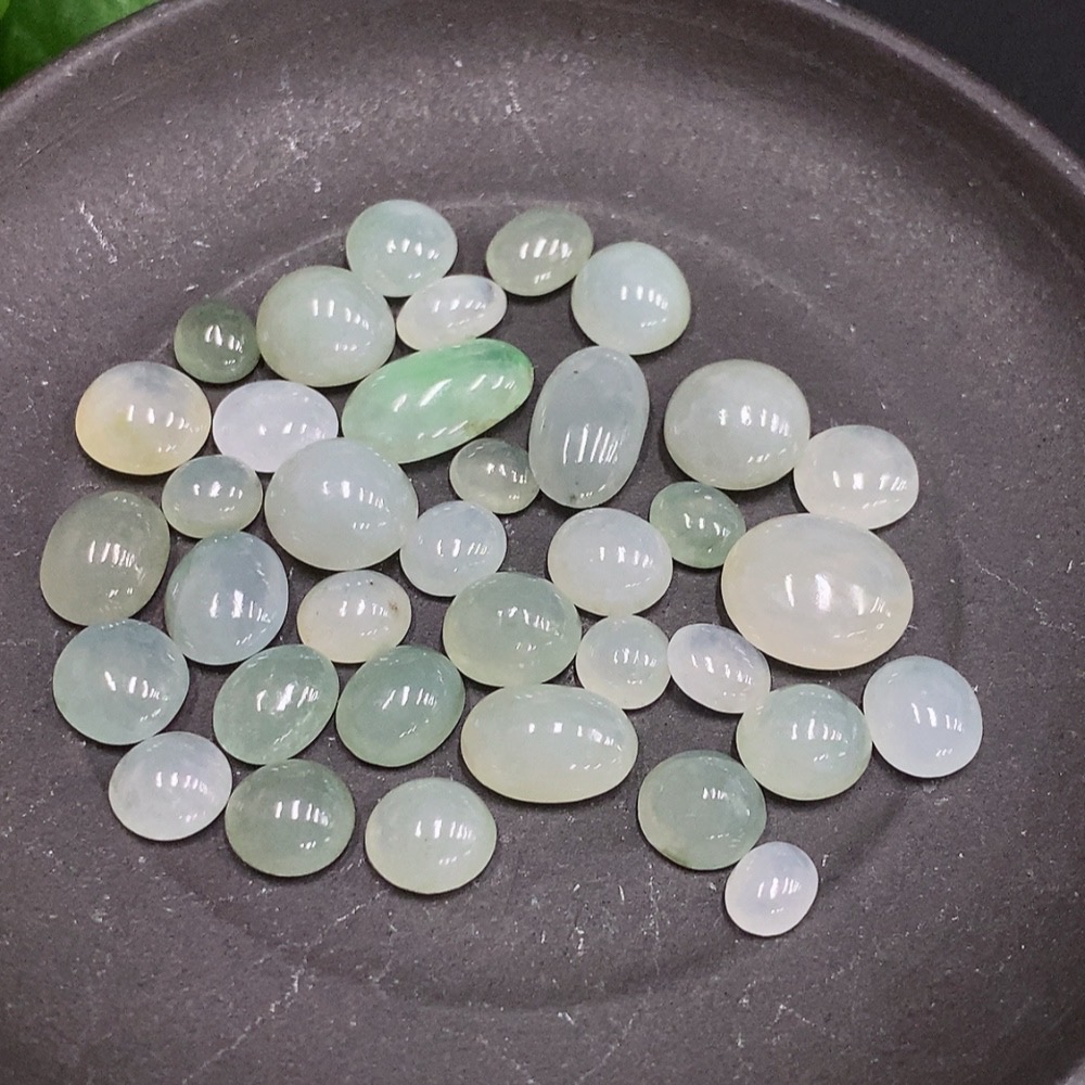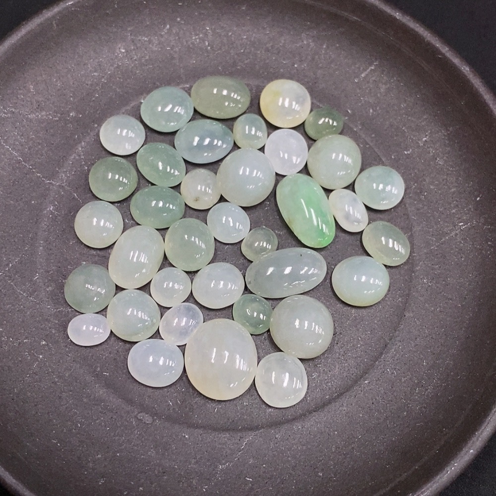 Jadeite Cabochons Sell as a Lot Total Weight Approx. 13.5g (Including Small Bag)