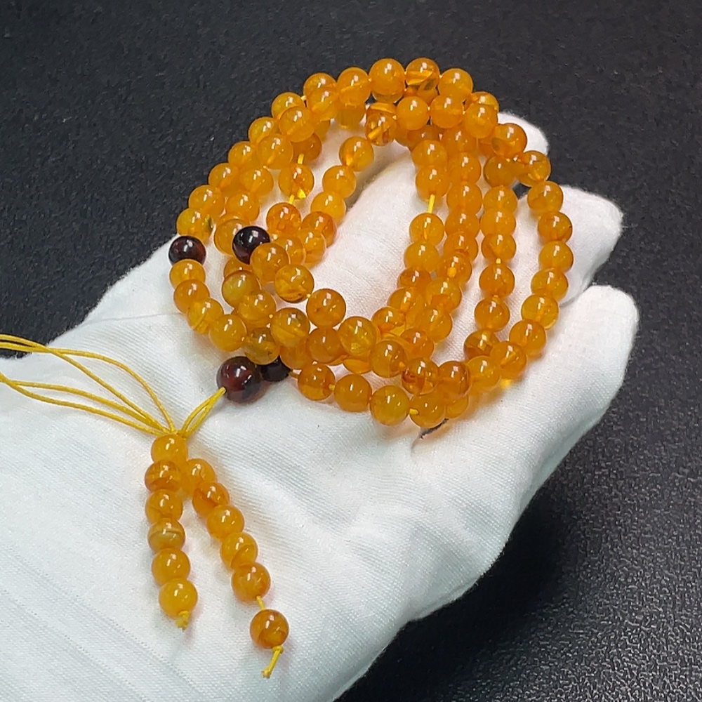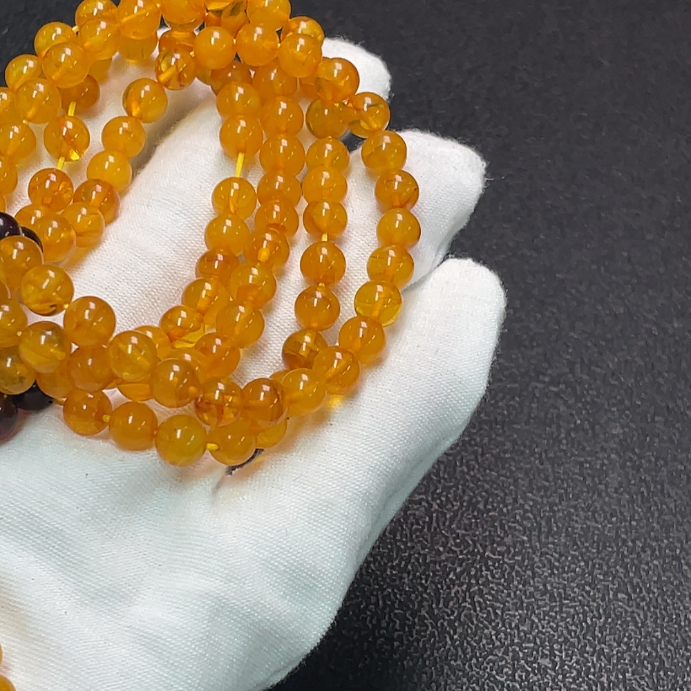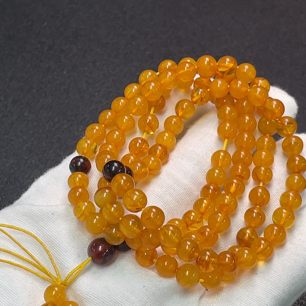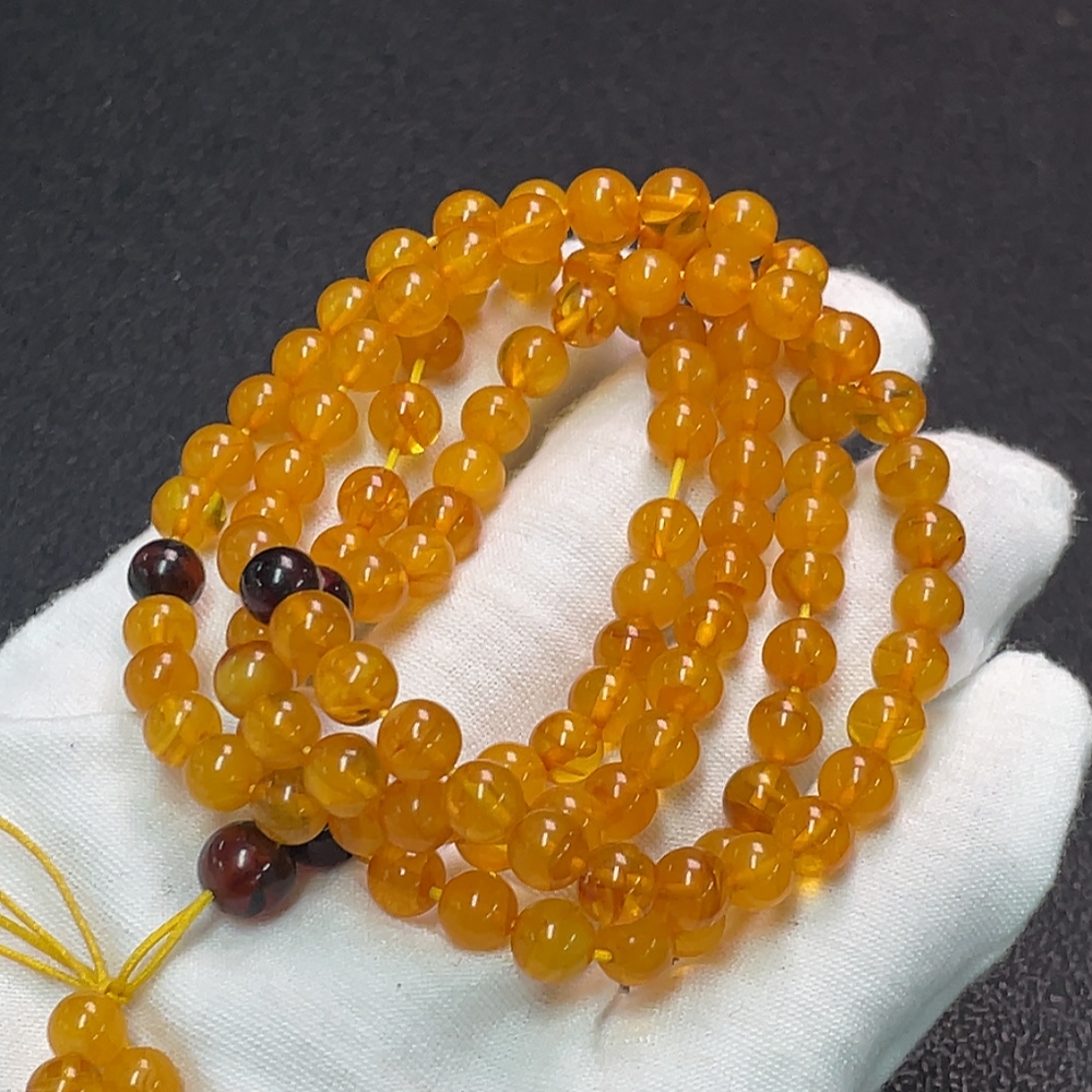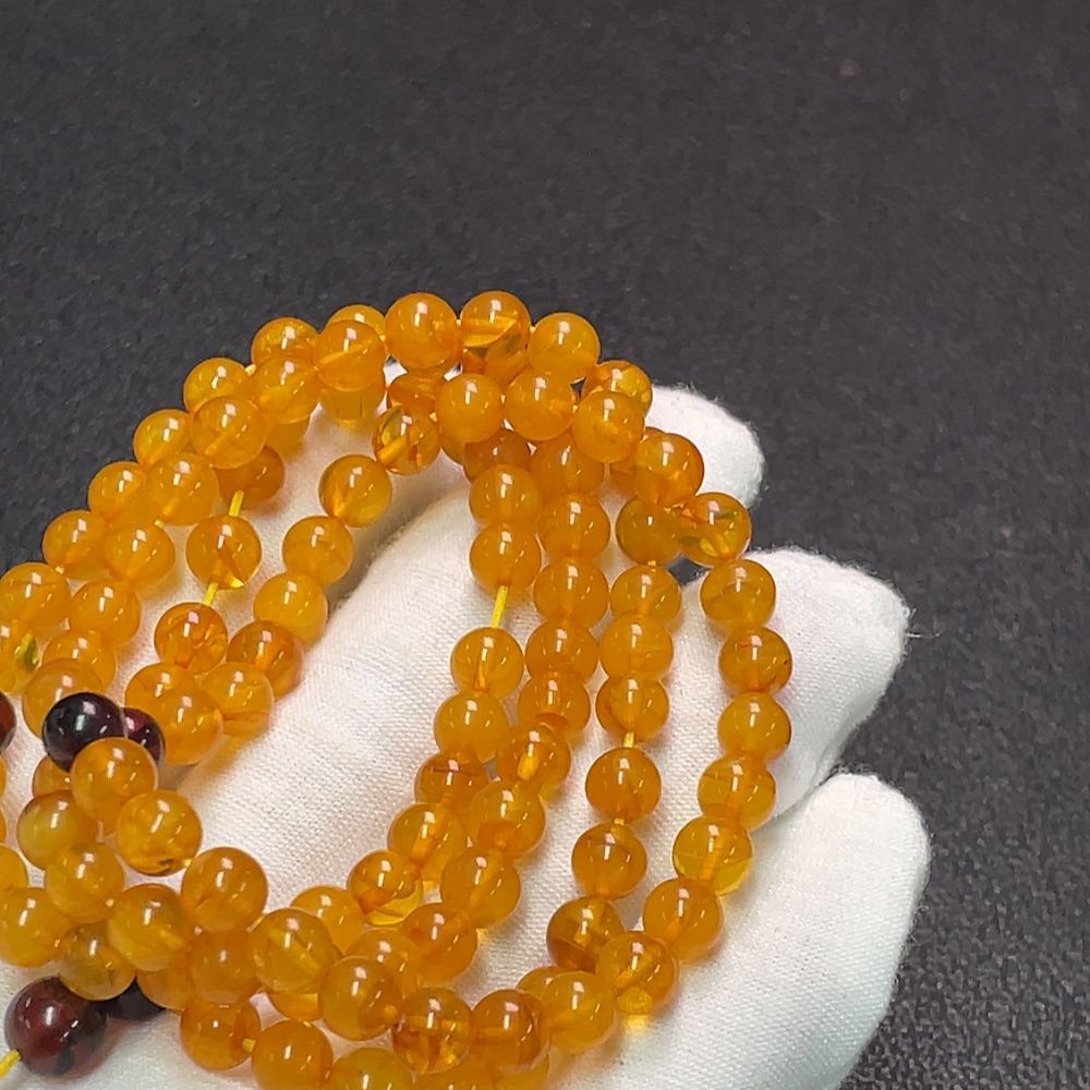 Amber Beeswax Bead Necklace, Total Weight Approx. 16.40g, Size About 6.3mm