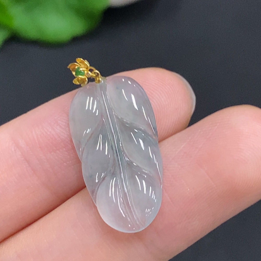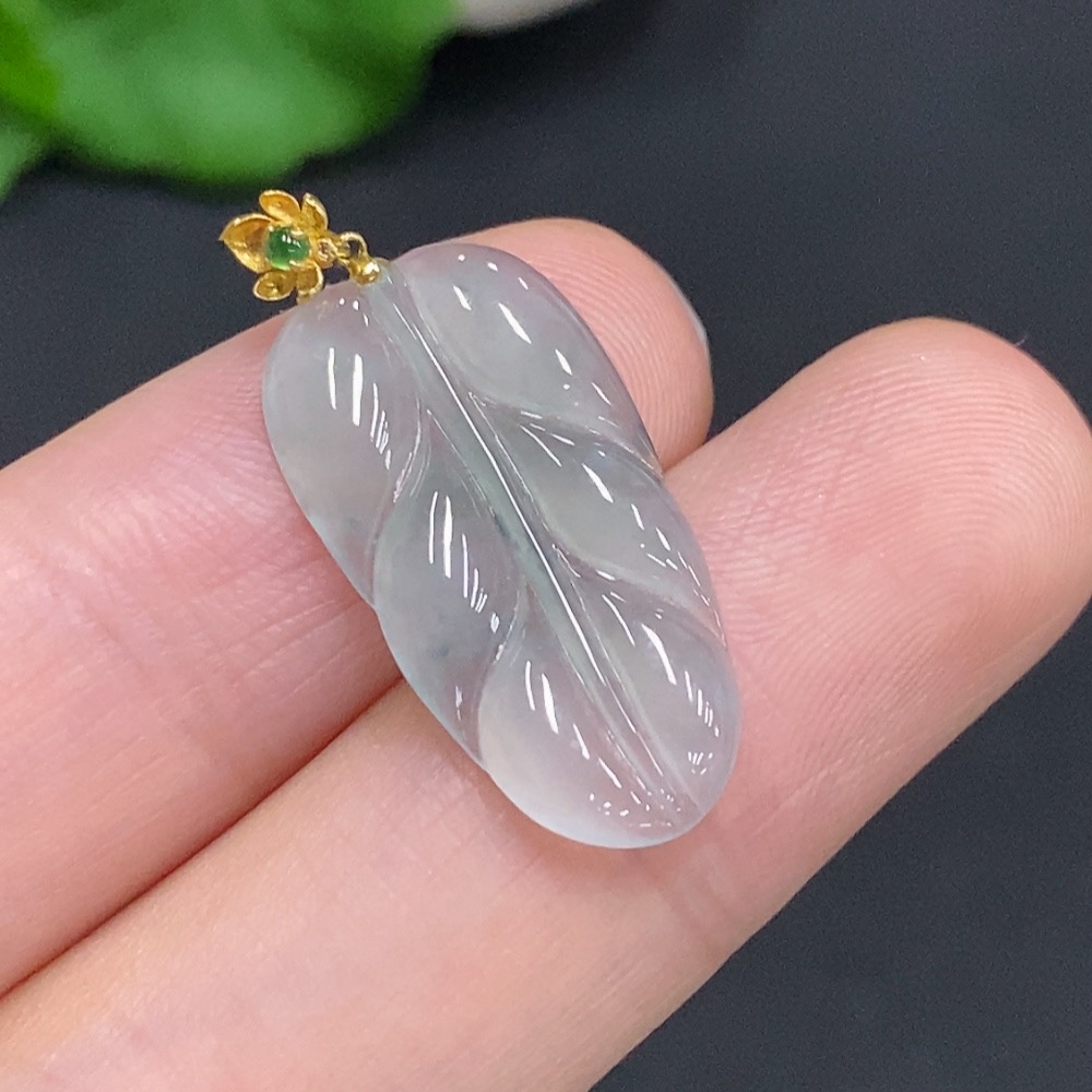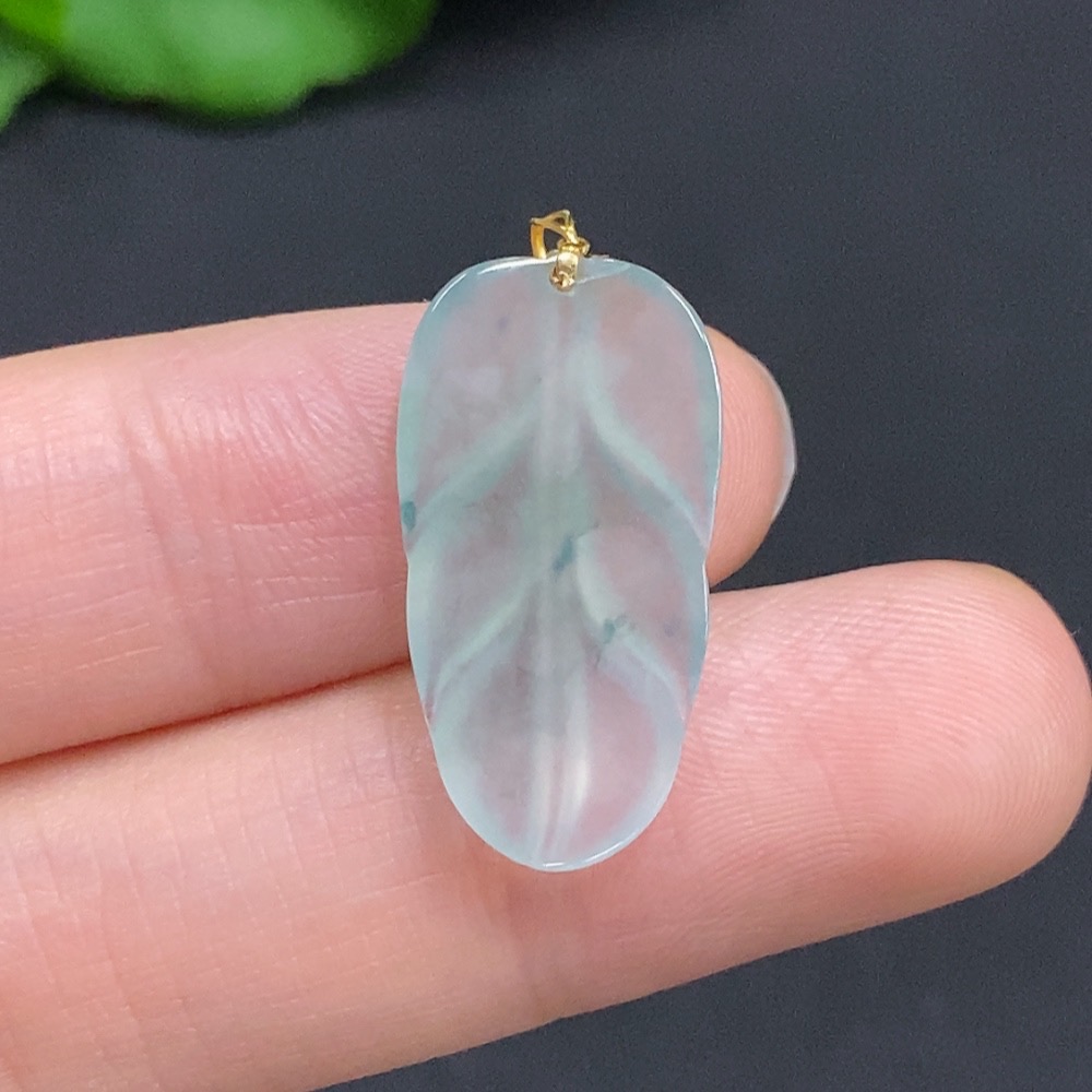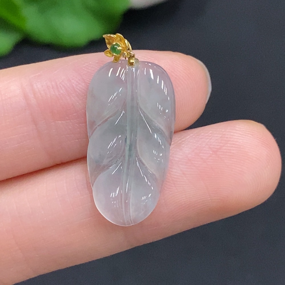 Jadeite Leaf Pendant Unmarked 18K Gold Clasp Total Weight Approximately 1.5g