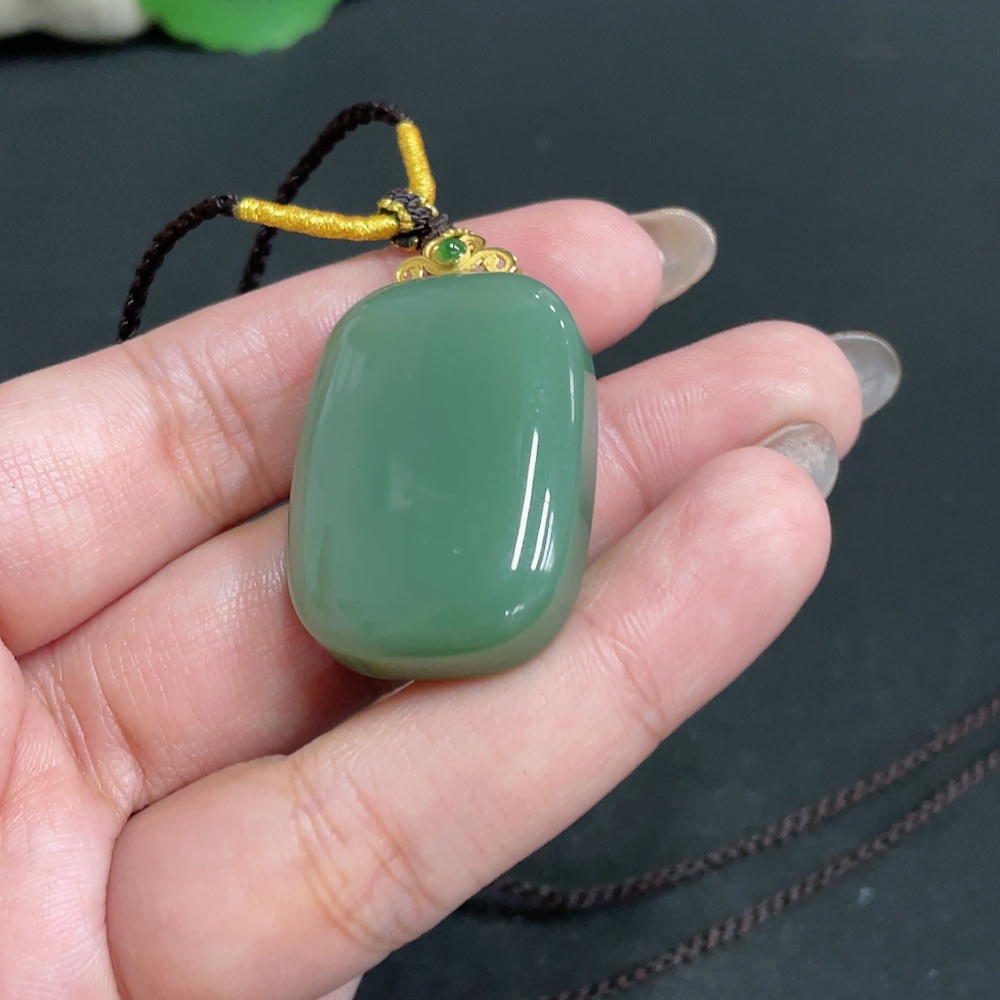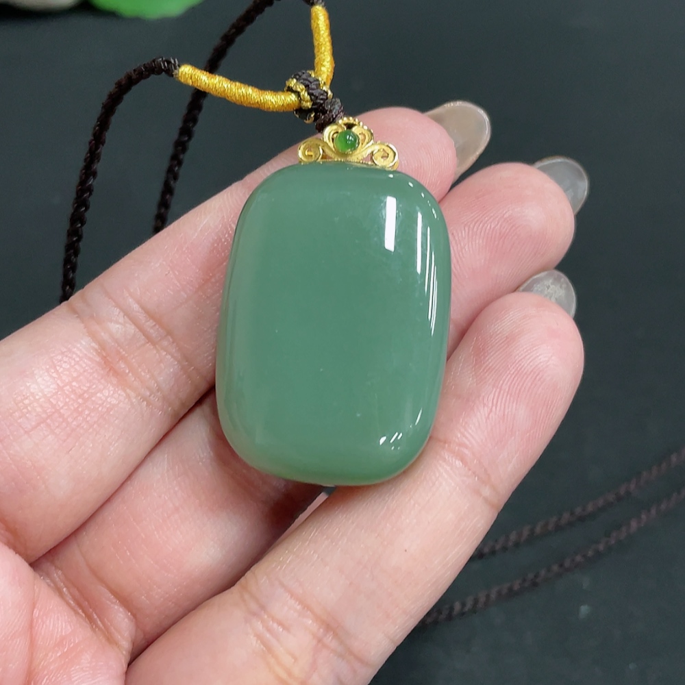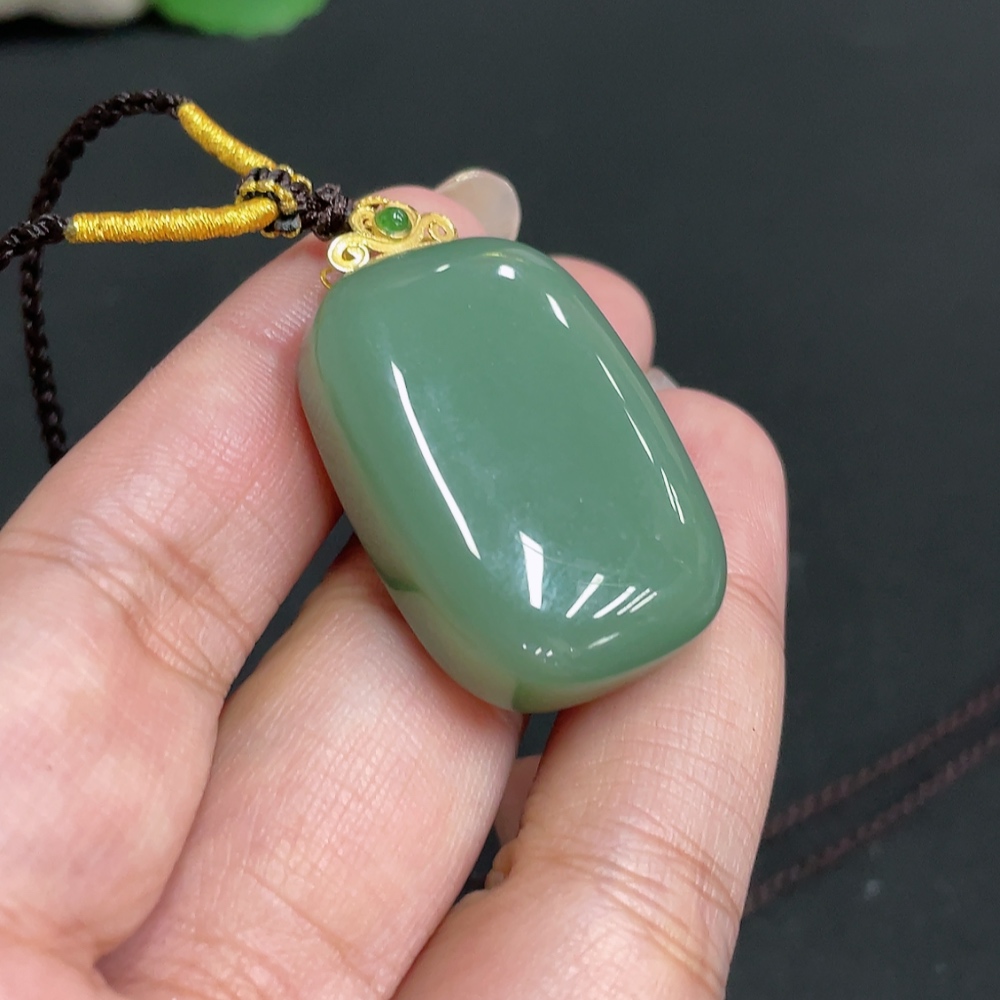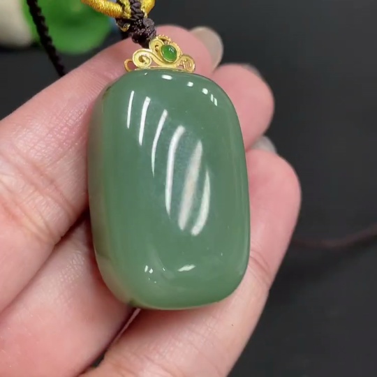 Hetian Jade Pendant, Plain Pendant, 71% Gold Content, Total Weight Approx. (Including Rope) 23g
