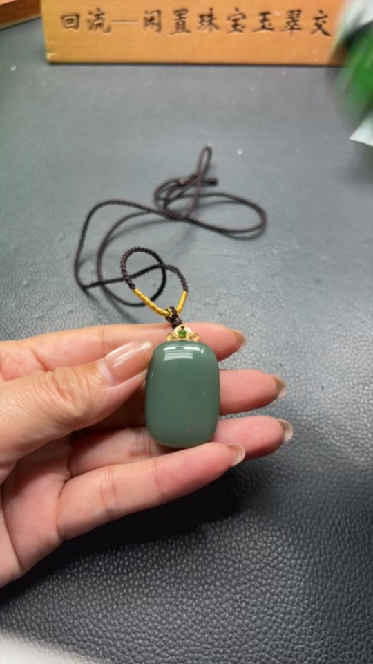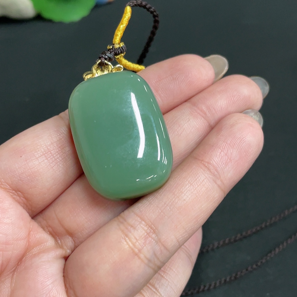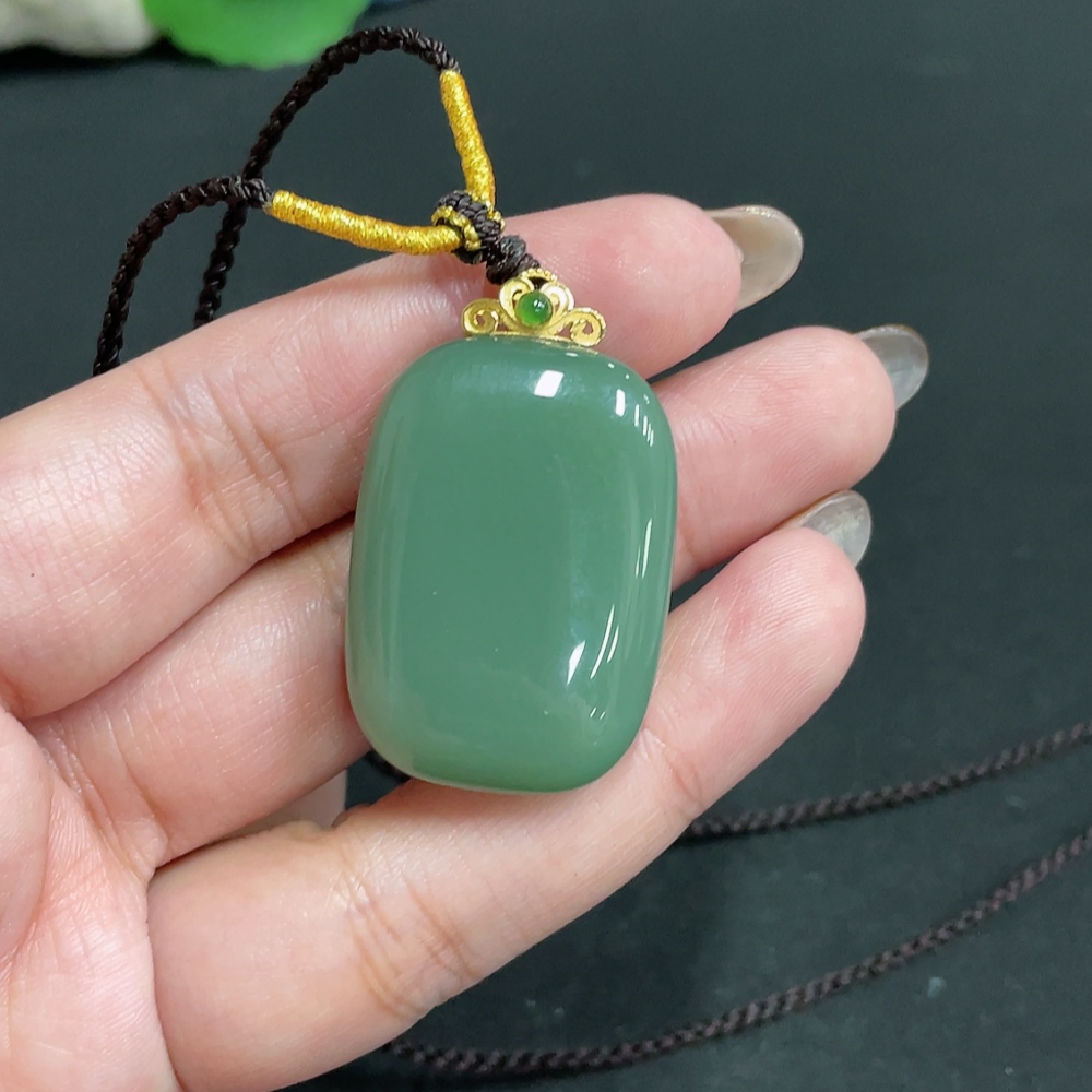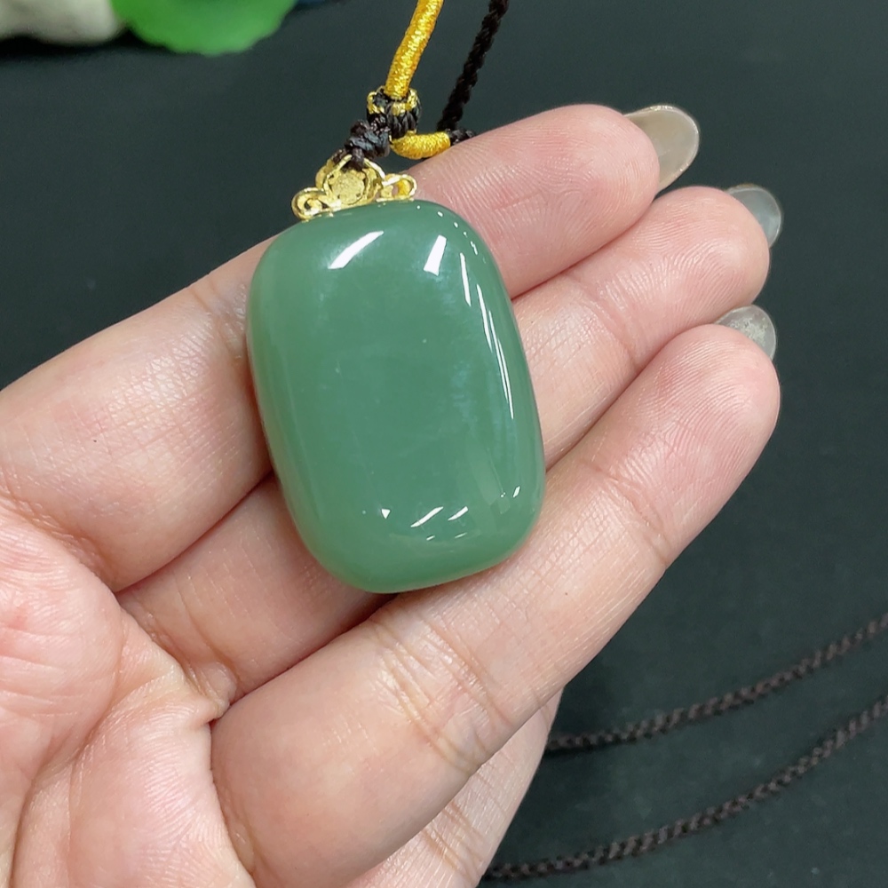 Hetian Jade Pendant, Plain Pendant, 71% Gold Content, Total Weight Approx. (Including Rope) 23g