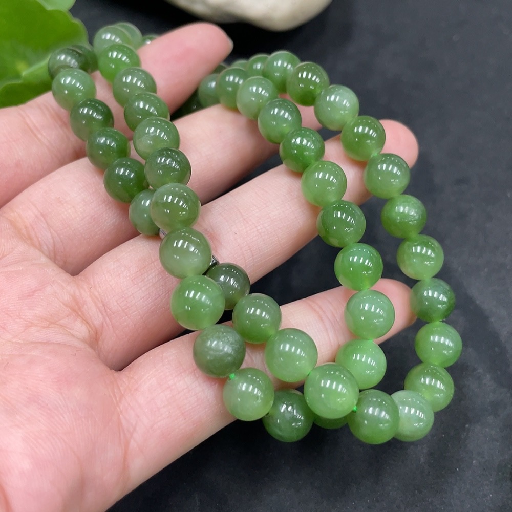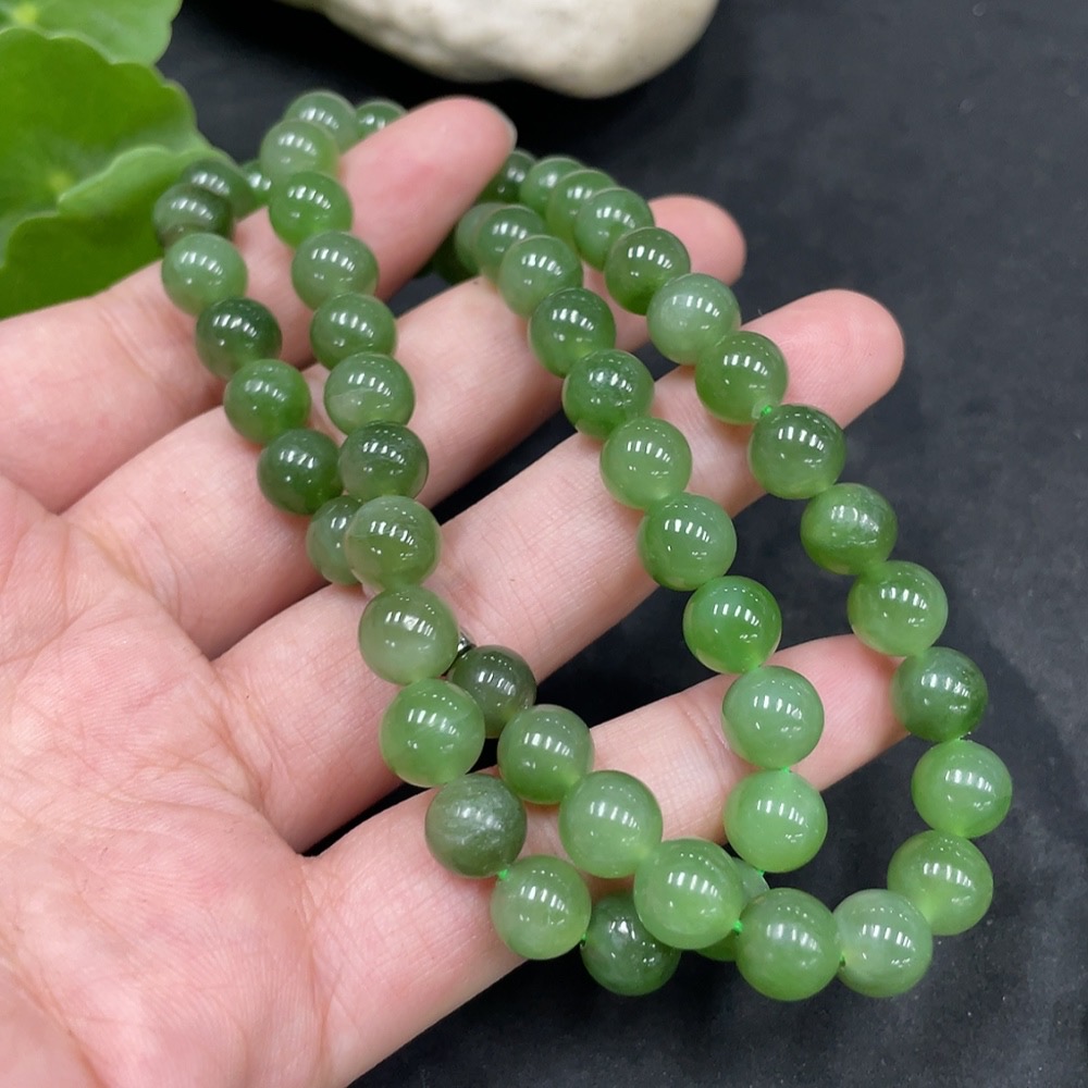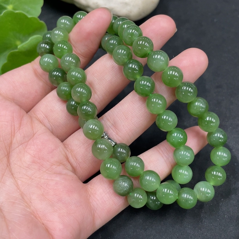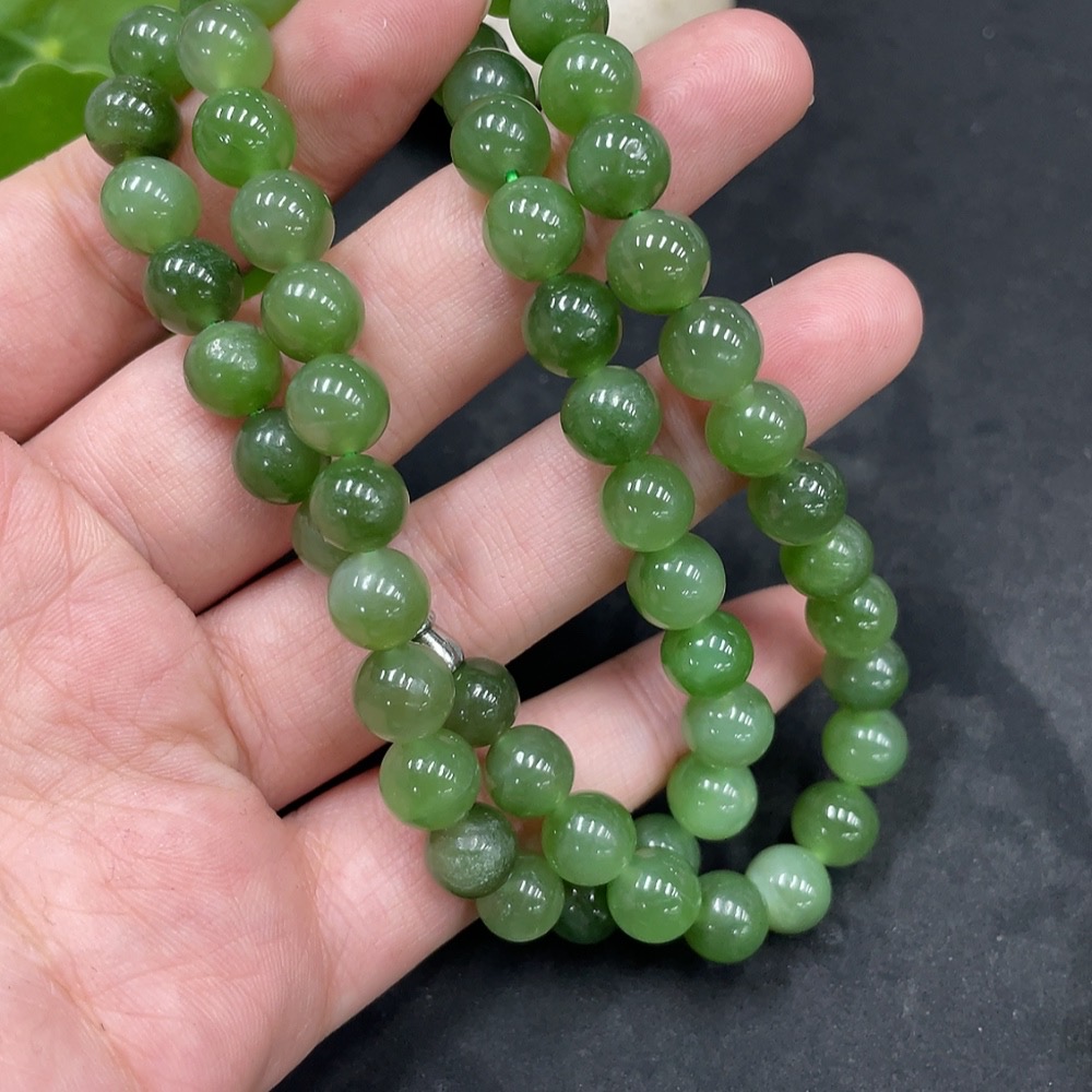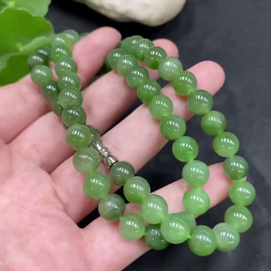 Hetian Jade Jasper Bead Necklace Approx. 8mm Non-Gold Total Weight Approx. 46g