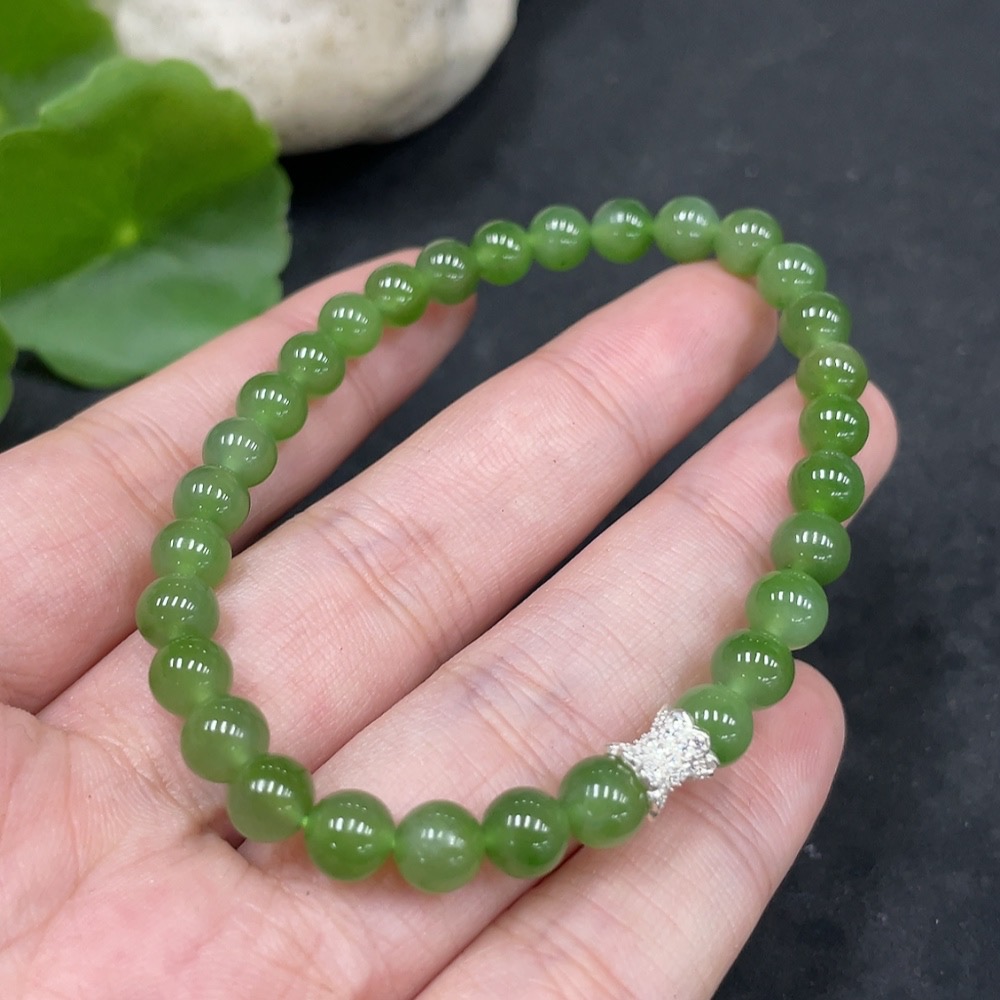 Hetian Jade Jasper Bracelet, Approx. 5.8mm, Non-Gold, Total Weight Approx. 10.8g