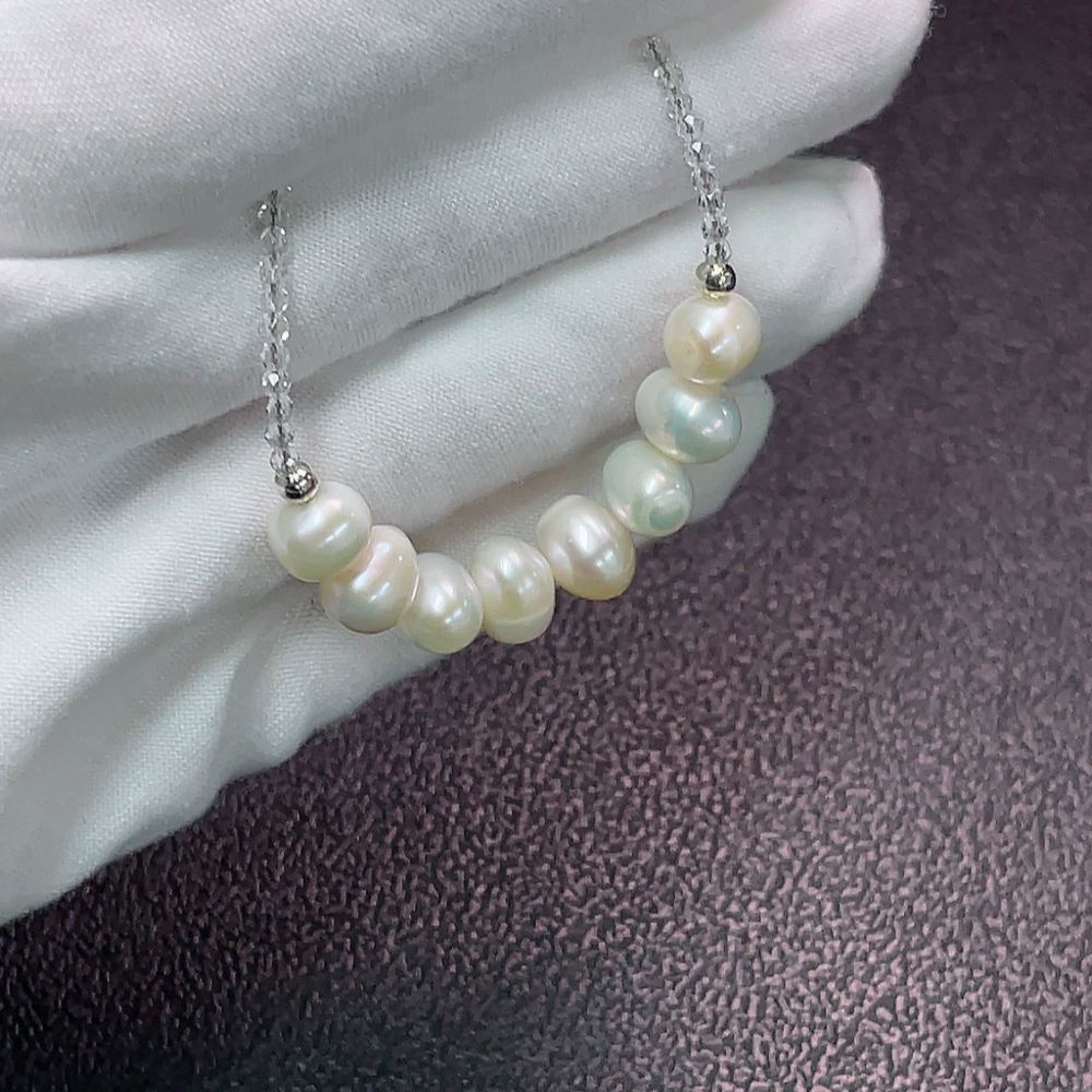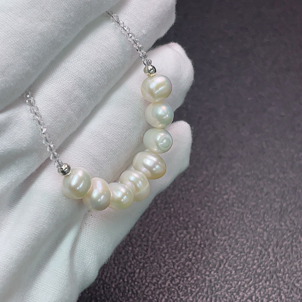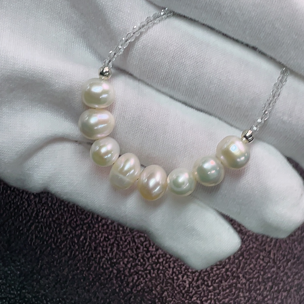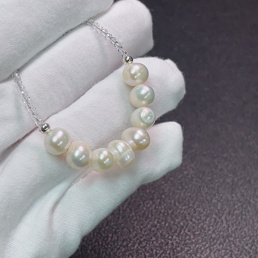 Pearl bead necklace with non-natural/non-gold accent stones, total weight approx. 7.5g, bead size approx. 8.6mm