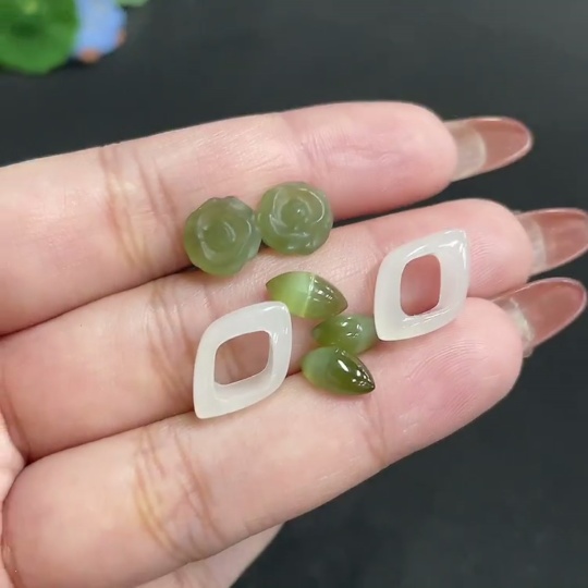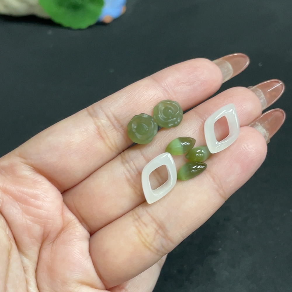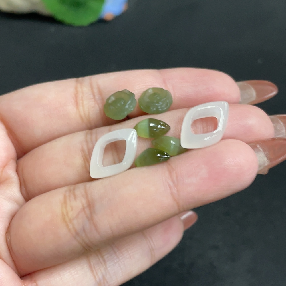 Hetian Jade Pendant, Inlaid Piece, Inlaid Earrings, Total Product Weight Approximately 4.2g