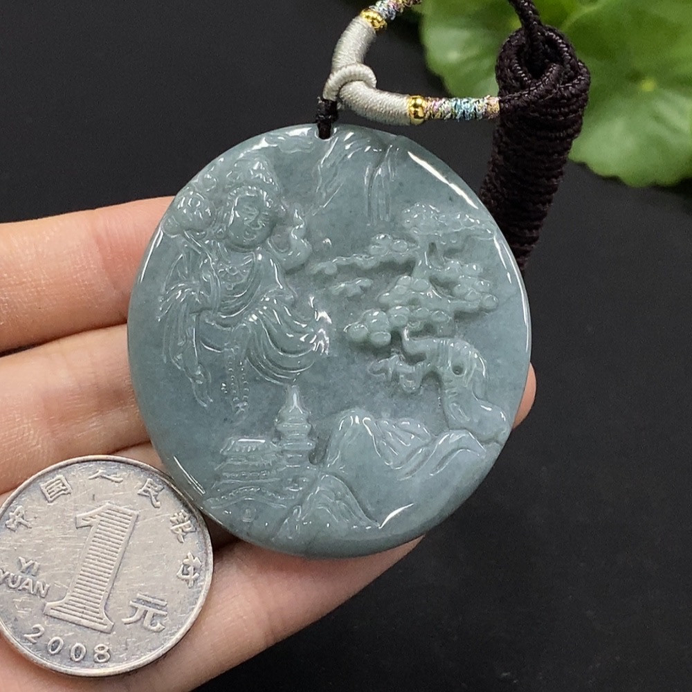 Jadeite Guanyin Pendant, Total Weight Approx. 24.64g