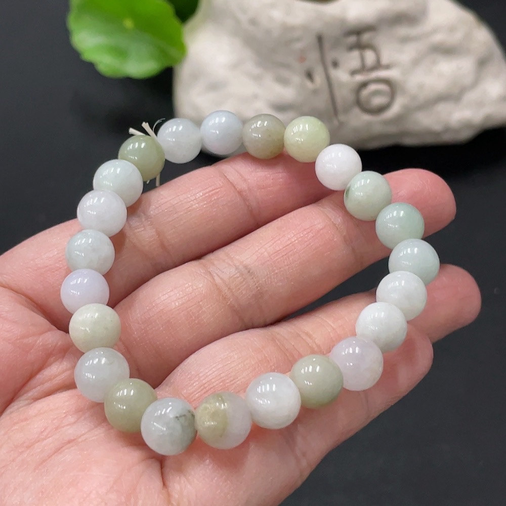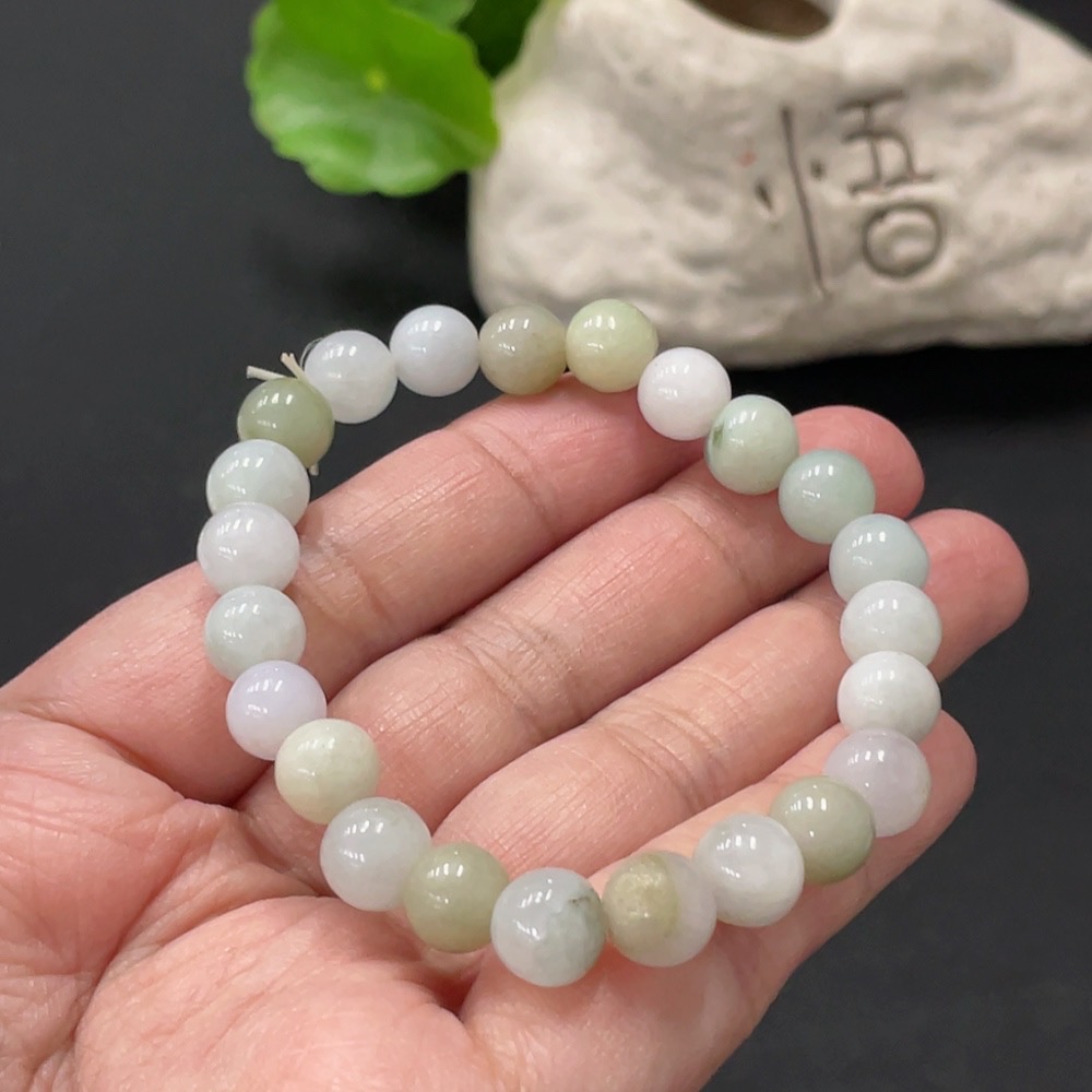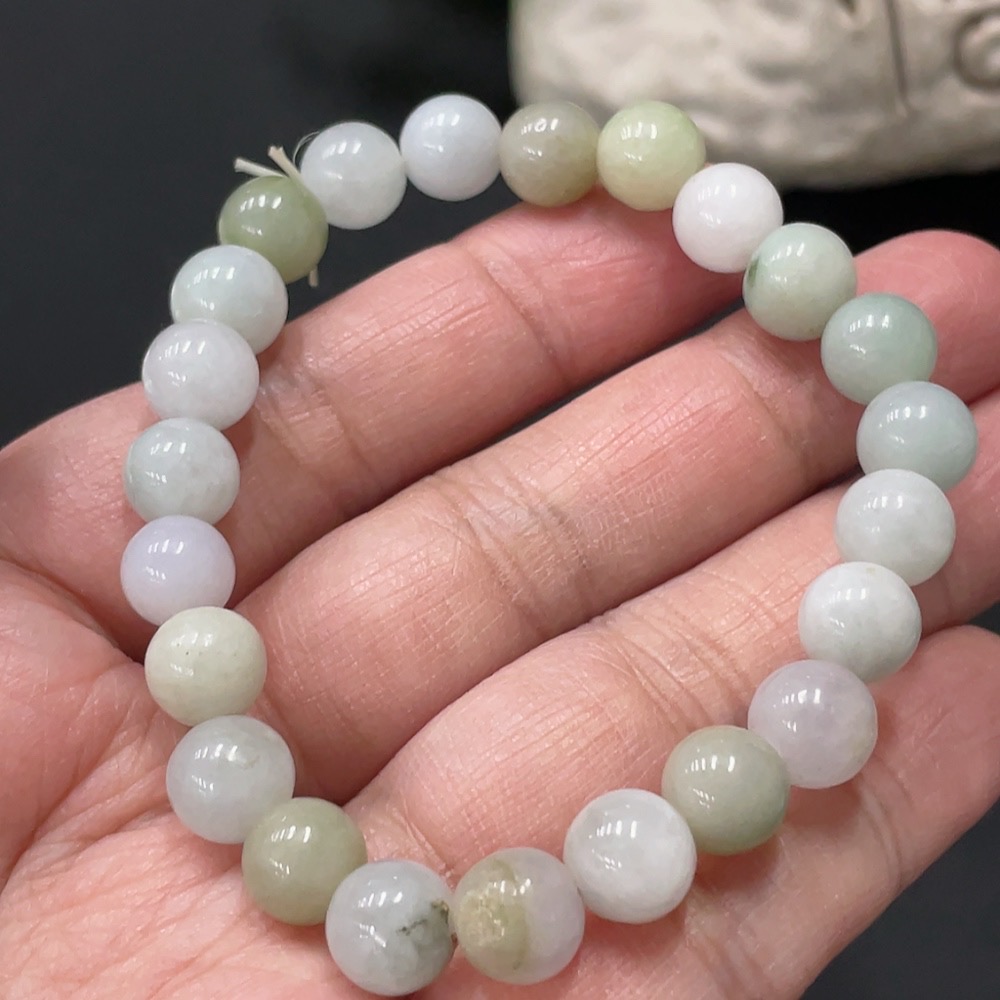 Jadeite Bracelet Approx. 8.2mm Beads Total Weight 19.93g Containing Other Mineral Components