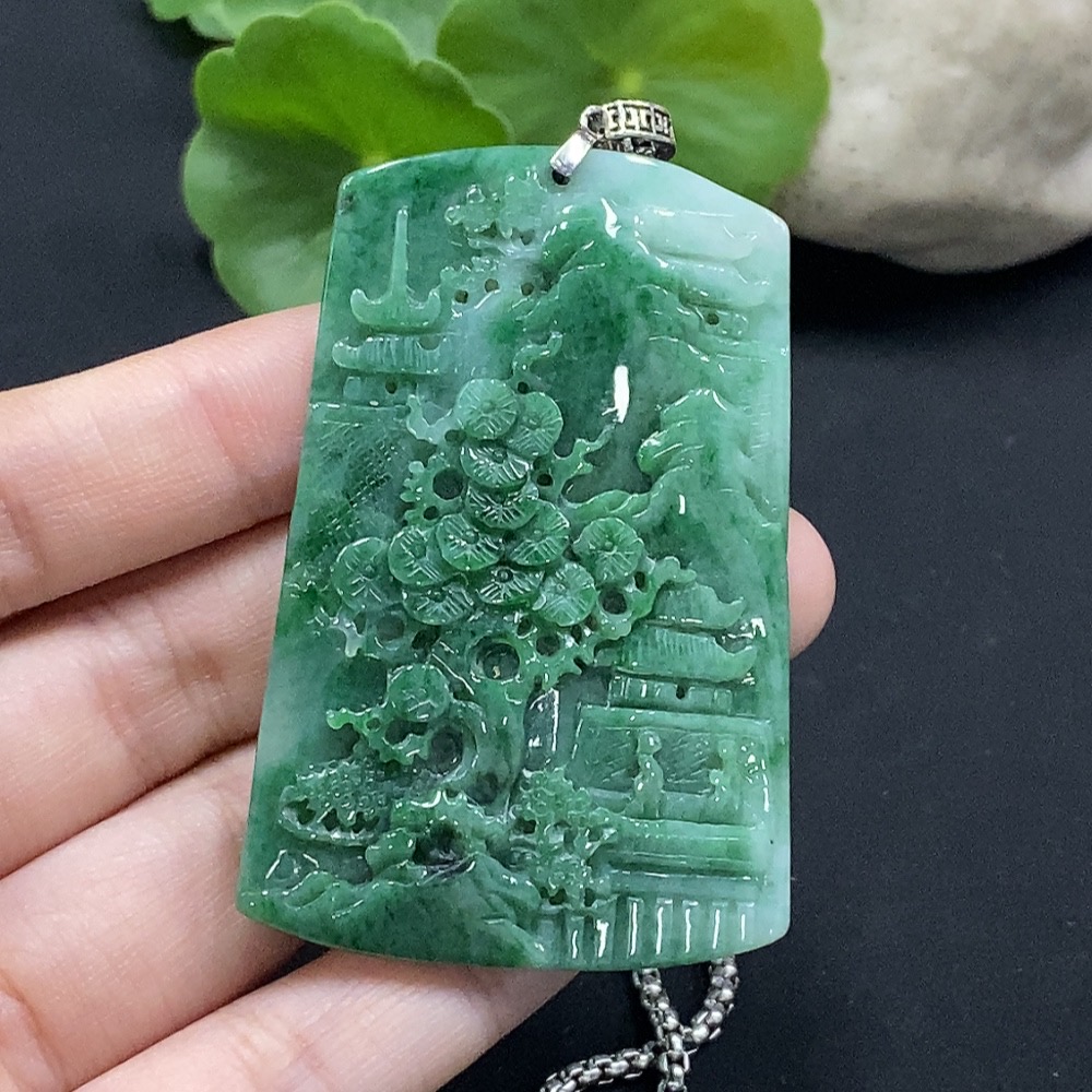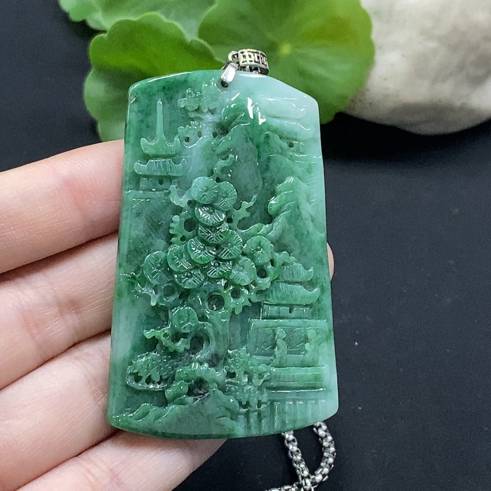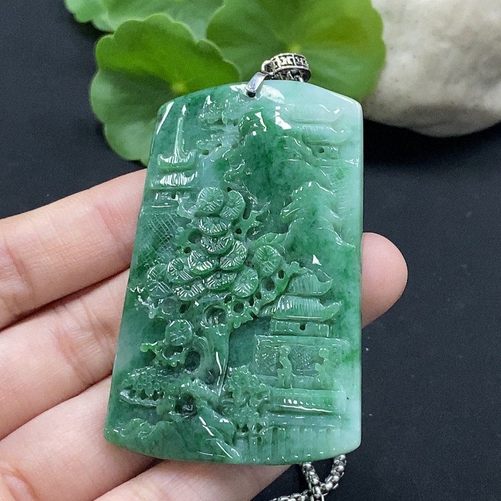 Jadeite Landscape Pendant Non-Gold Inlaid Containing Other Mineral Components Total Weight Approximately 40g