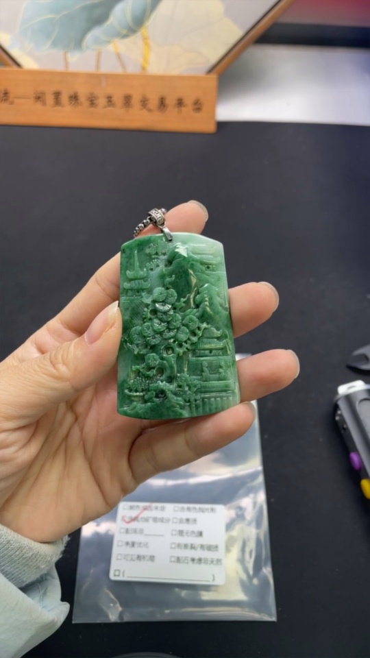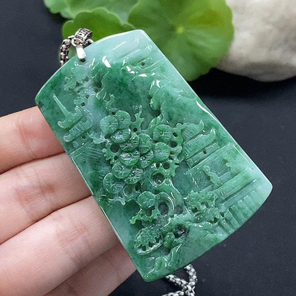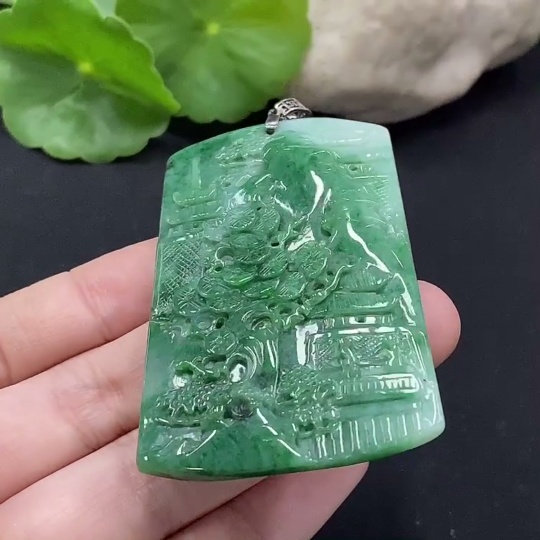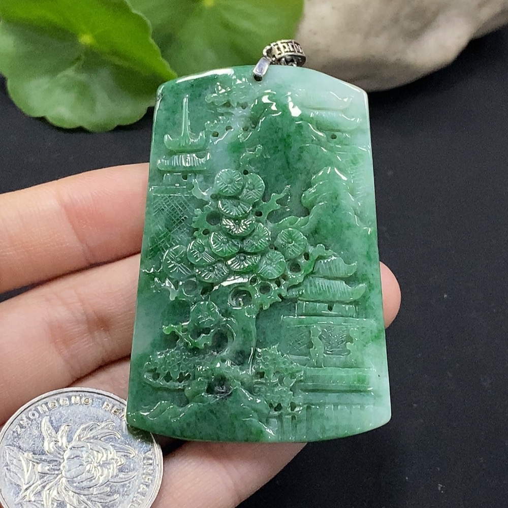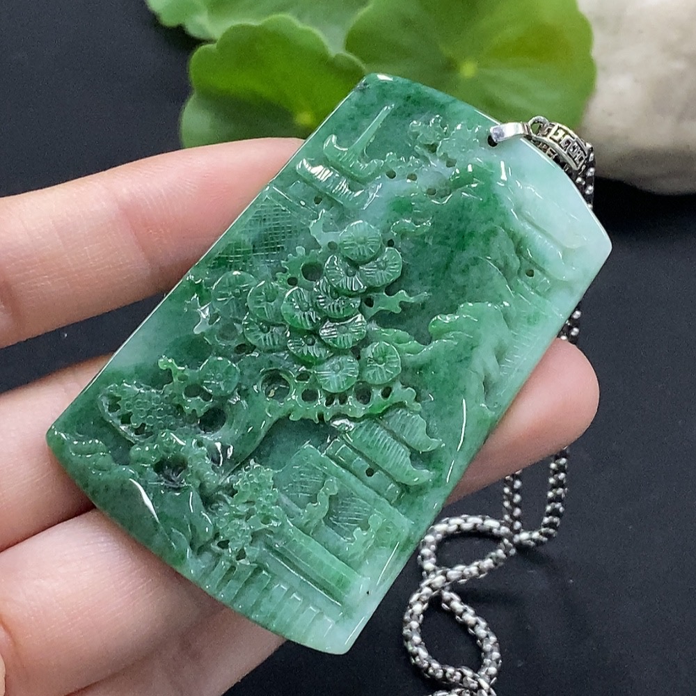 Jadeite Landscape Pendant Non-Gold Inlaid Containing Other Mineral Components Total Weight Approximately 40g
