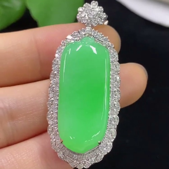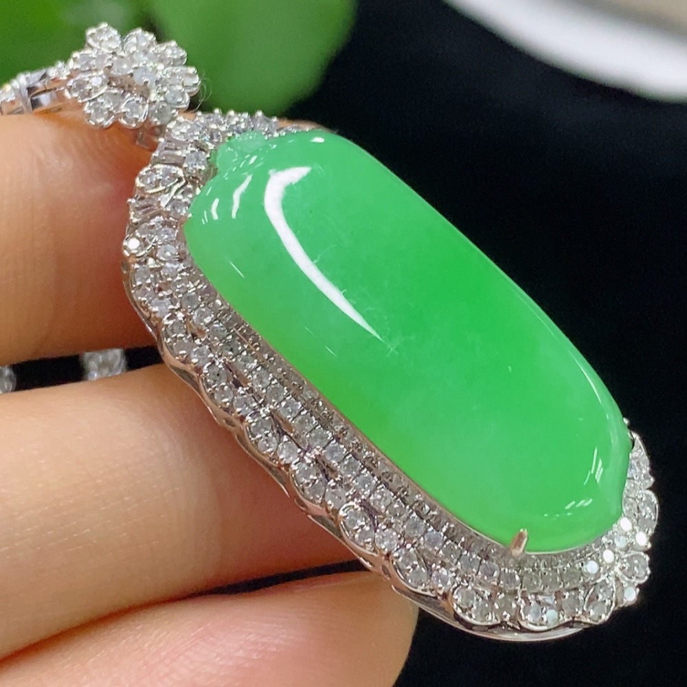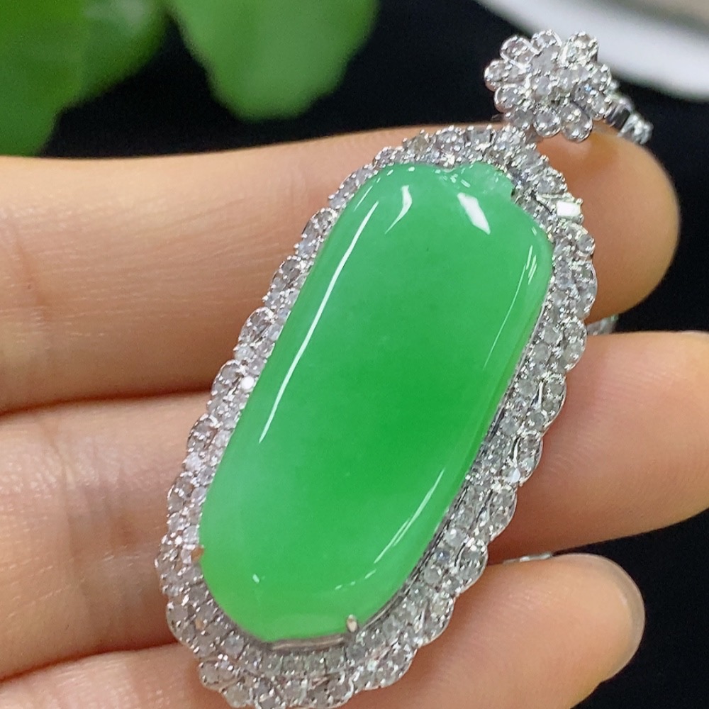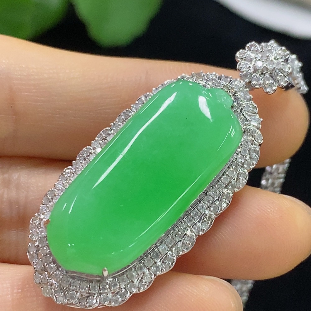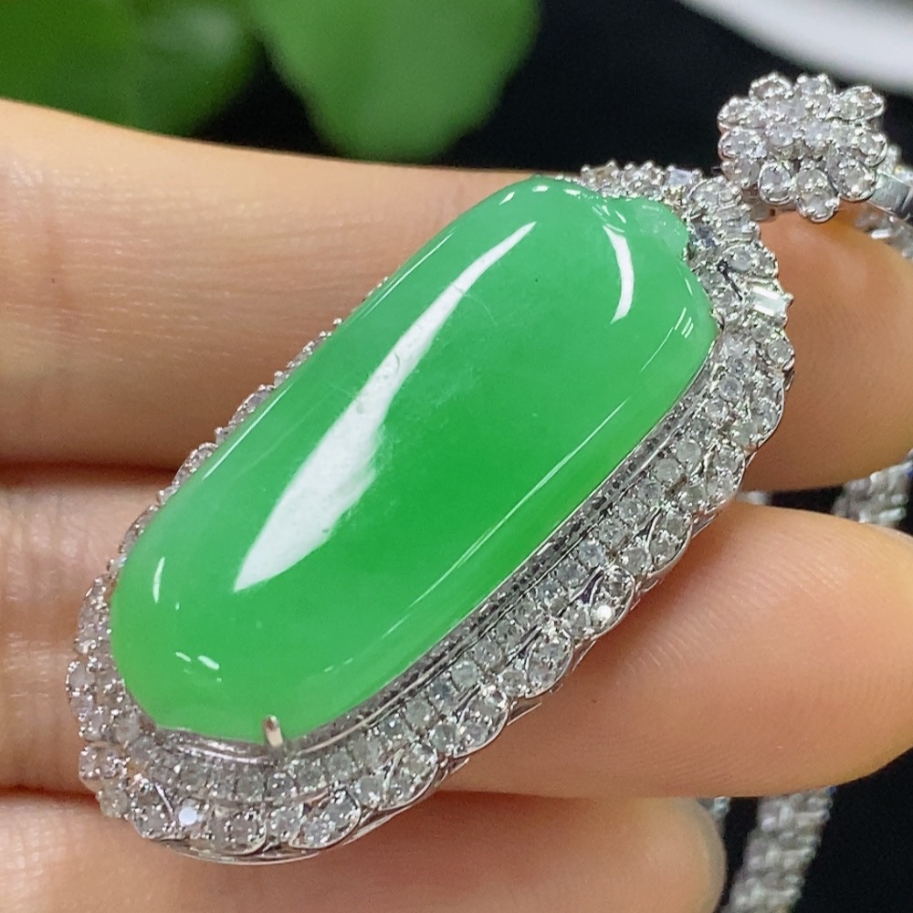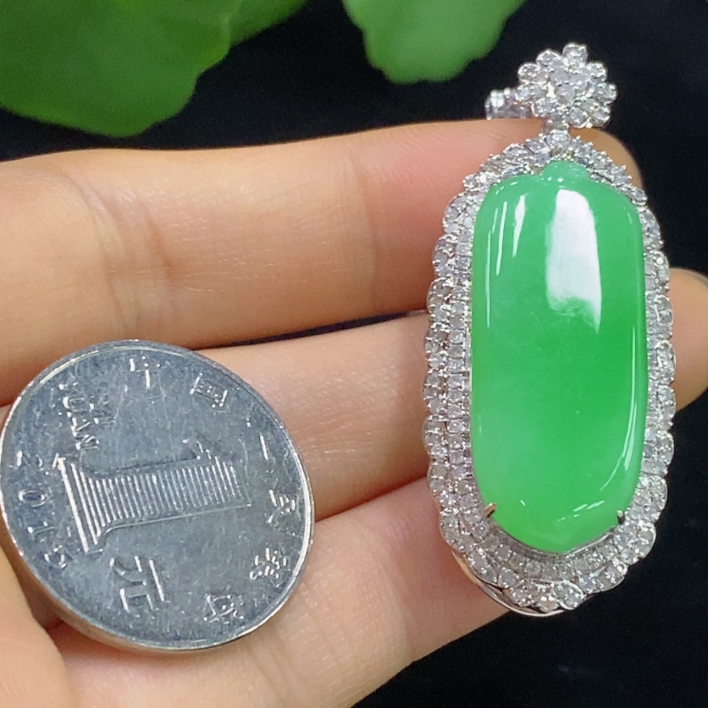 Jadeite Blessing Melon Pendant with 18K Gold, Total Weight Approx. 22.4g (Diamond Accents) (Including Chain)