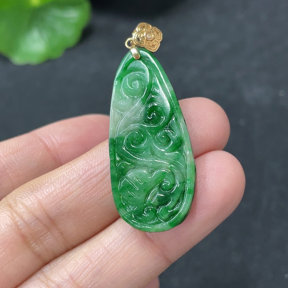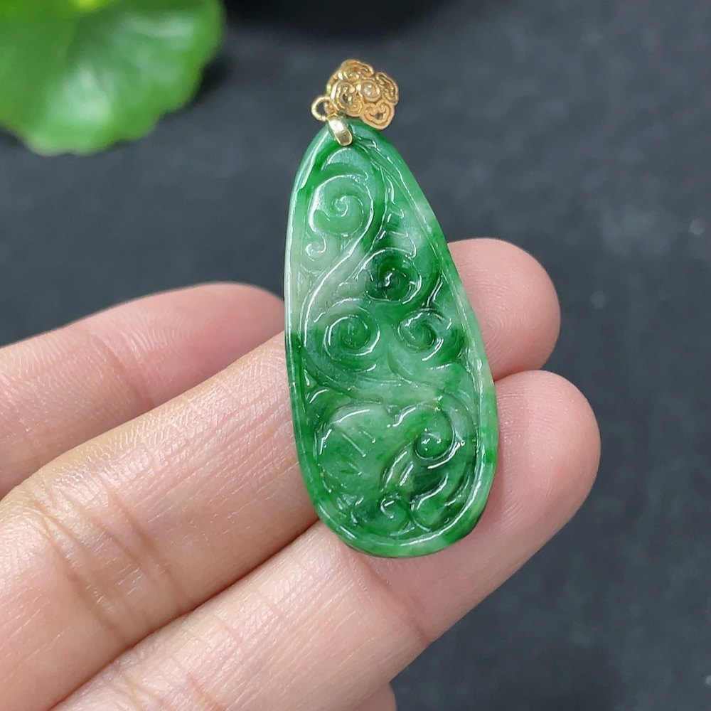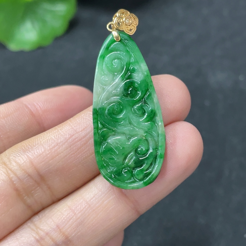 Jadeite antique pendant with 18K gold buckle, total weight approximately 3.9g (non-diamond)