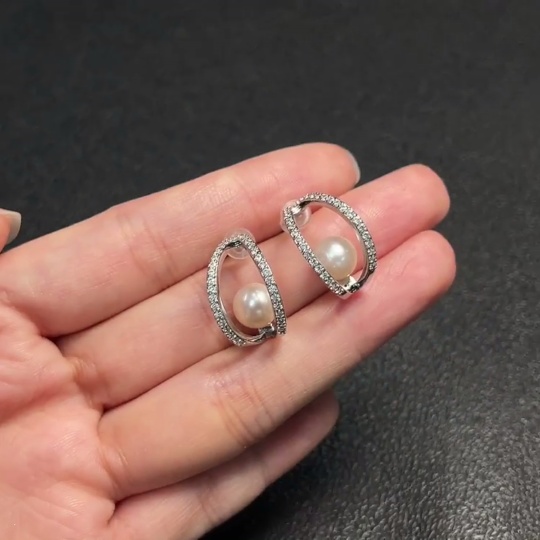 Seawater Pearl Earrings Non-Gold Total Weight Approx. 4.36g Size Approx. 7.3mm