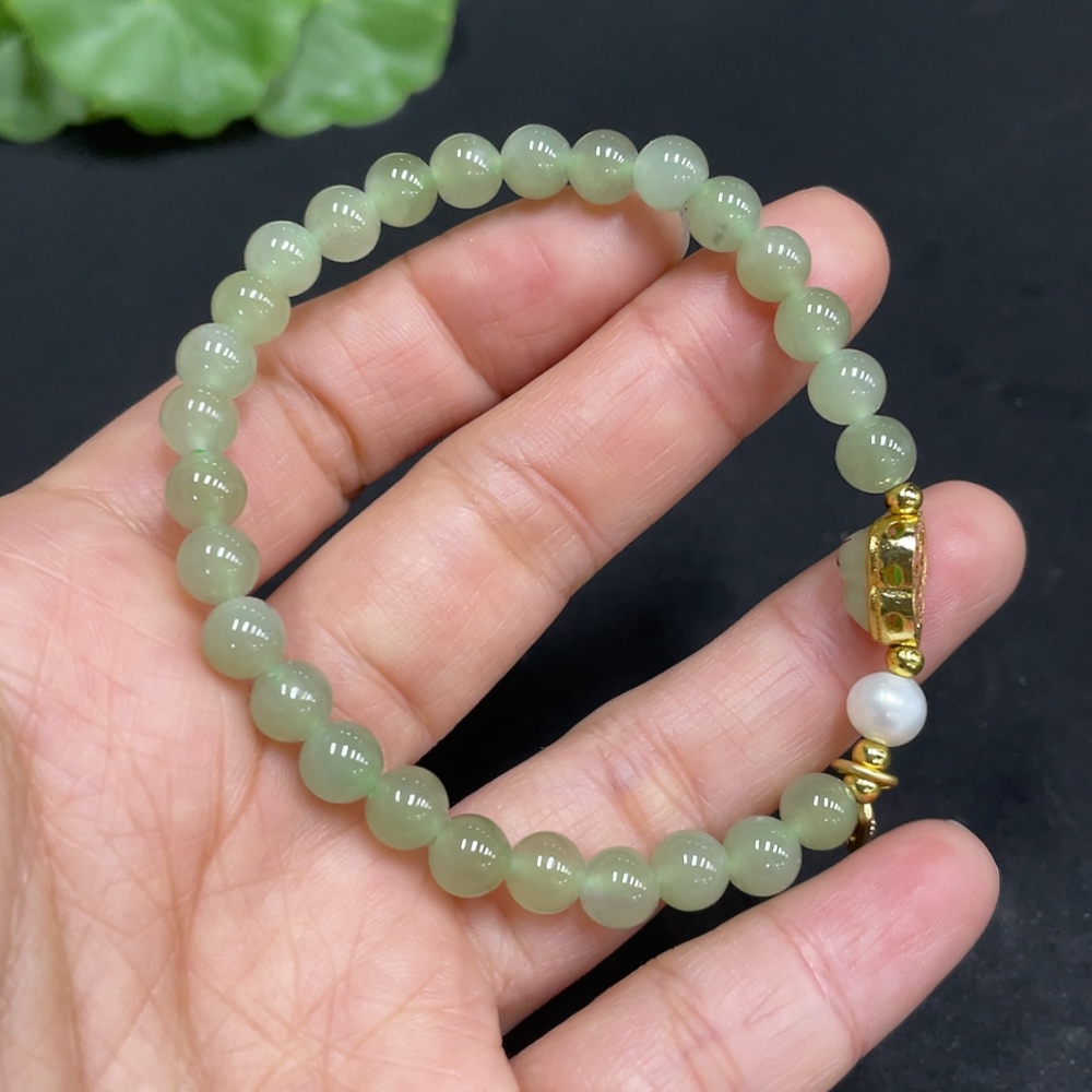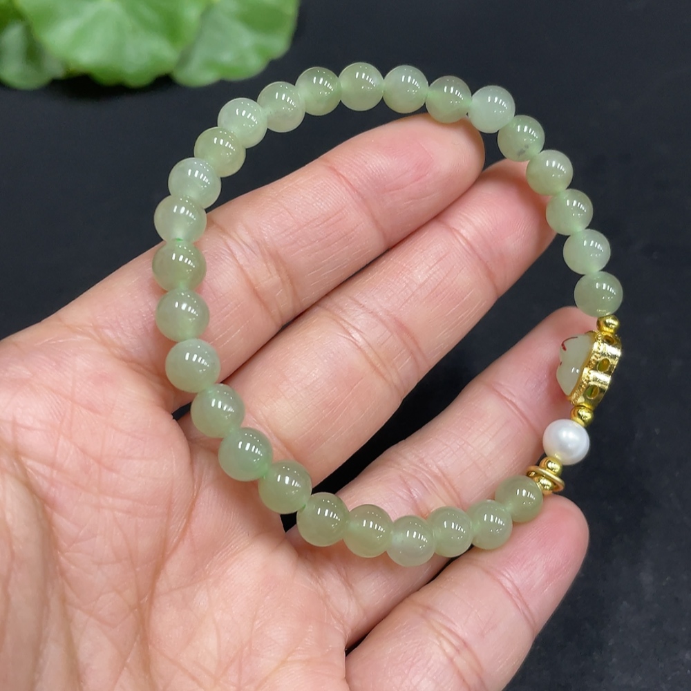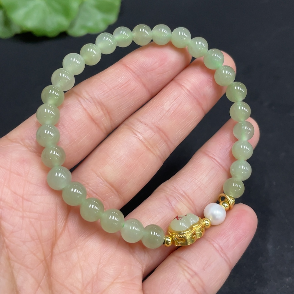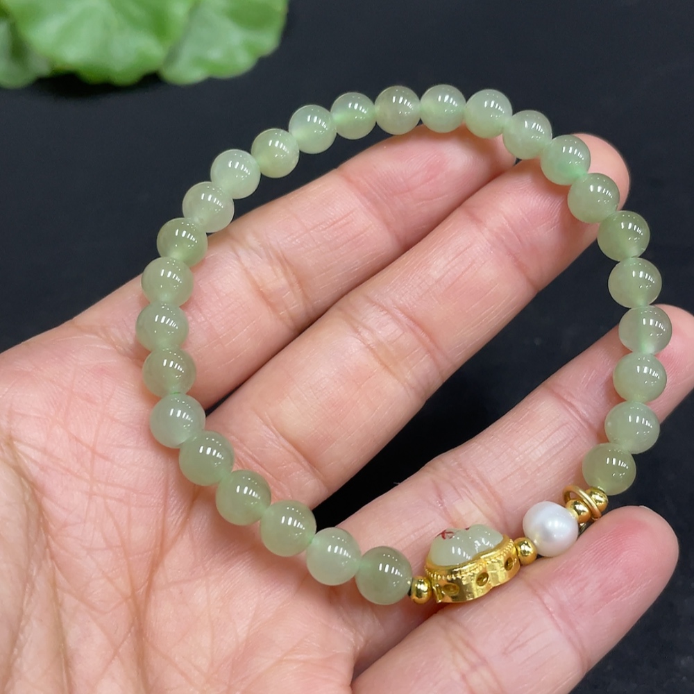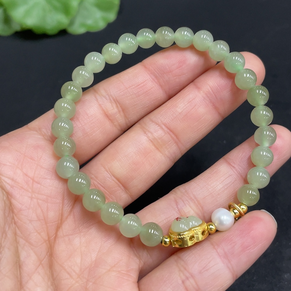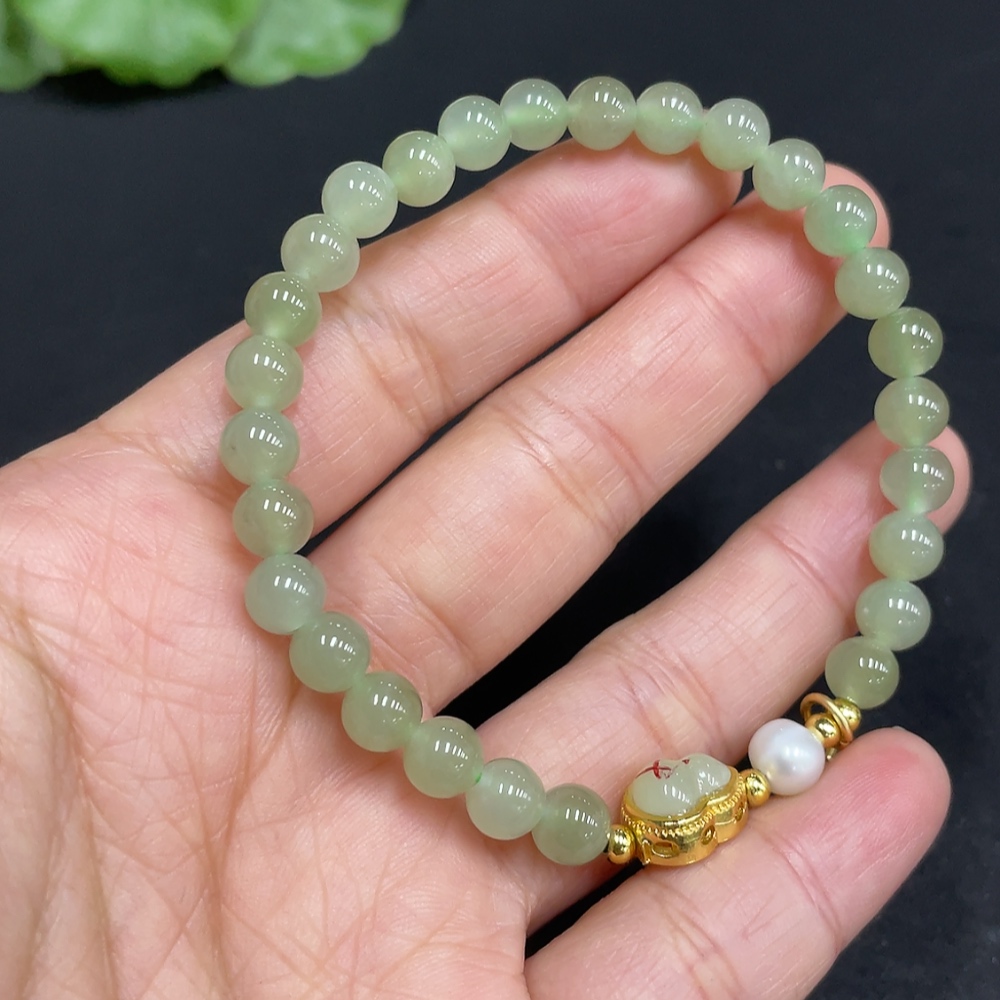 Hetian Jade Bracelet, approx. 5.7mm beads, non-gold inlaid, total weight approx. 10.2g, accessories not Hetian Jade