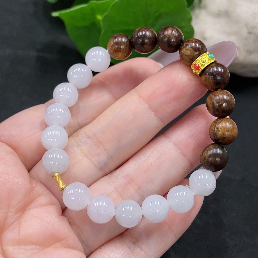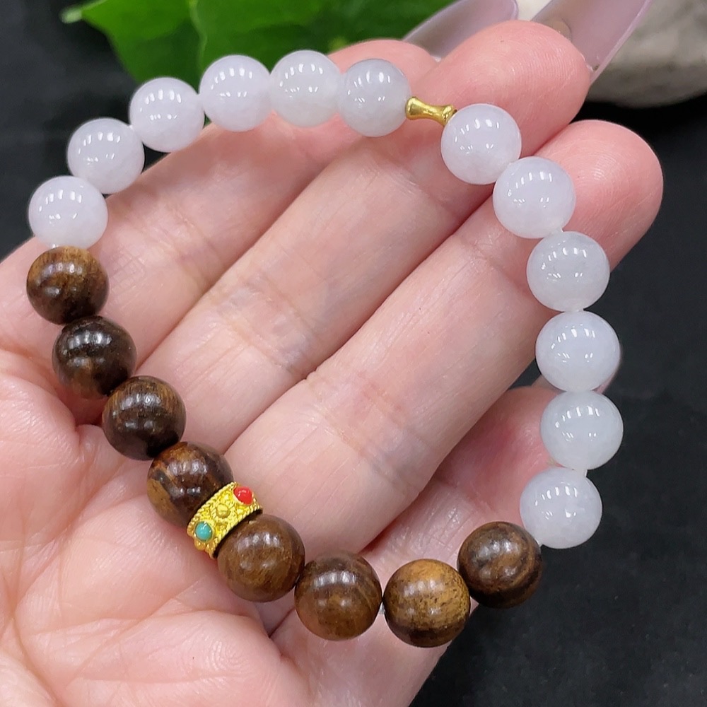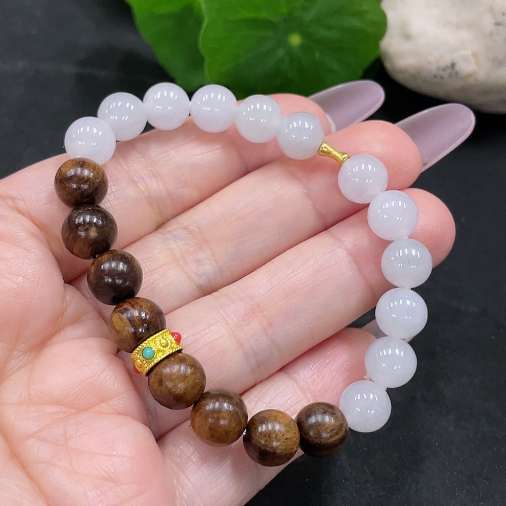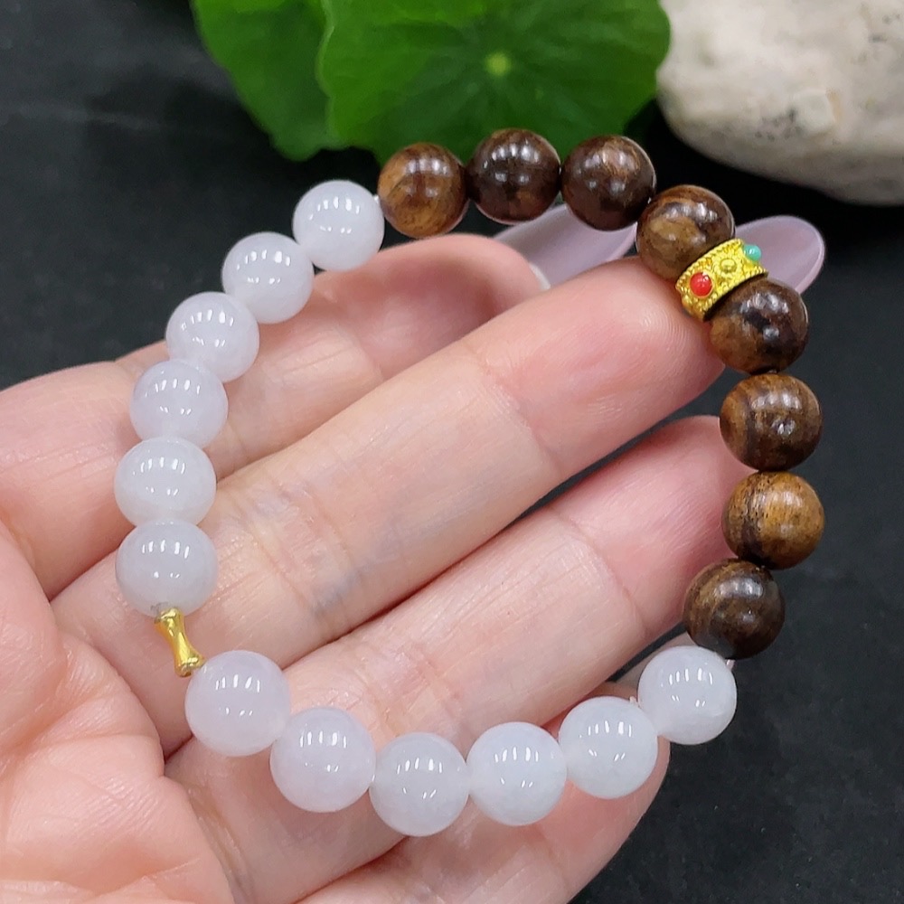 Jadeite Bracelet, approx. 7.9mm, elongated without印记, tested gold content 18K gold,其余非金, total weight approx. 12.86g